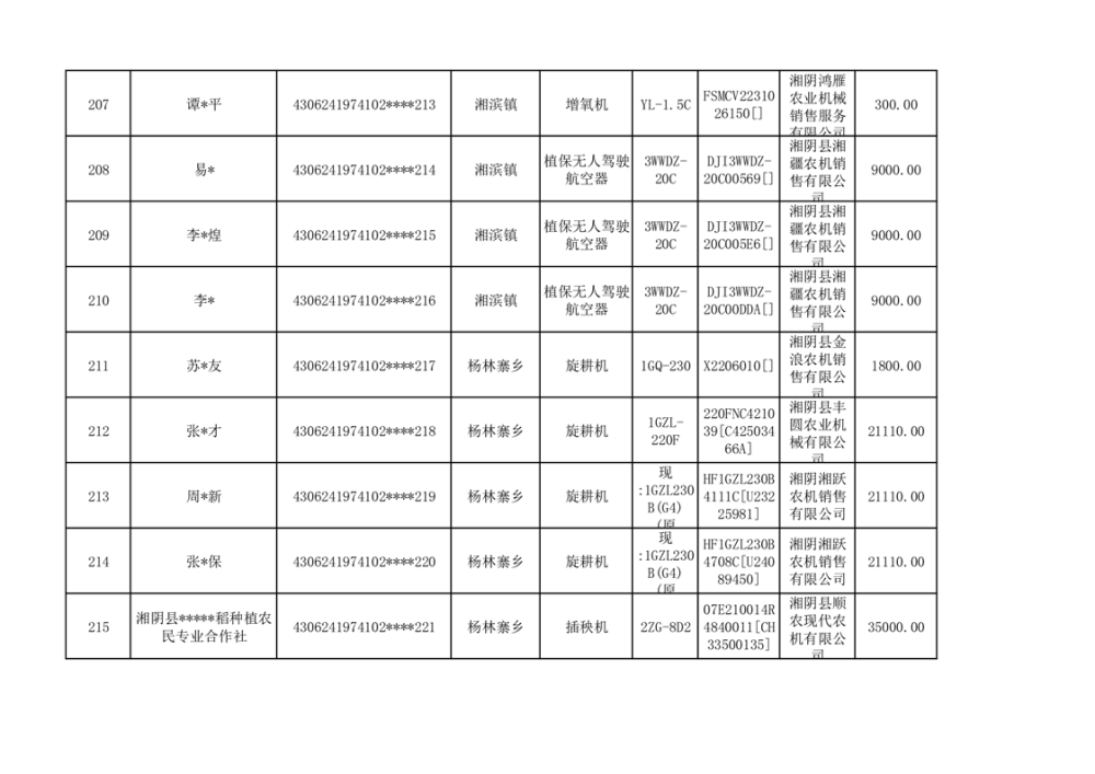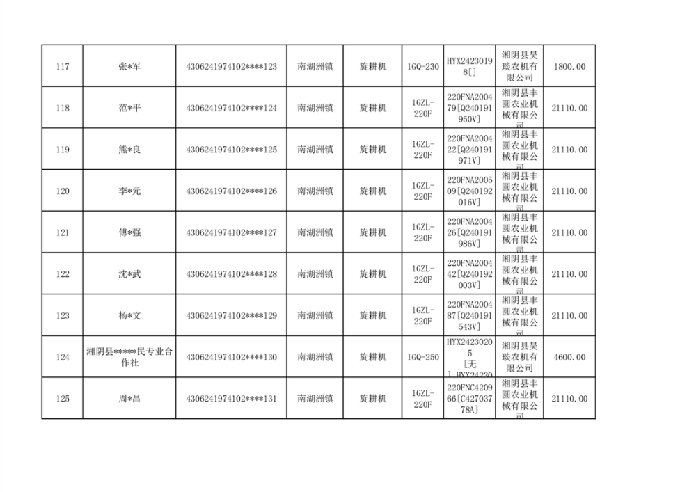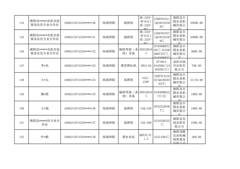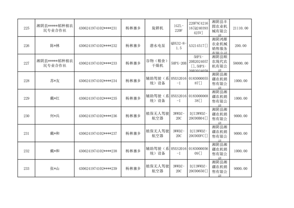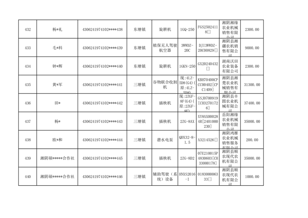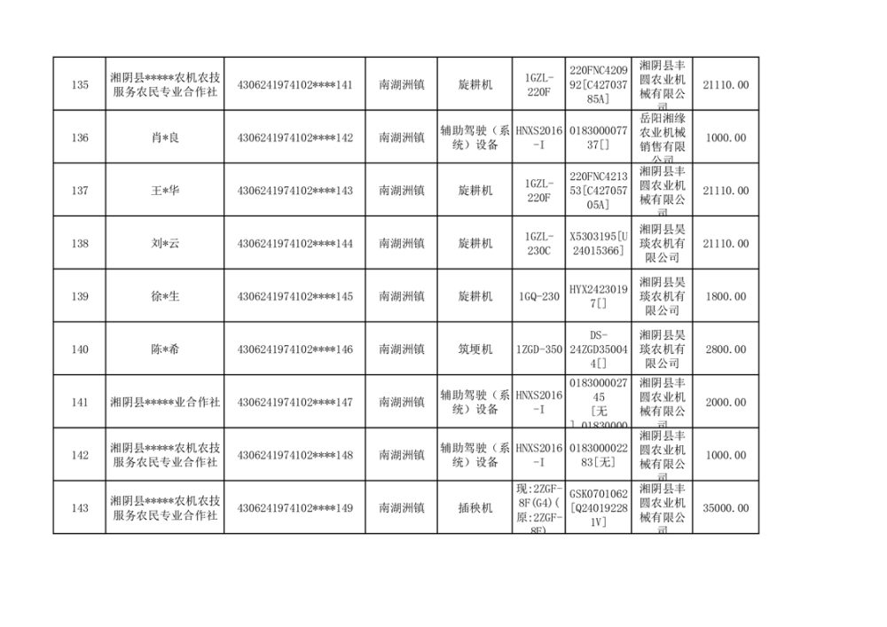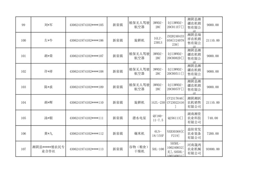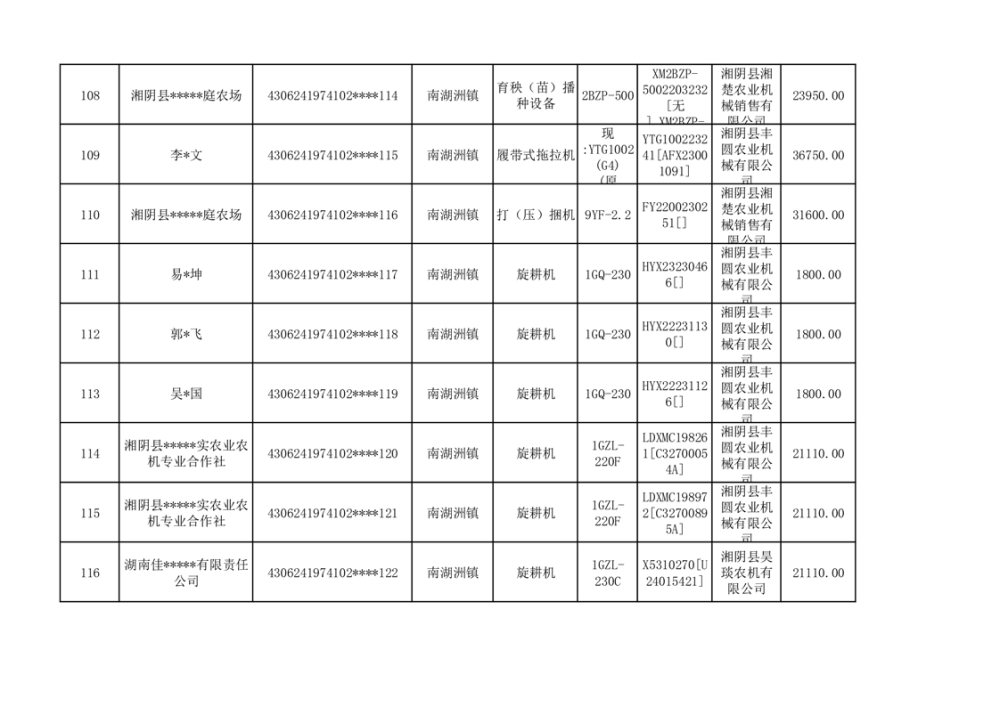 关于2023年湘阴县农机购置补贴资金公示(第六批)
