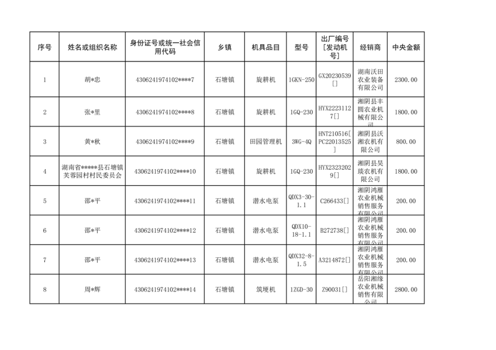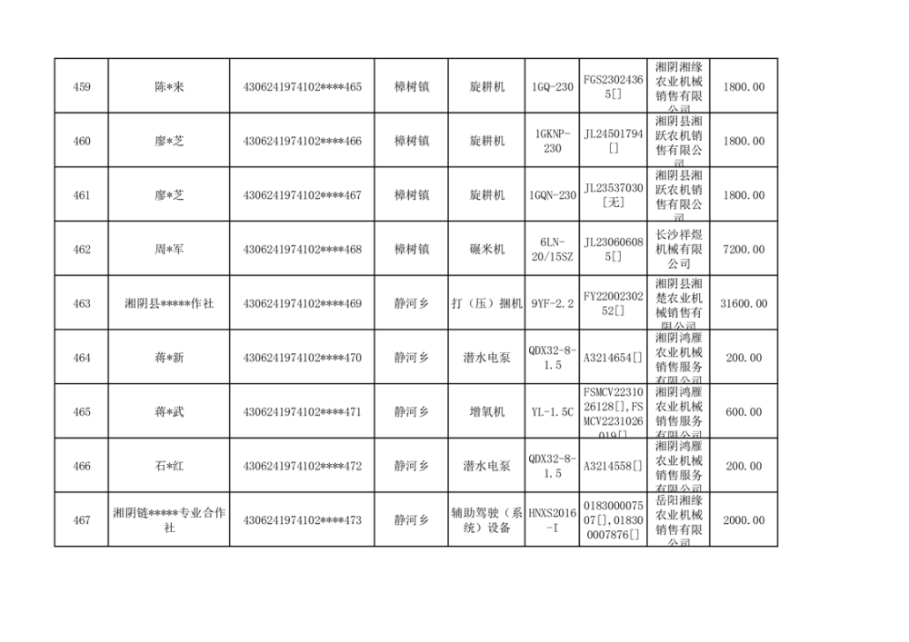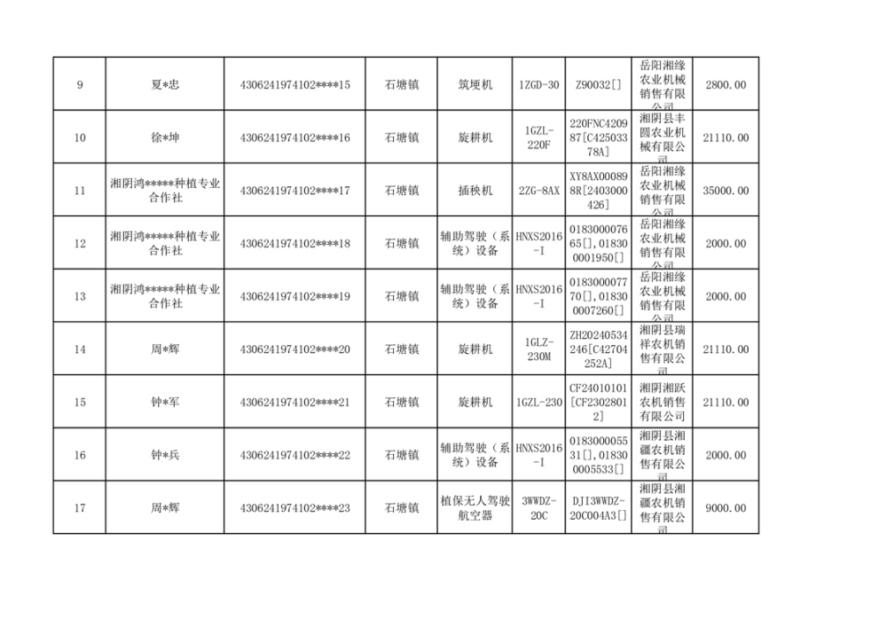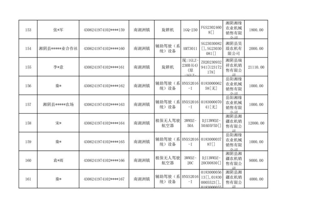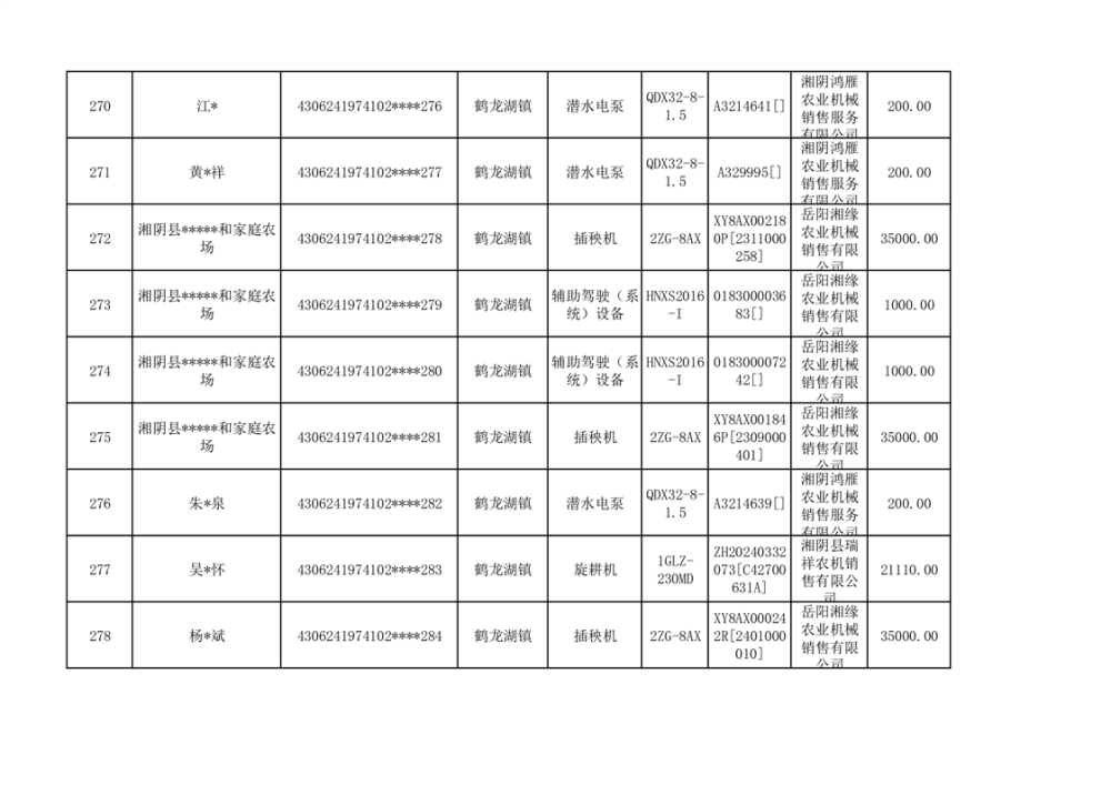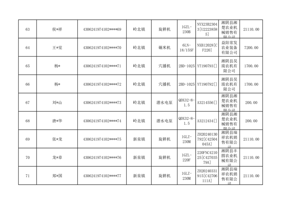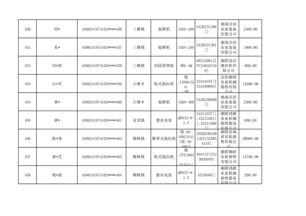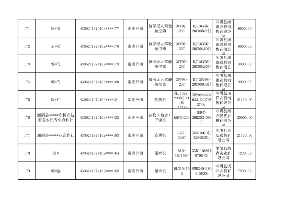 关于2023年湘阴县农机购置补贴资金公示(第六批)