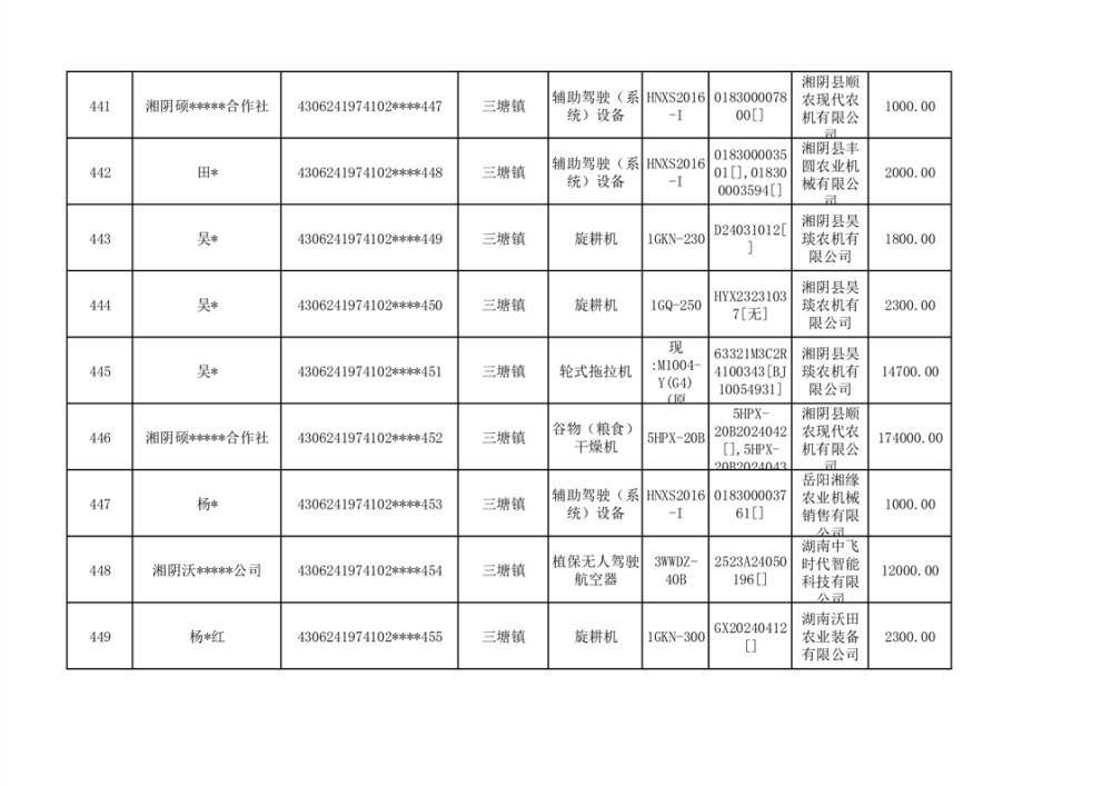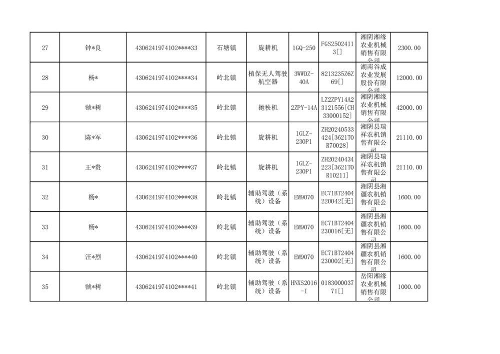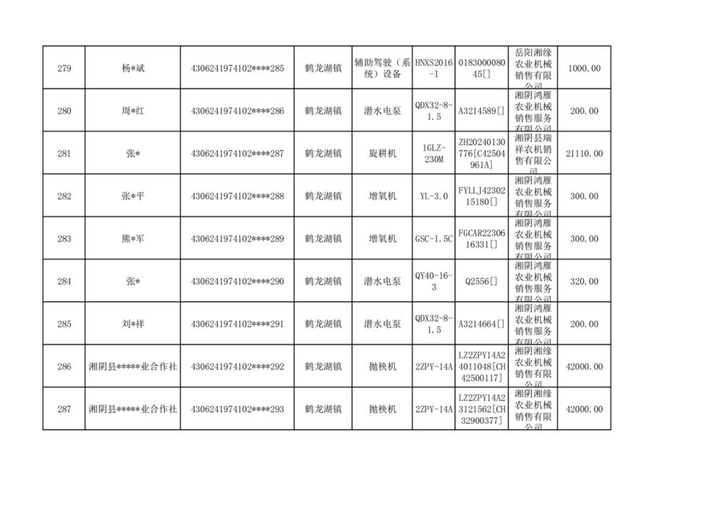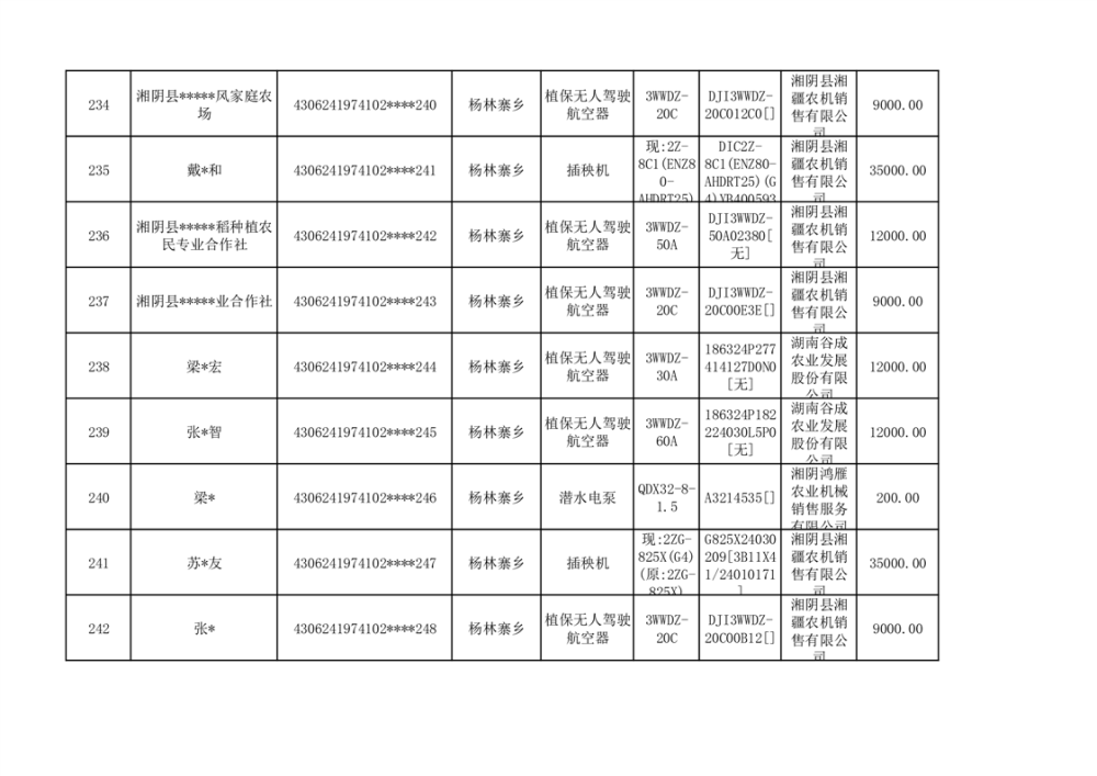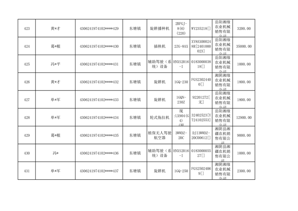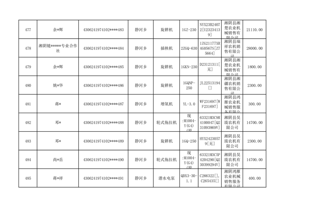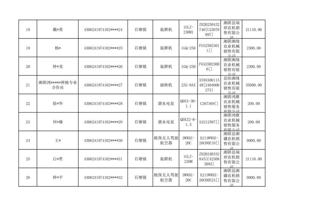 关于2023年湘阴县农机购置补贴资金公示(第六批)