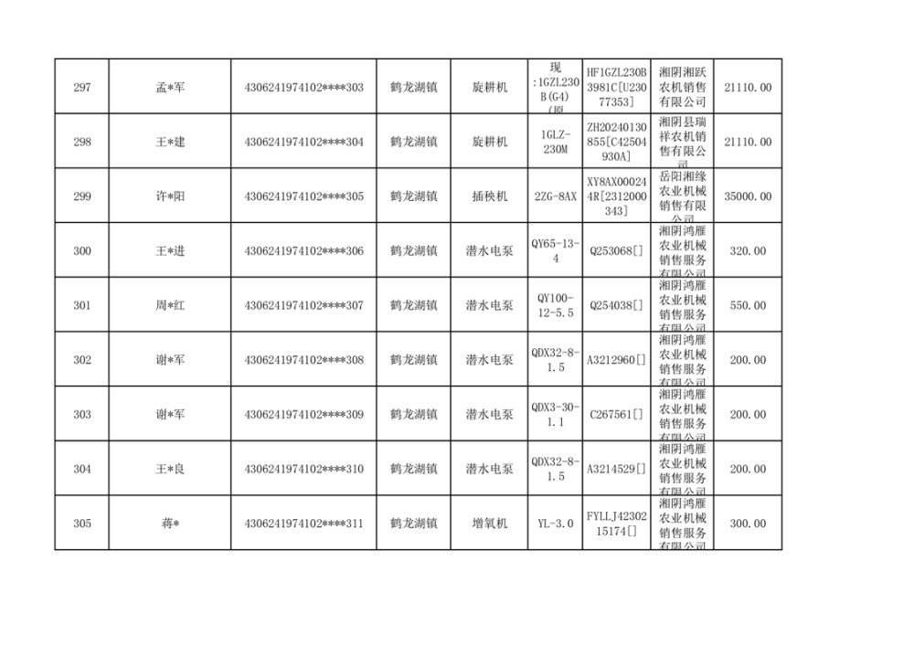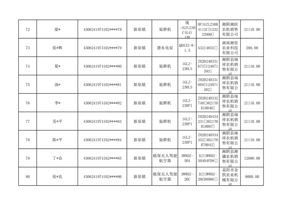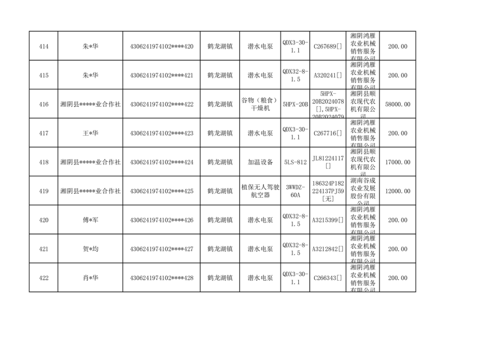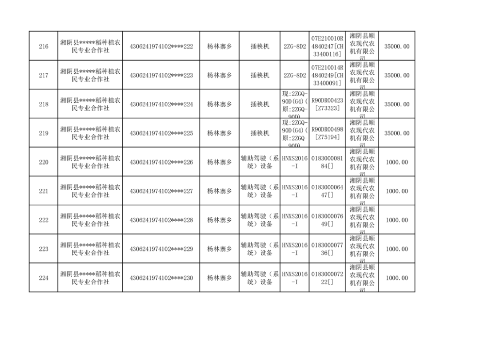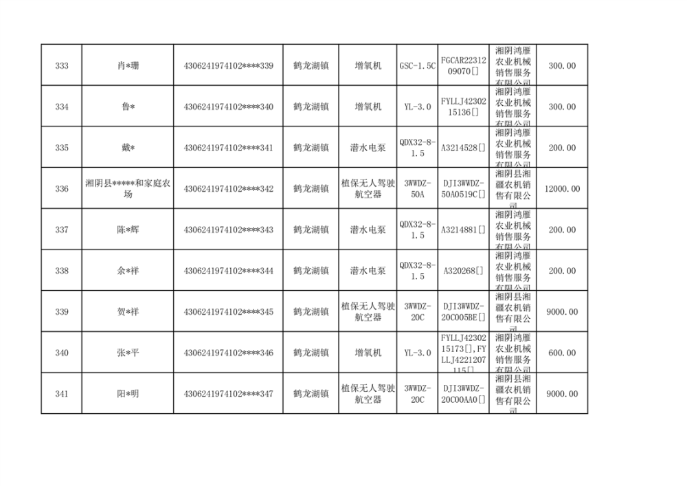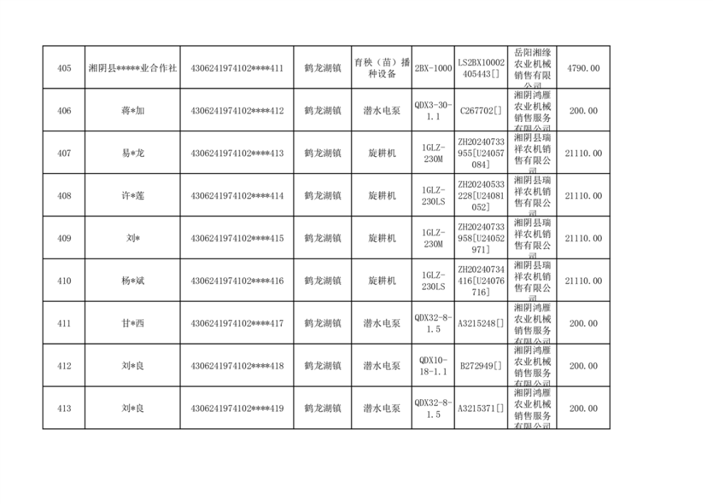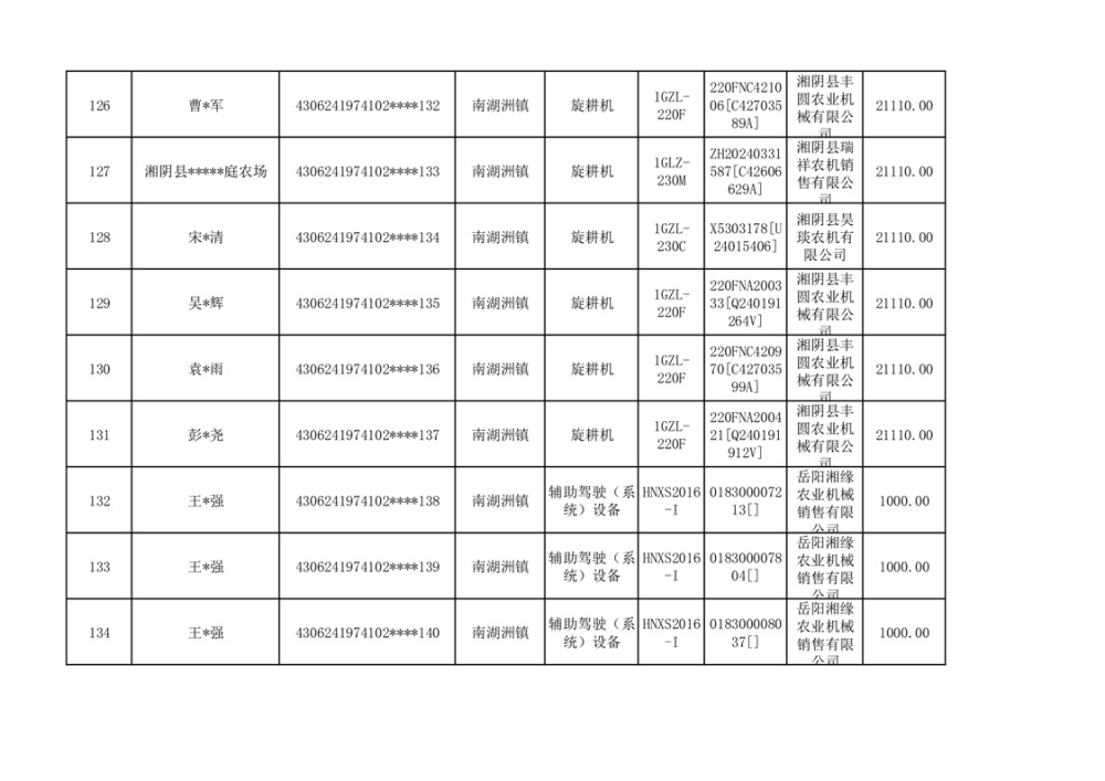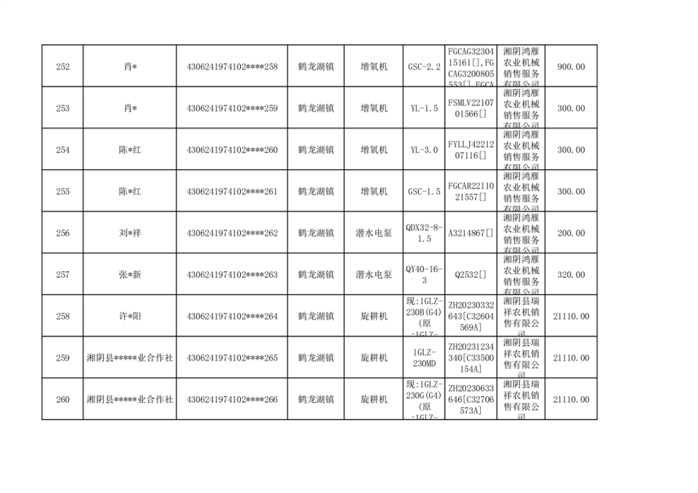 关于2023年湘阴县农机购置补贴资金公示(第六批)