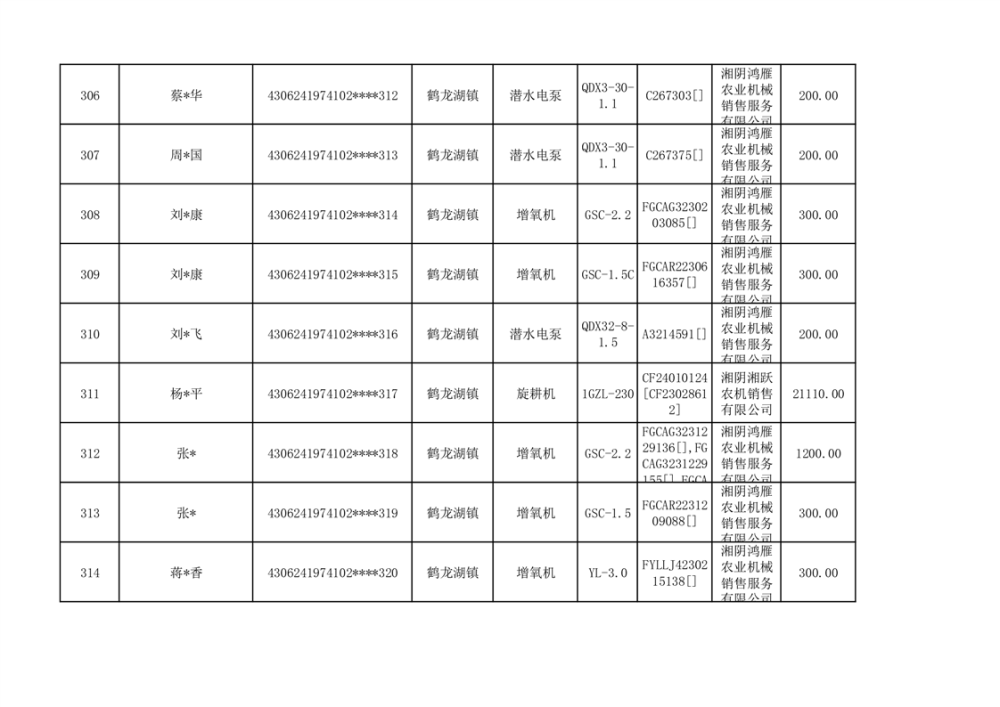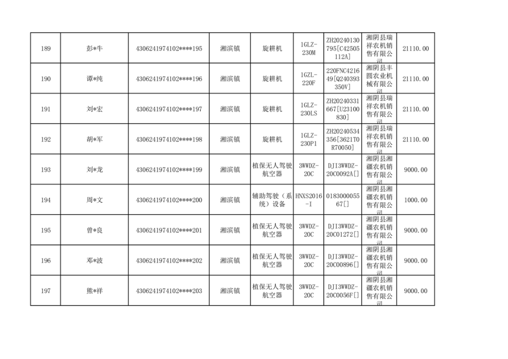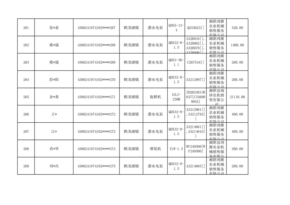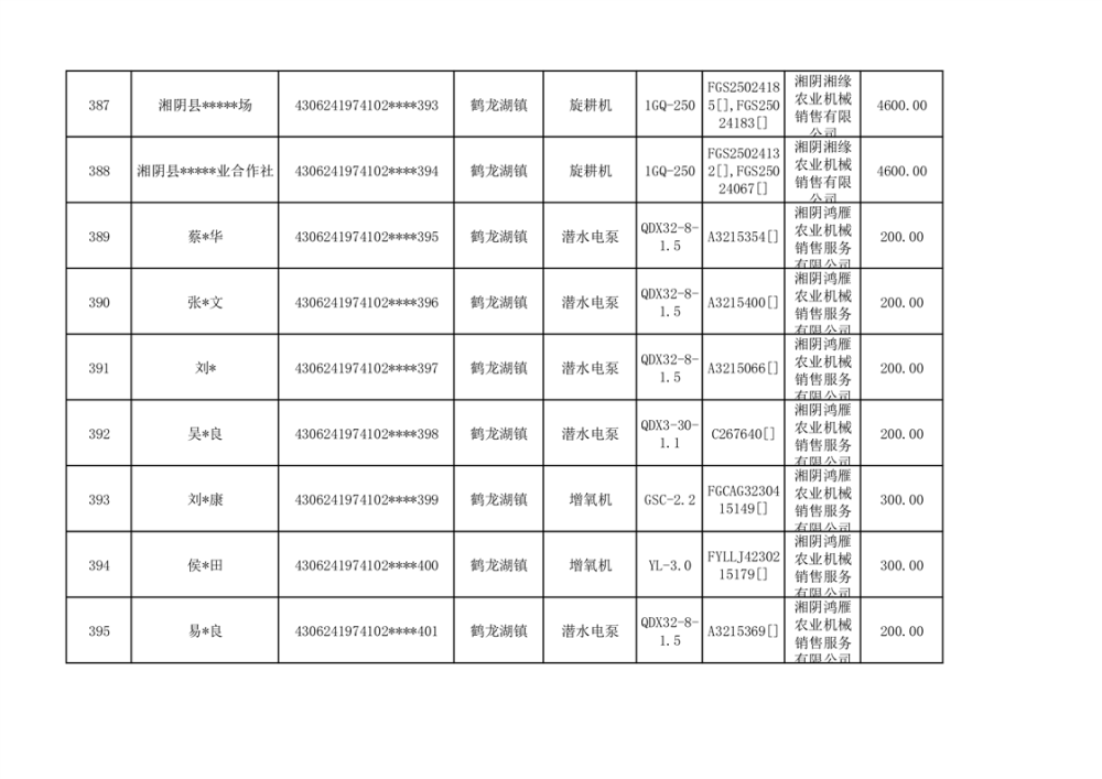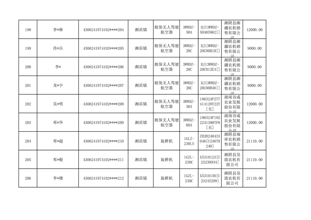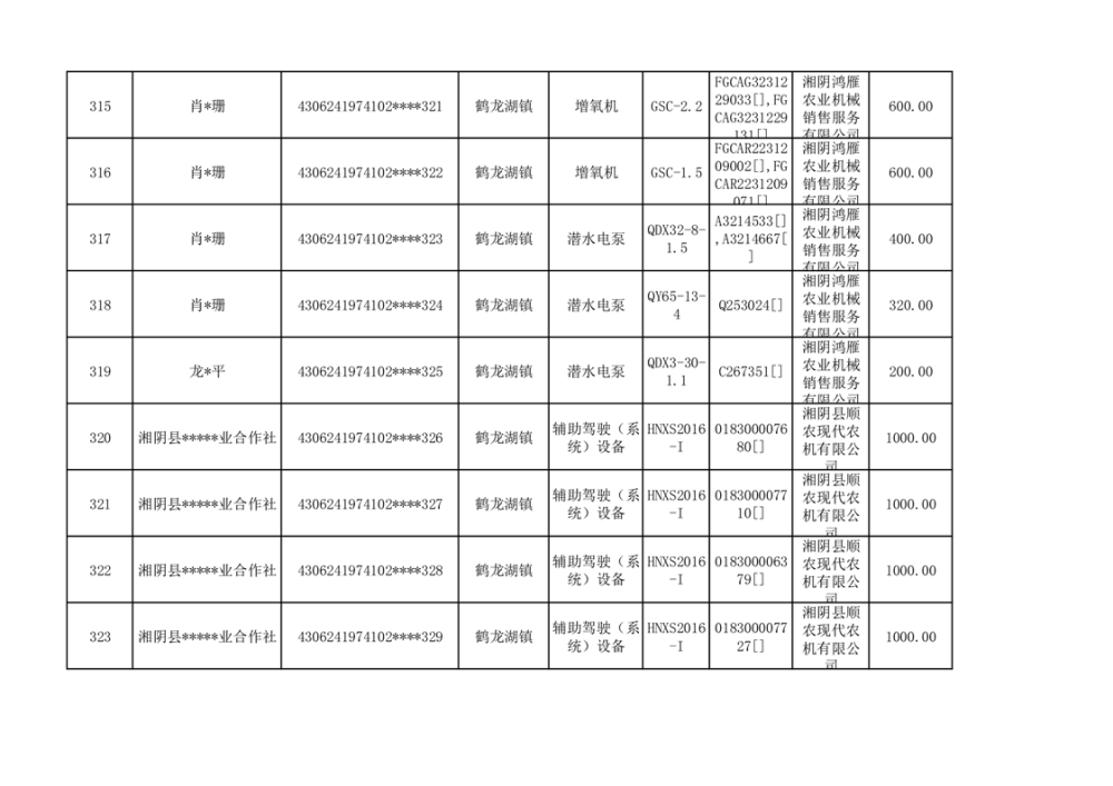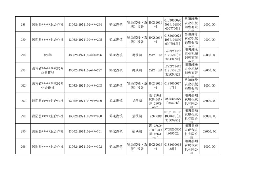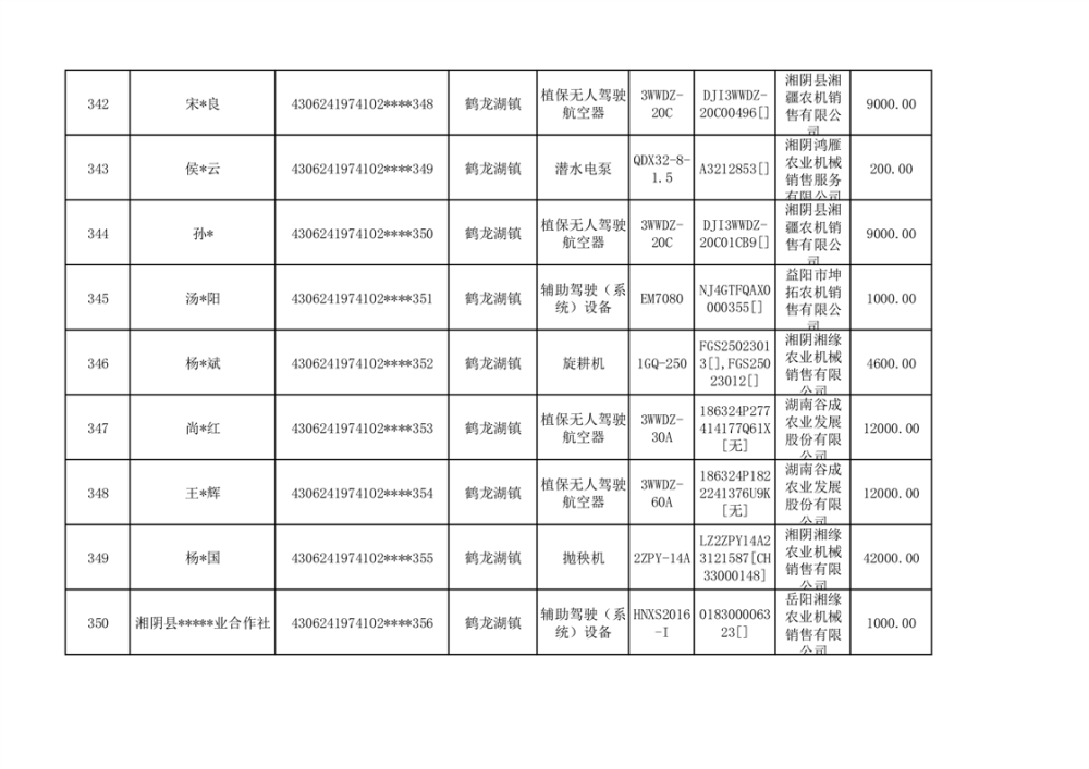 关于2023年湘阴县农机购置补贴资金公示(第六批)