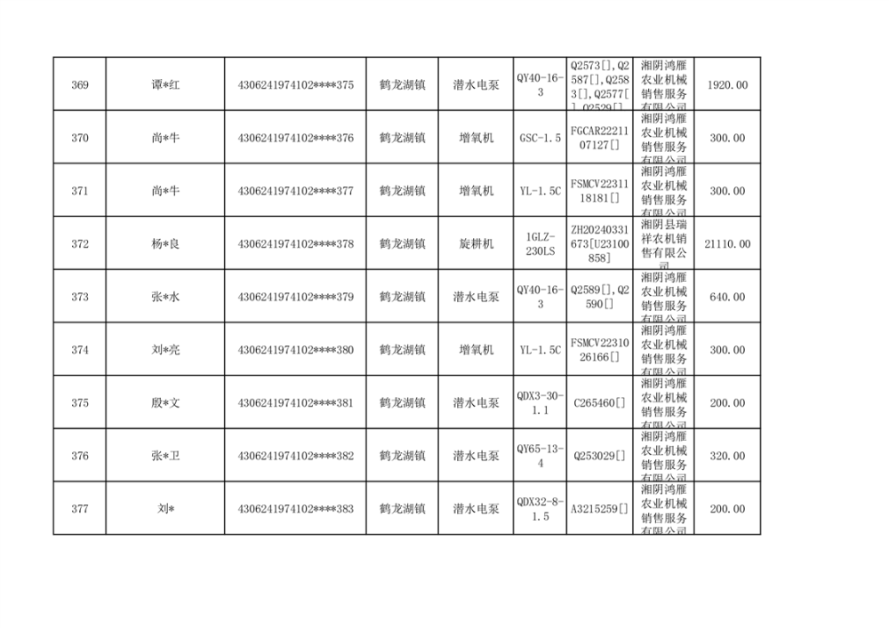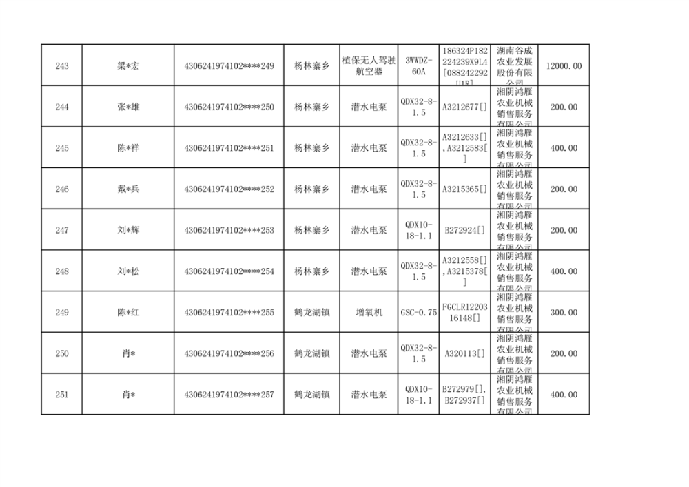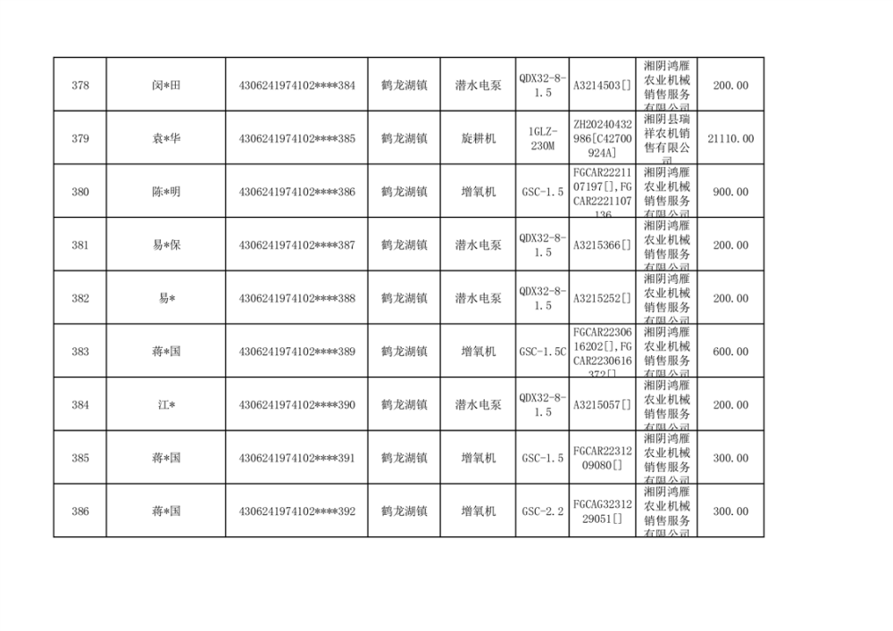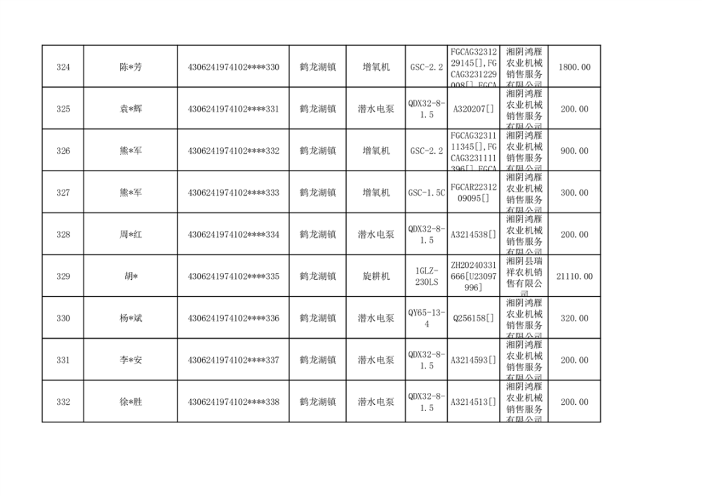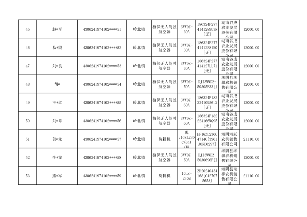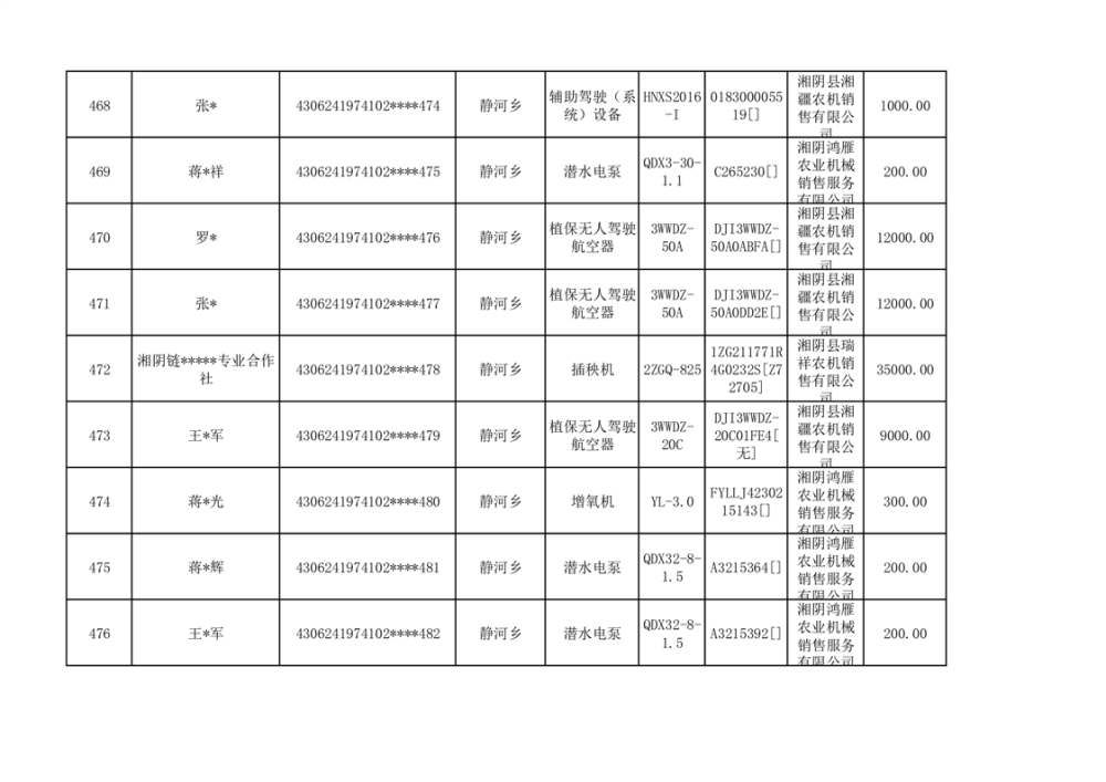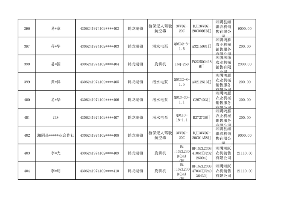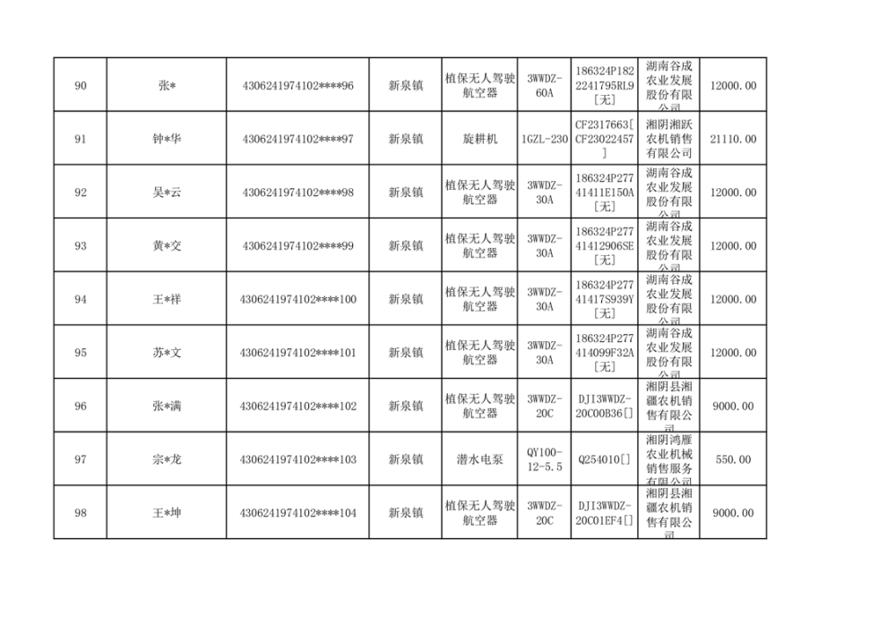 关于2023年湘阴县农机购置补贴资金公示(第六批)