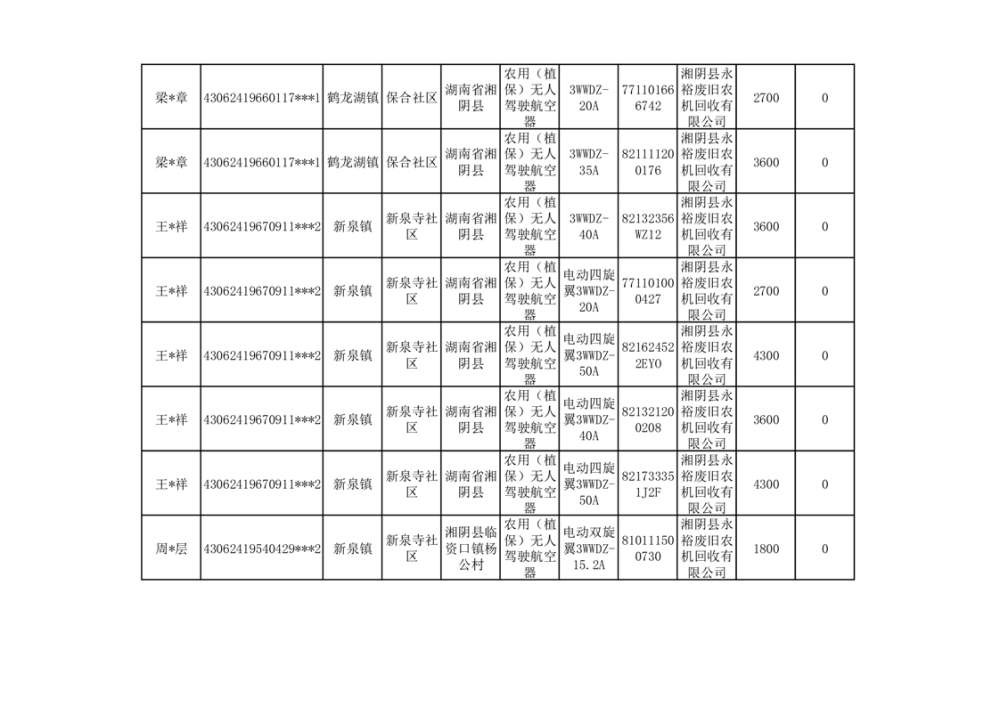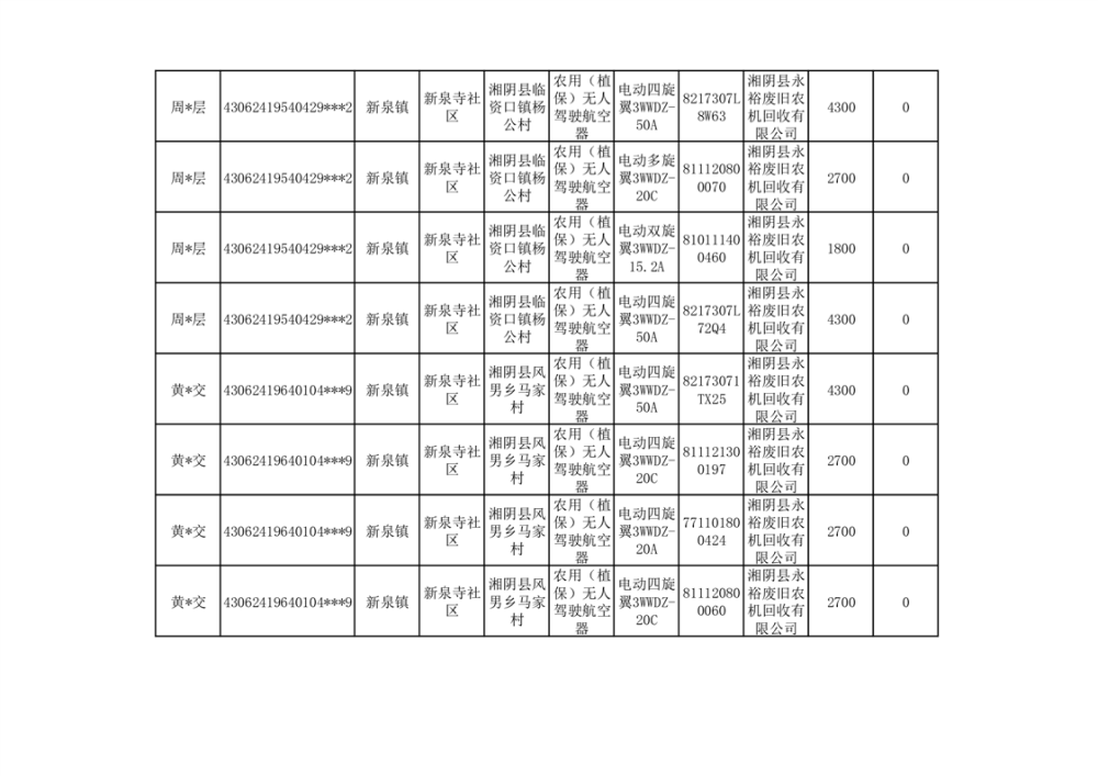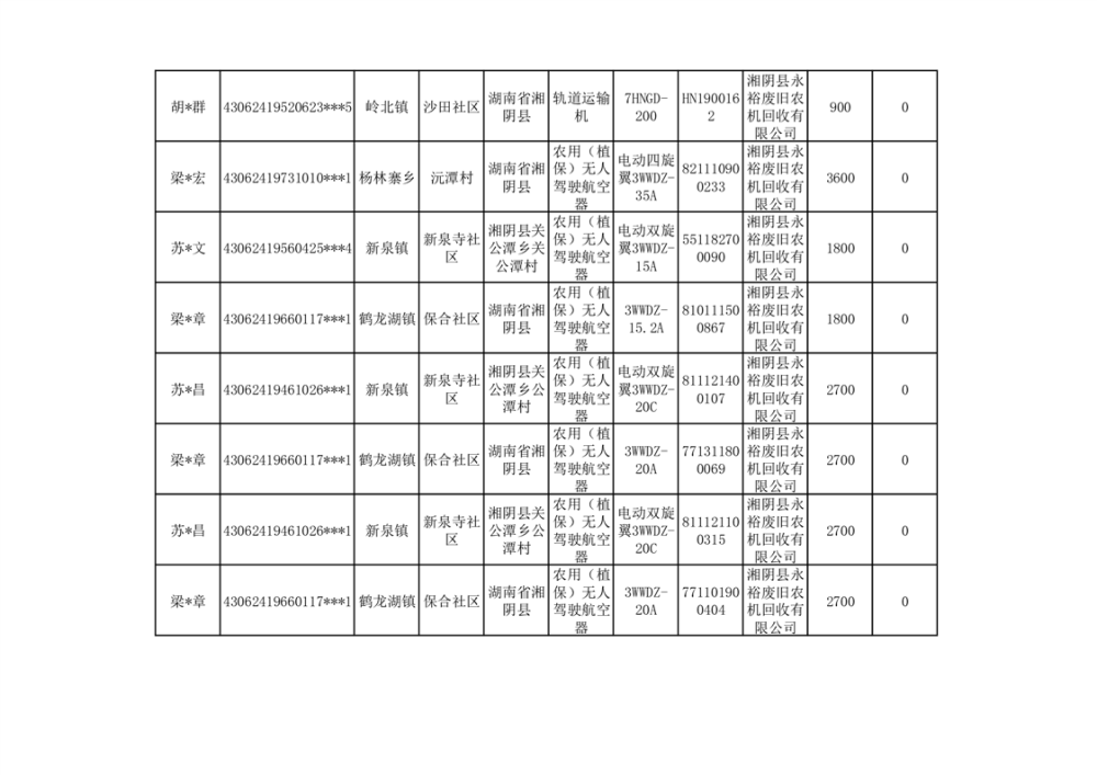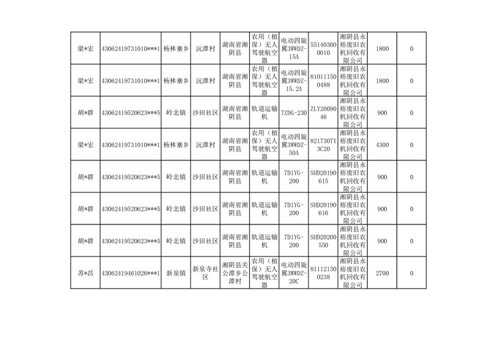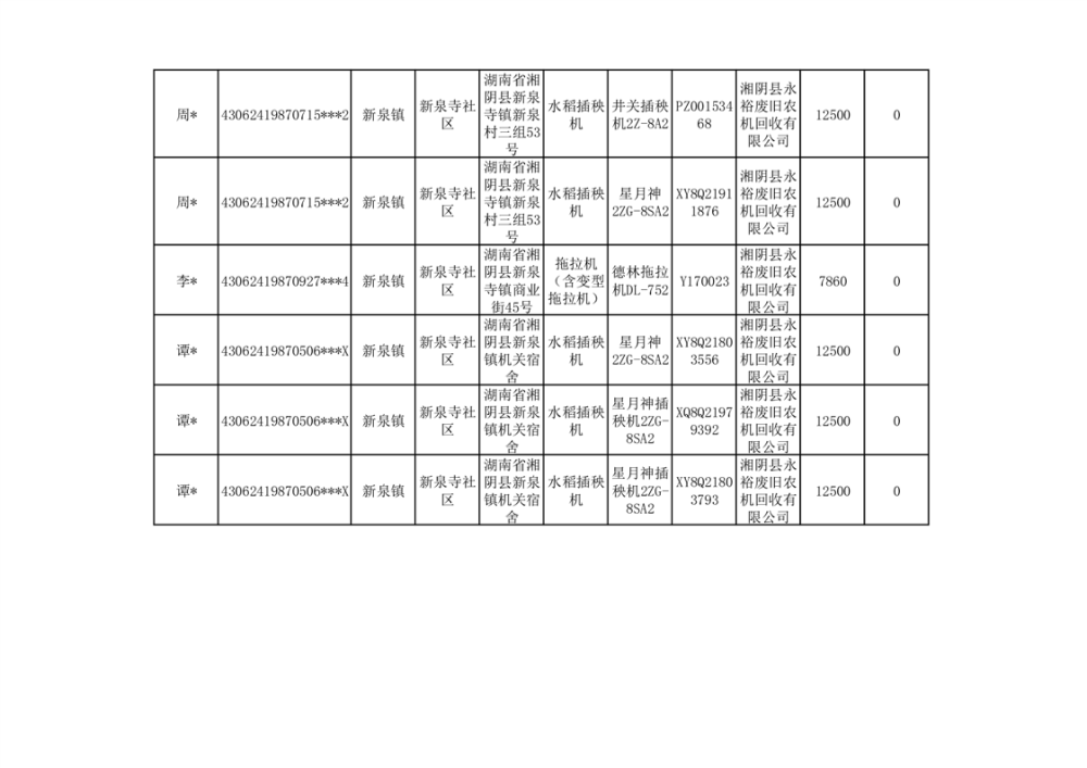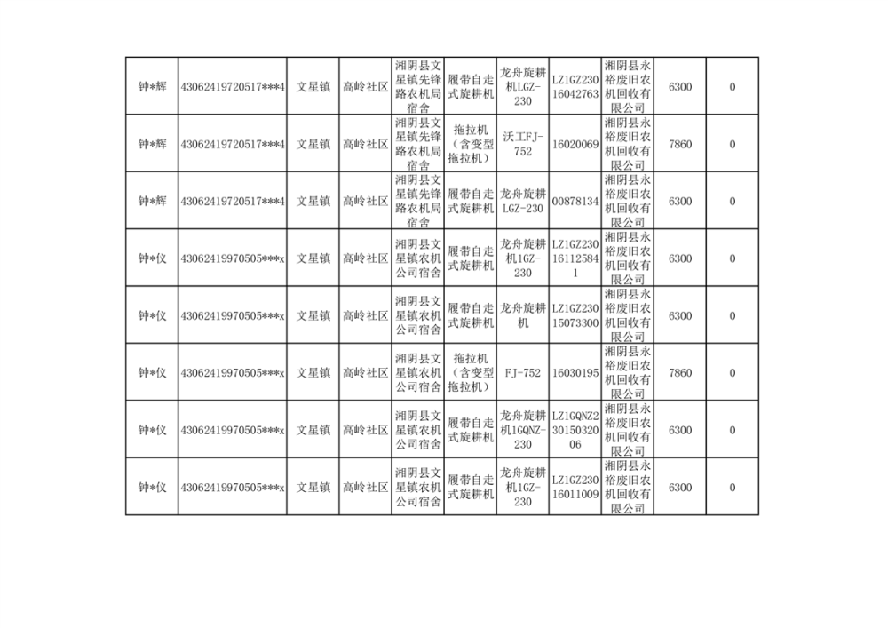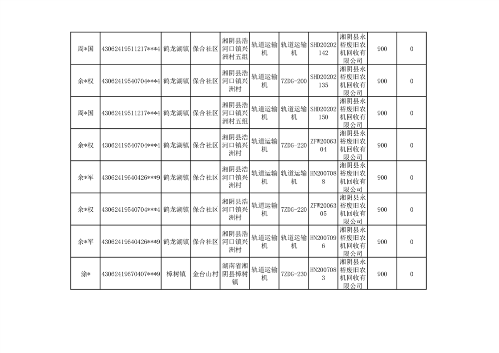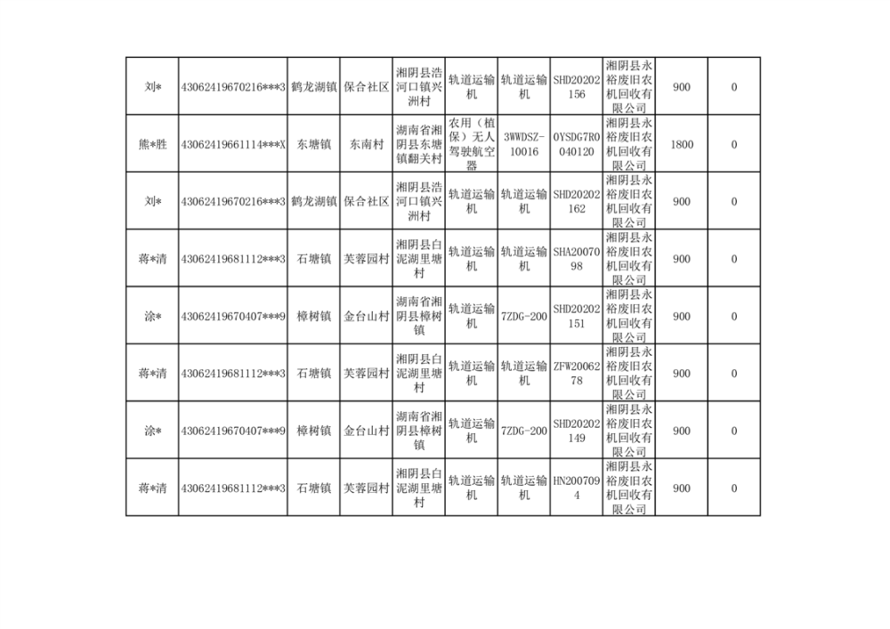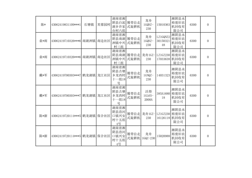 2024年湘阴县农机报废更新补贴资金公示(第三批)