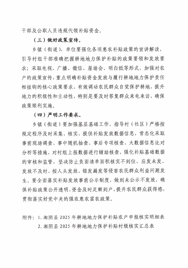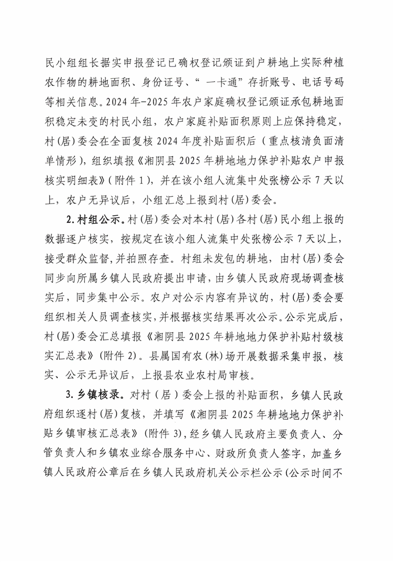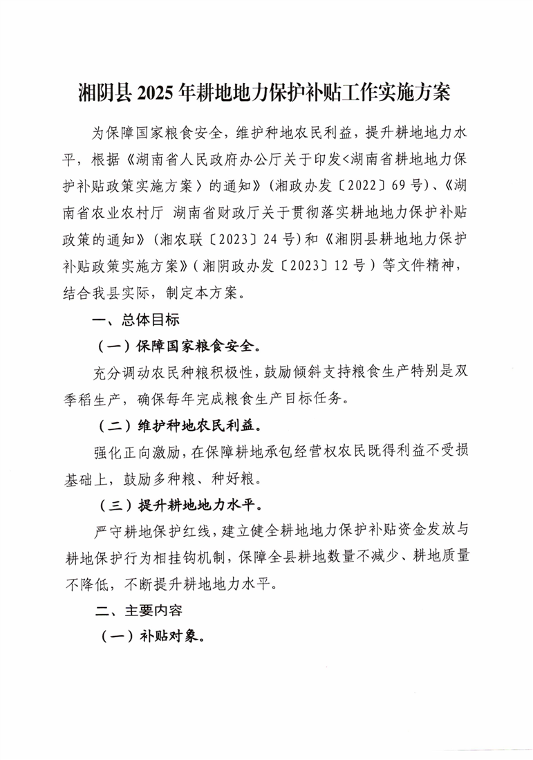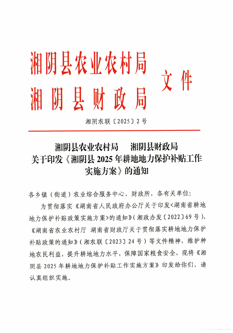 关于印发《湘阴县2025年耕地地力保护补贴工作实施方案》的通知