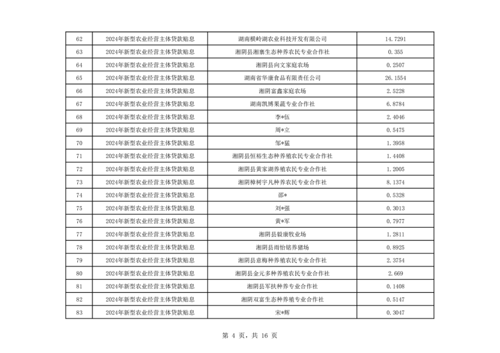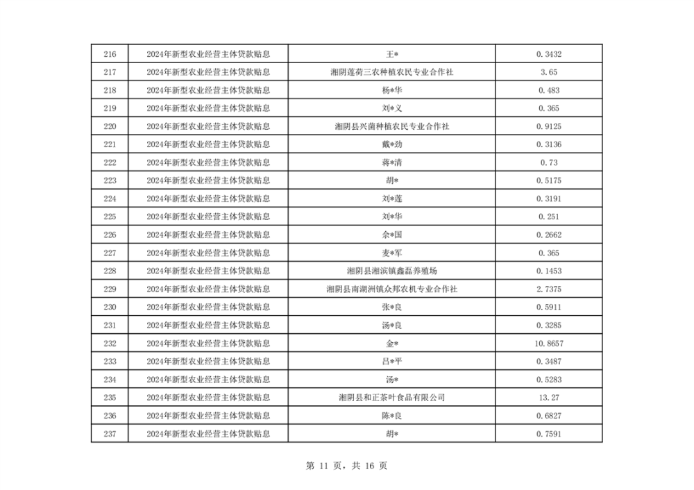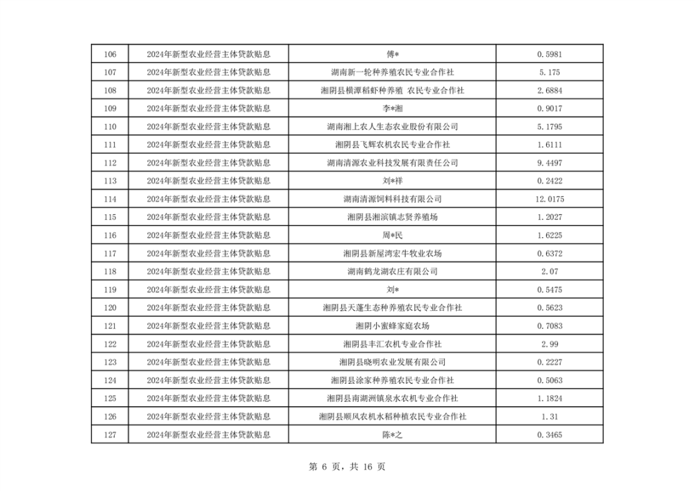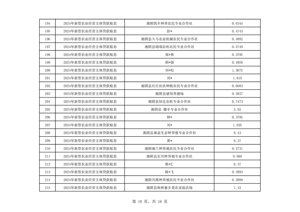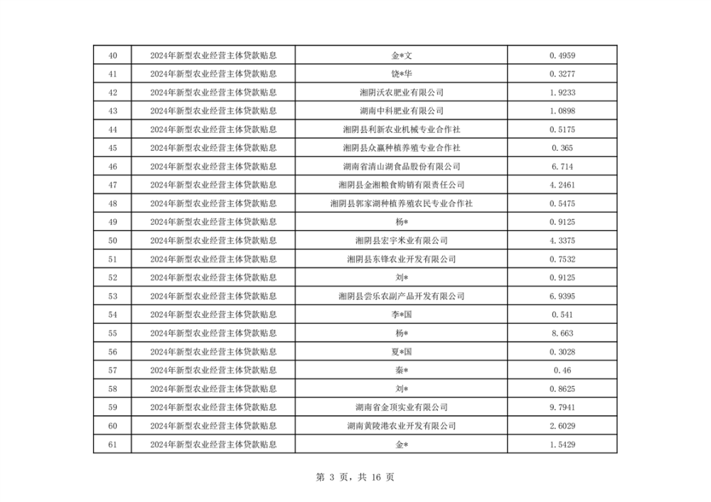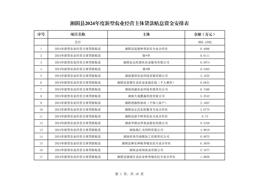 关于湘阴县2024年度新型农业经营主体贷款贴息资金安排的公示