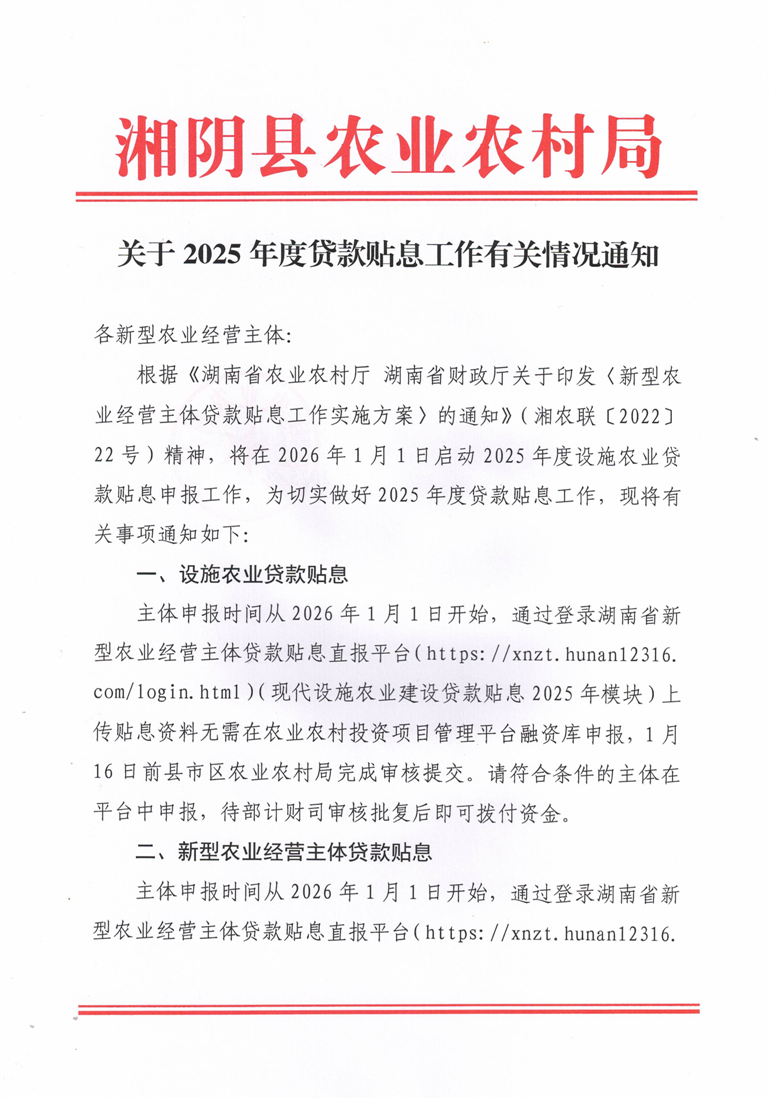 关于2025年度贷款贴息工作有关情况通知