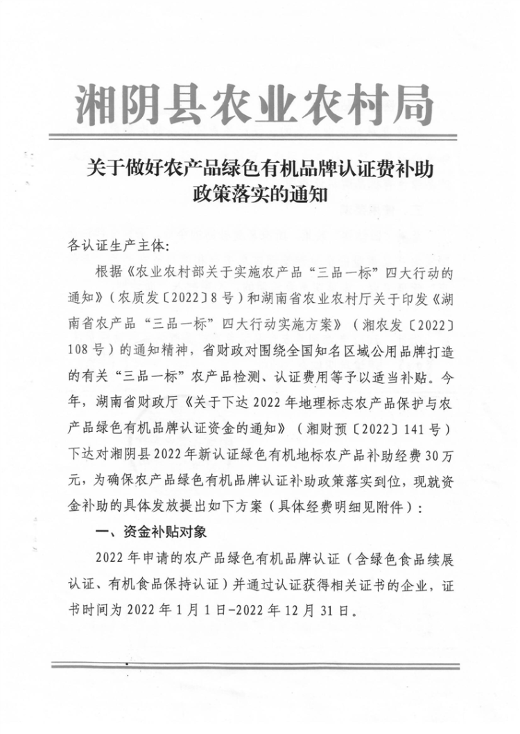 关于做好农产品绿色有机品牌认证费补助政策落实的通知