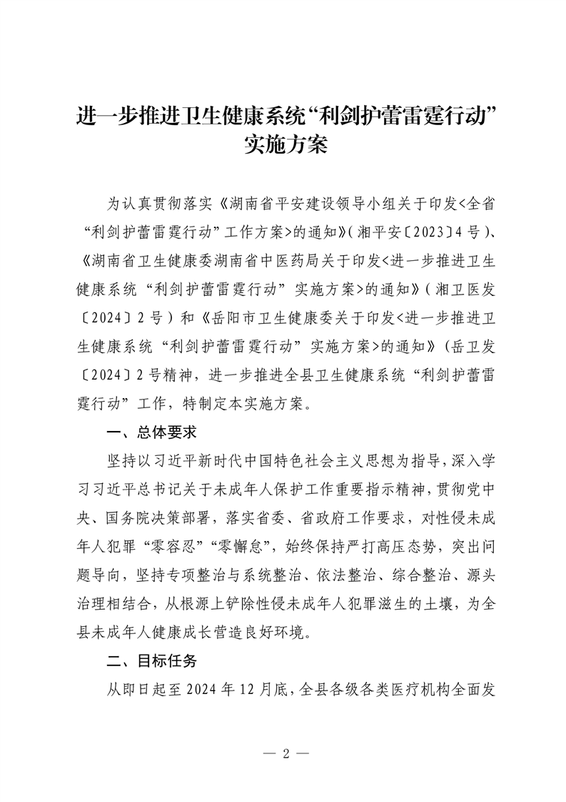进一步推进卫生健康系统“利剑护蕾雷霆行动”实施方案