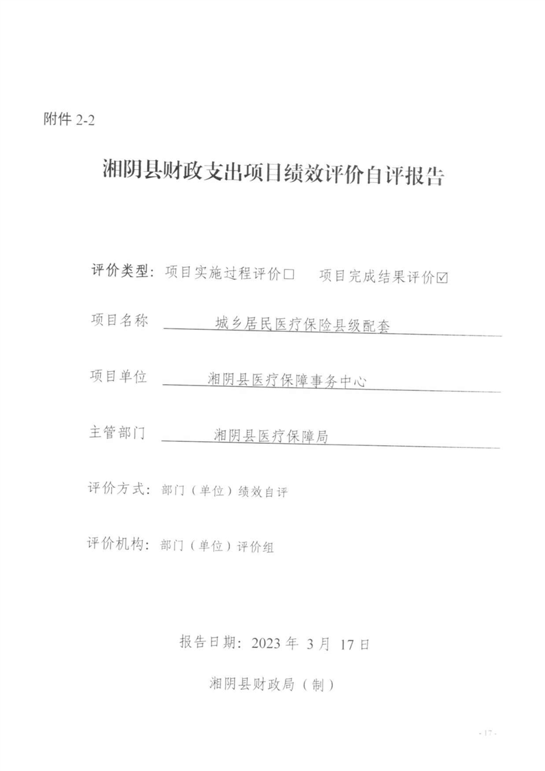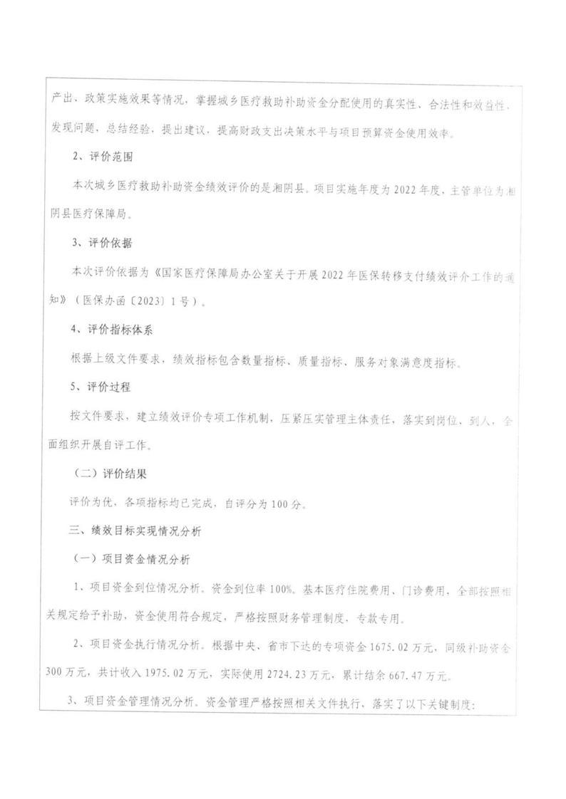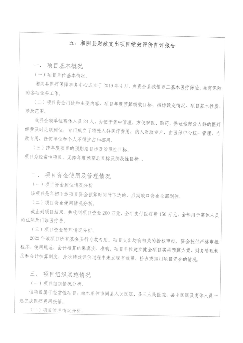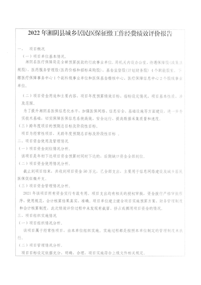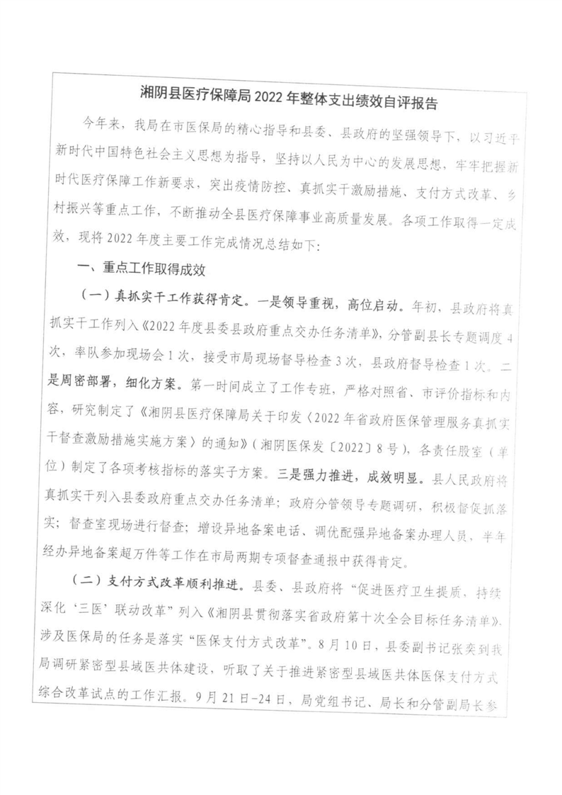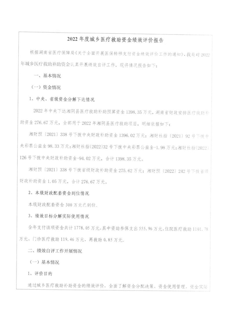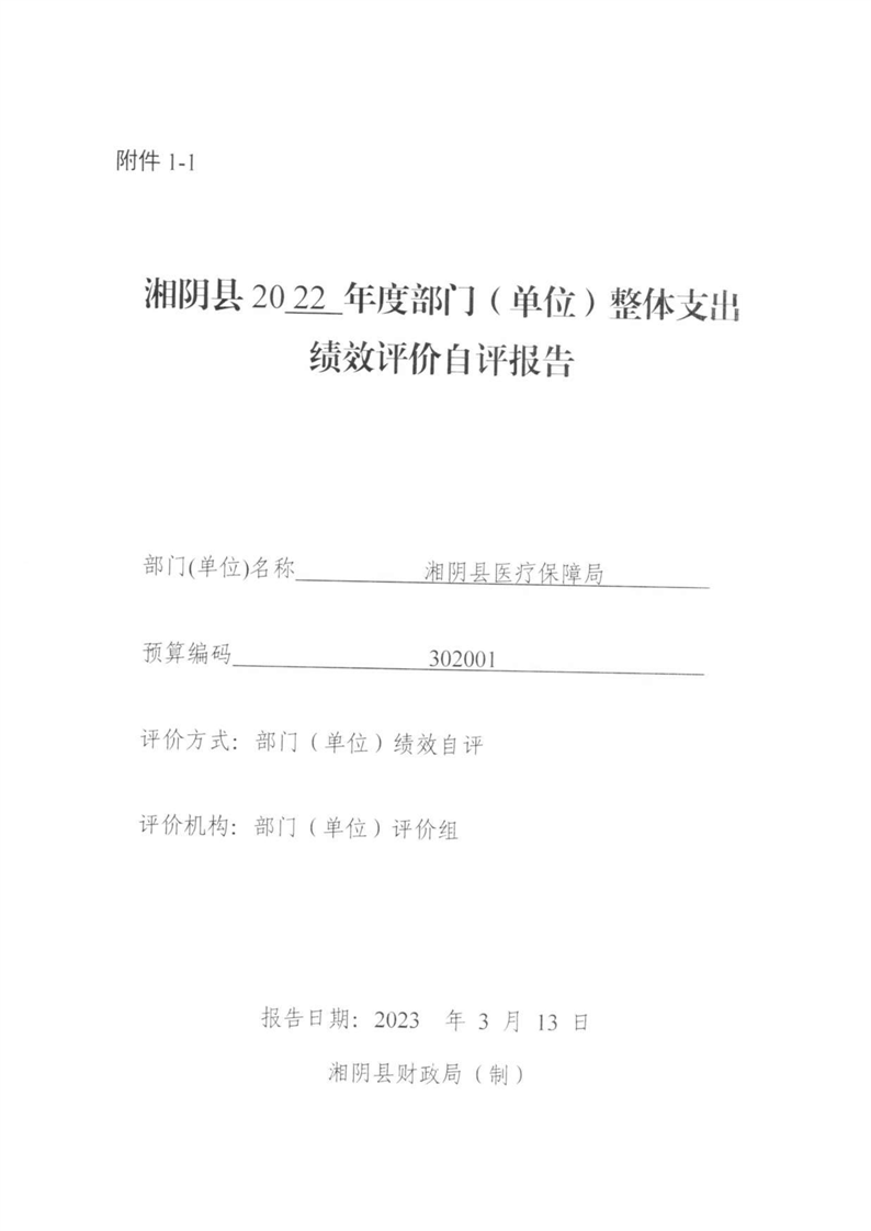湘阴县医疗保障局-2022年度-绩效评价自评报告