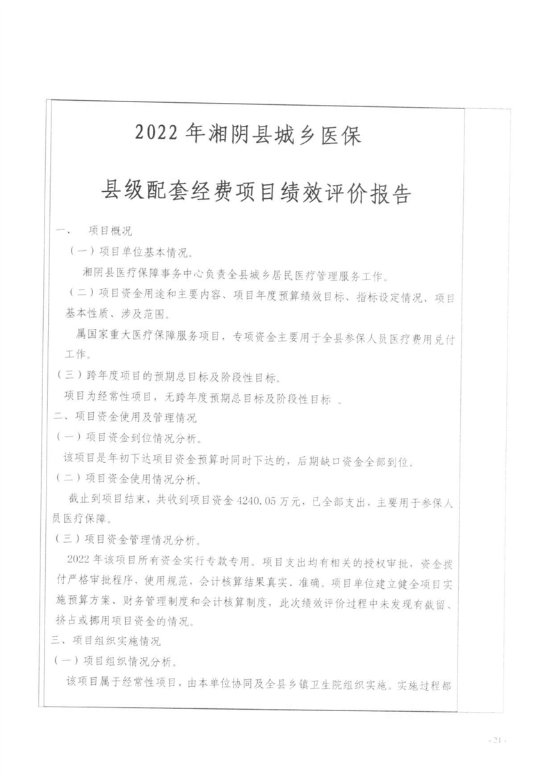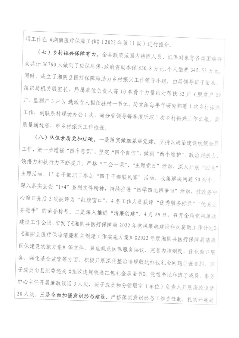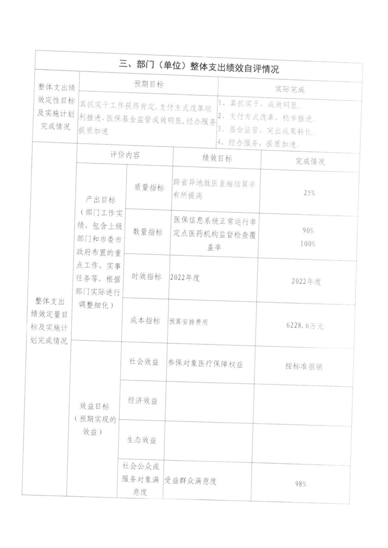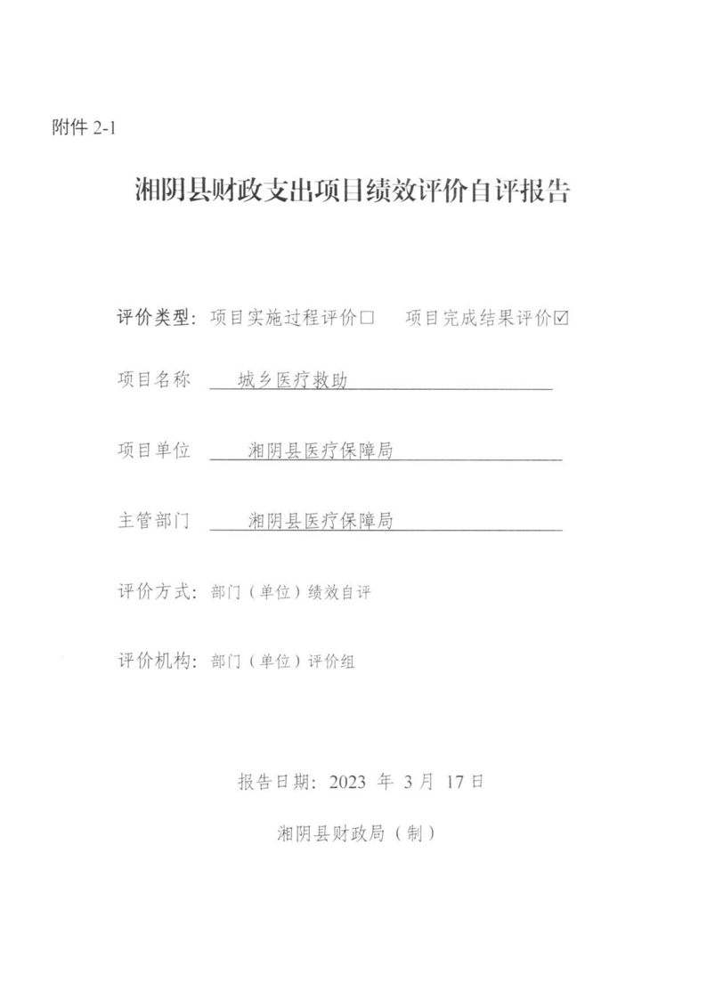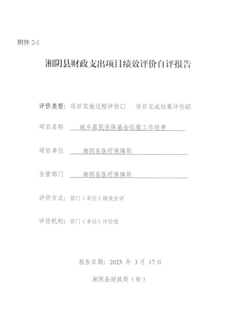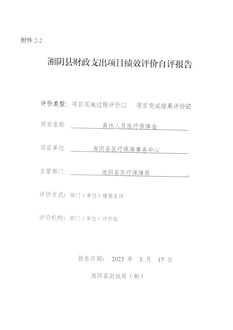湘阴县医疗保障局-2022年度-绩效评价自评报告