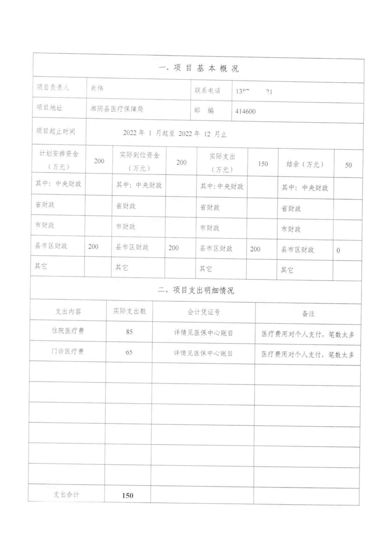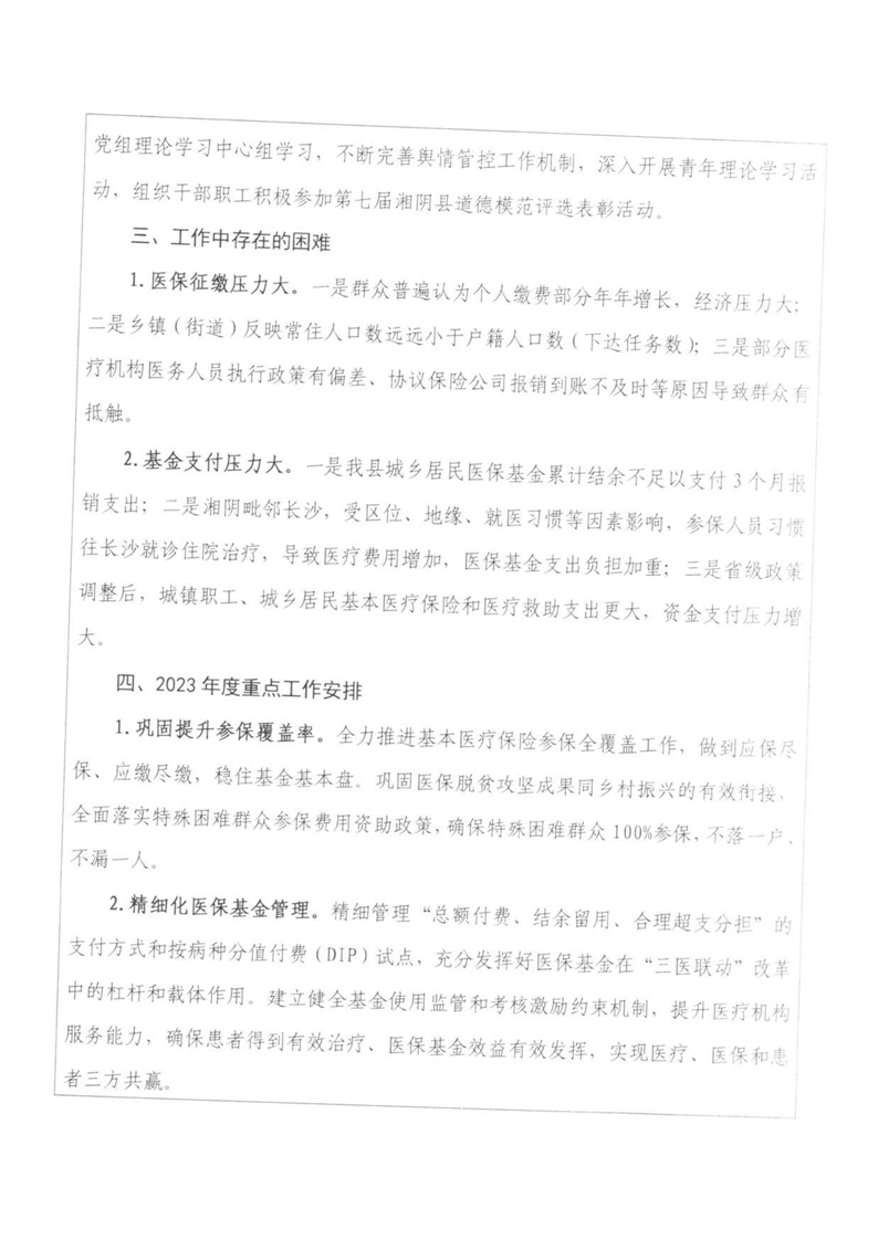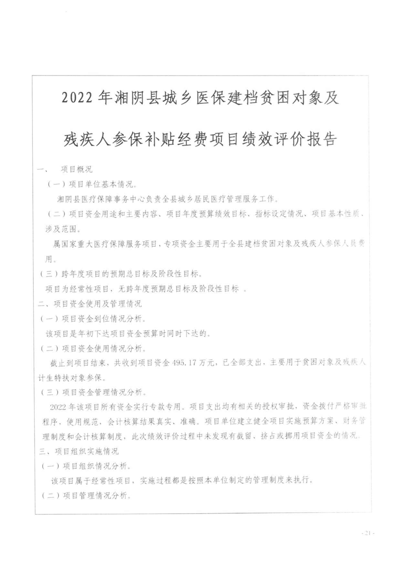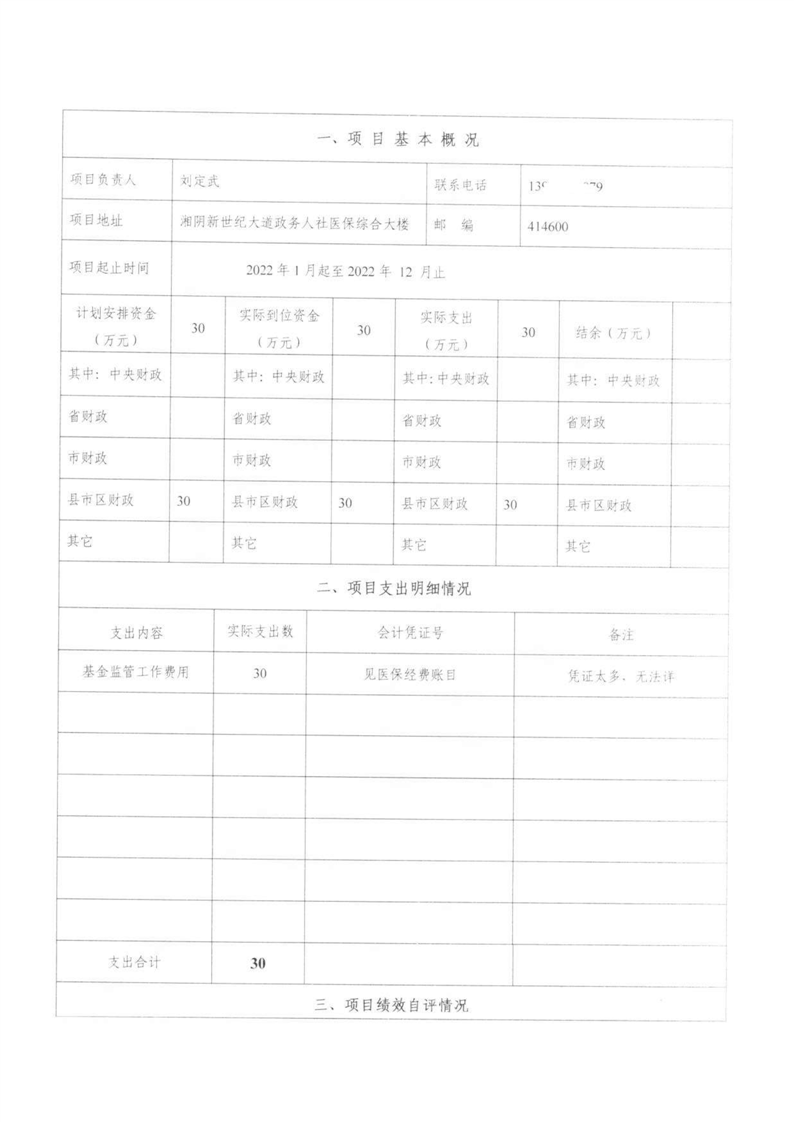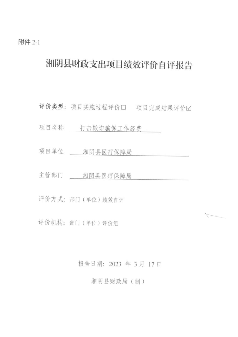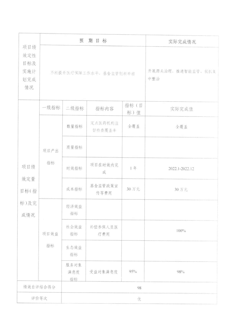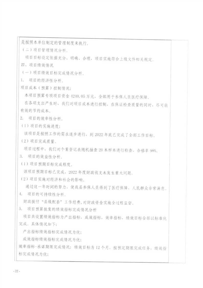 湘阴县医疗保障局-2022年度-绩效评价自评报告