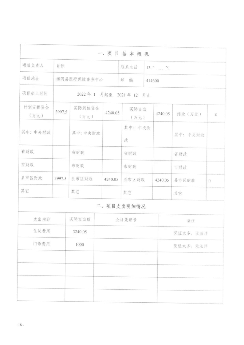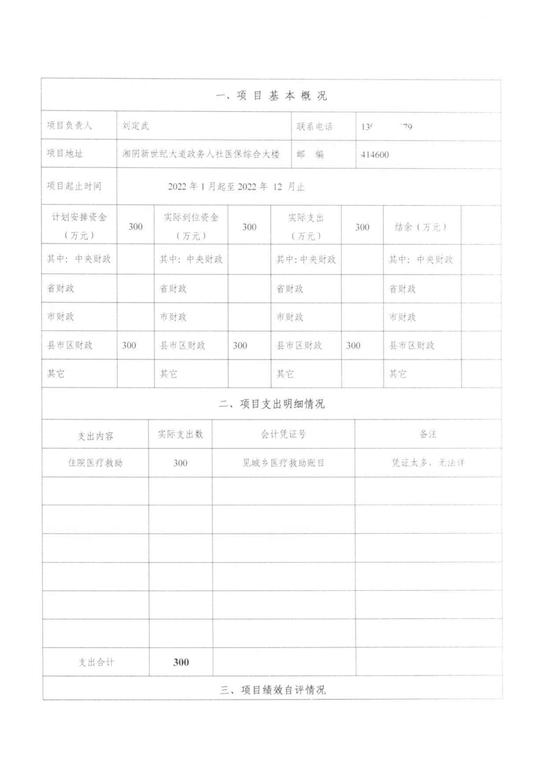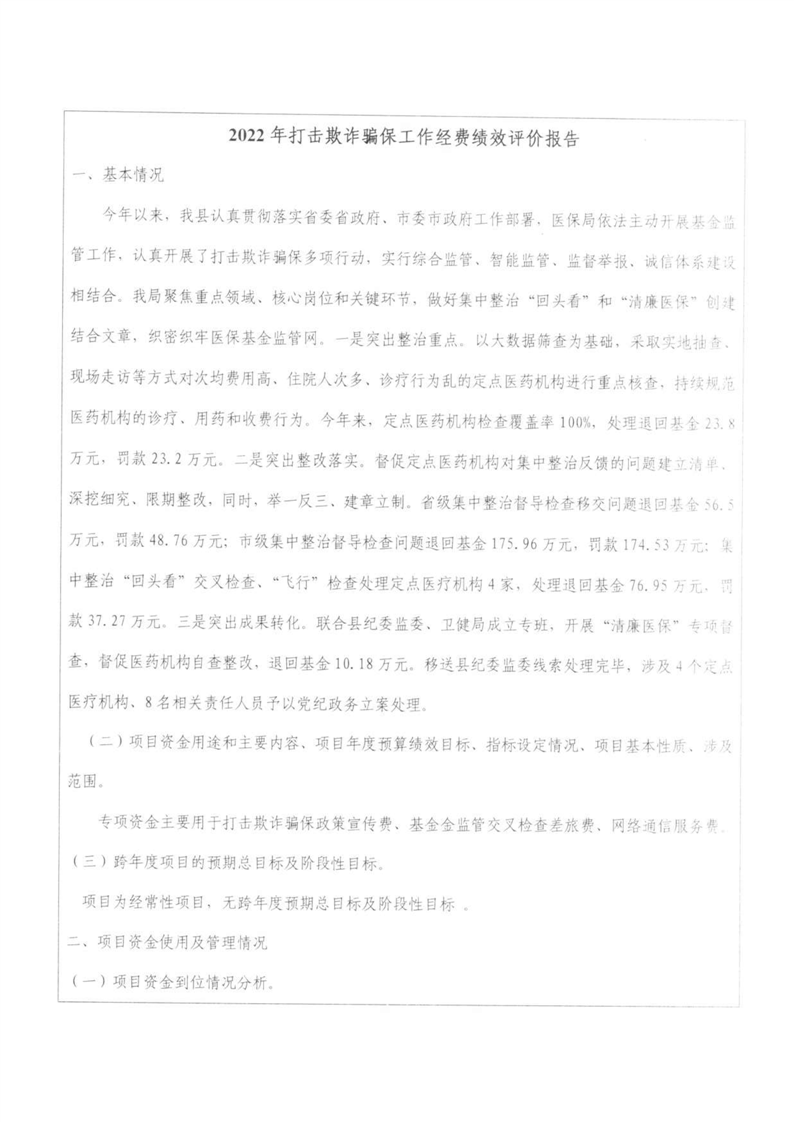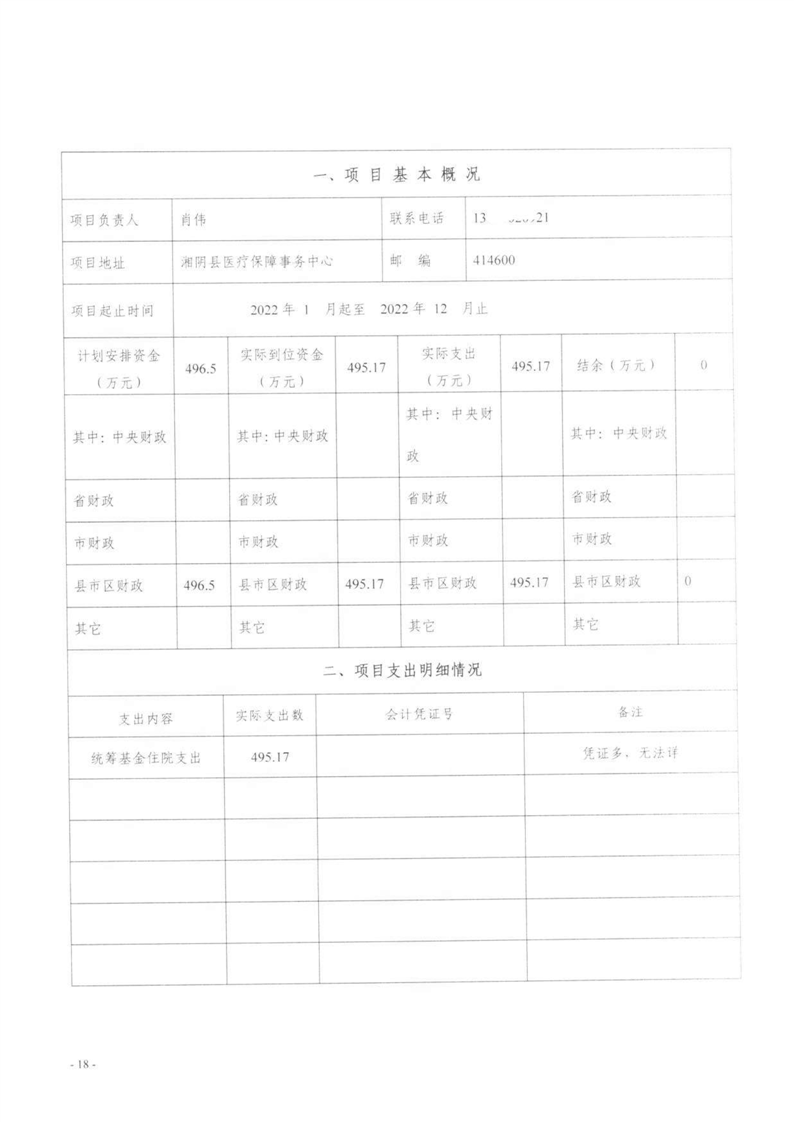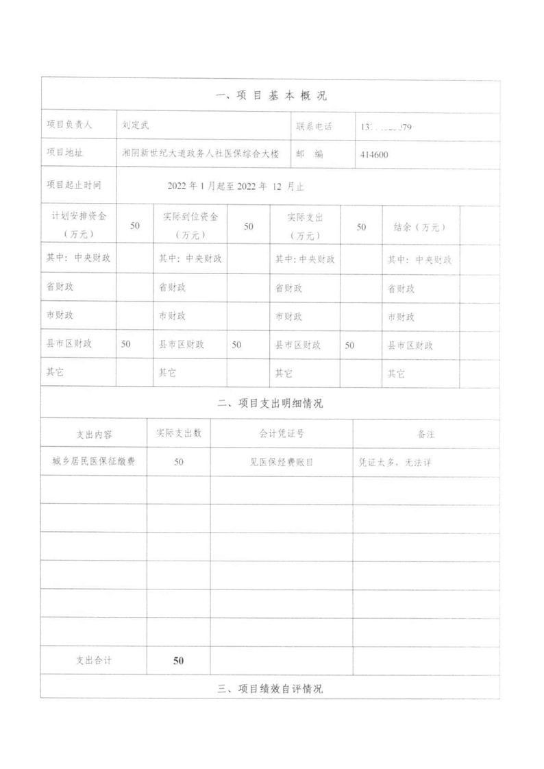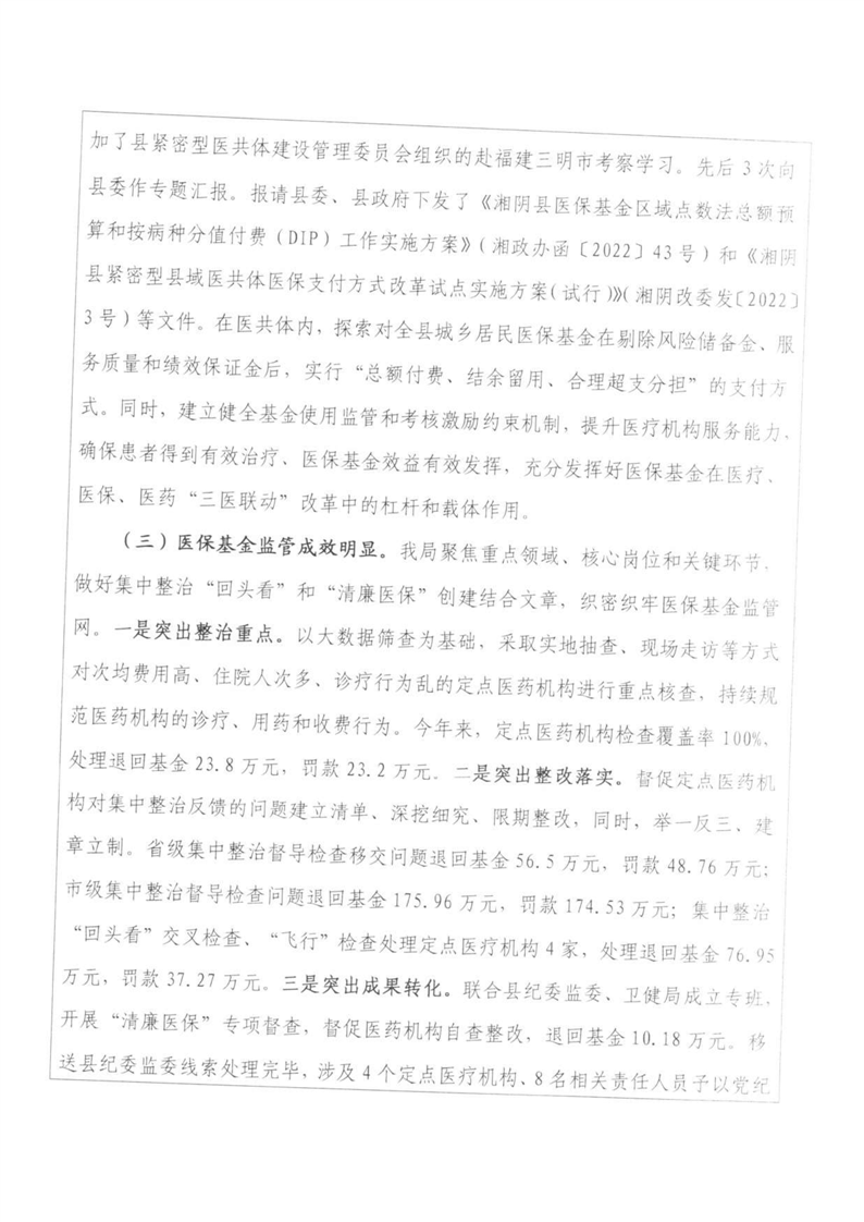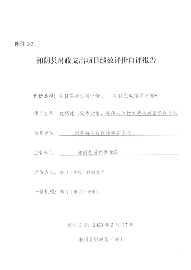 湘阴县医疗保障局-2022年度-绩效评价自评报告