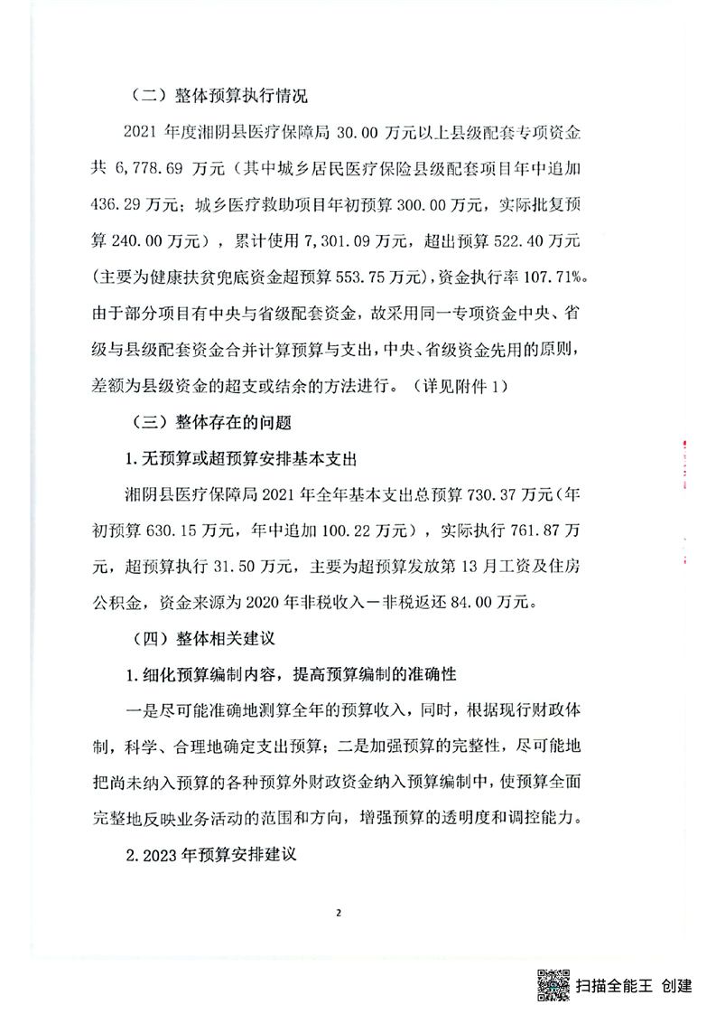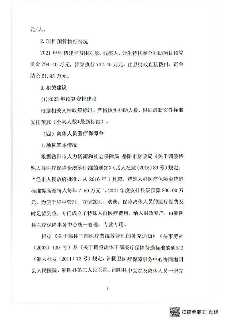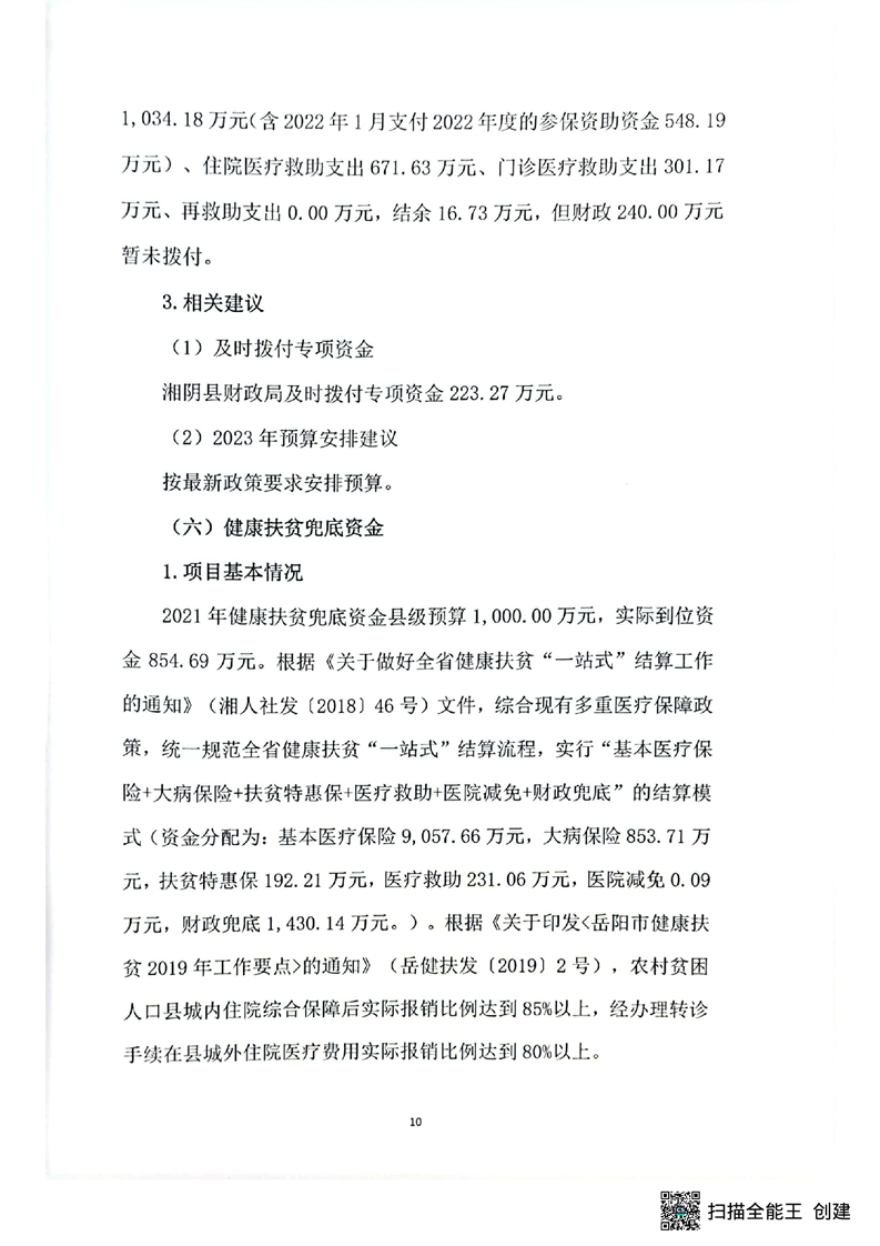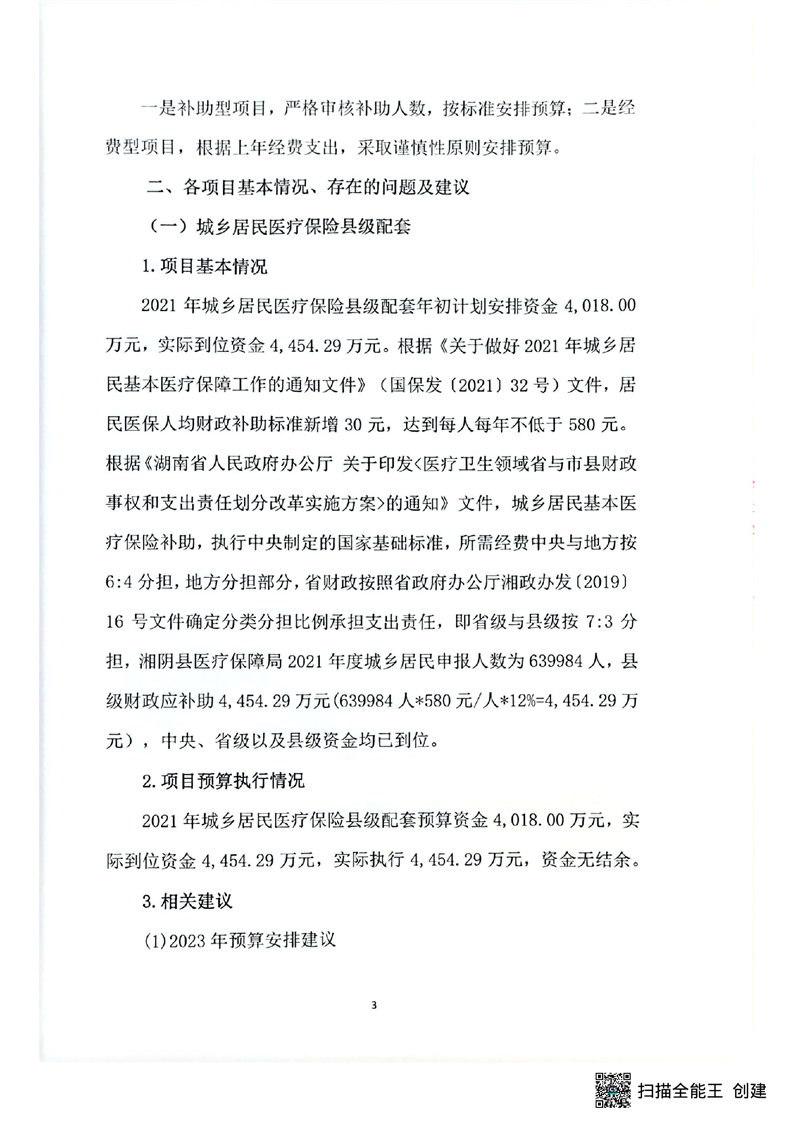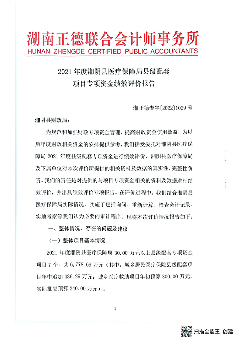 2021年度湘阴县医疗保障局县级配套项目专项资金绩效评价报告