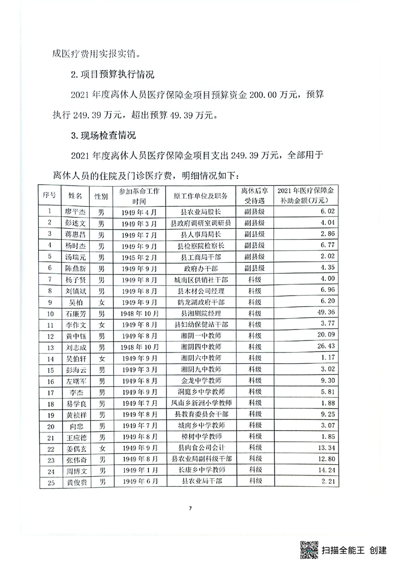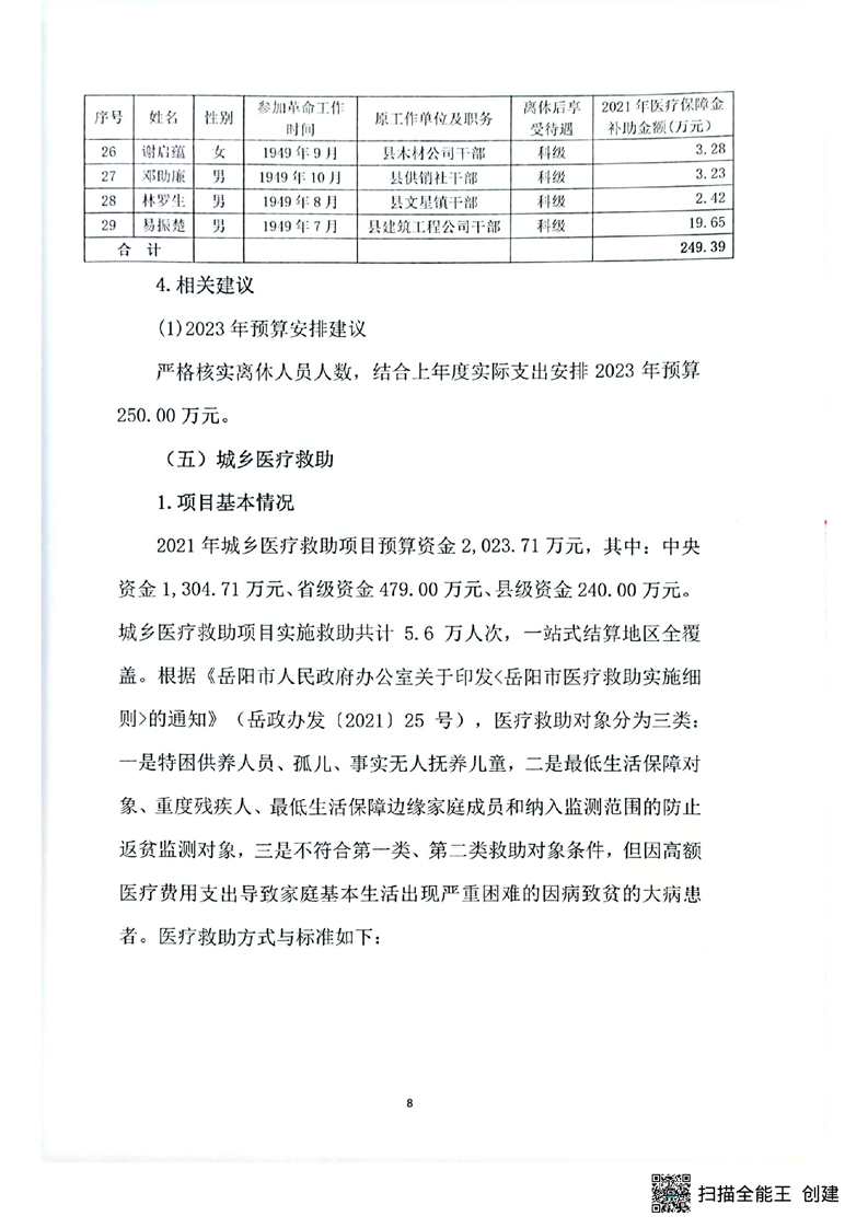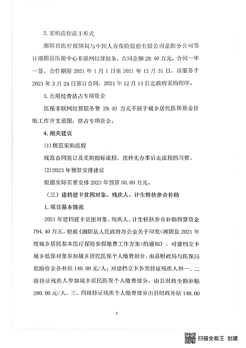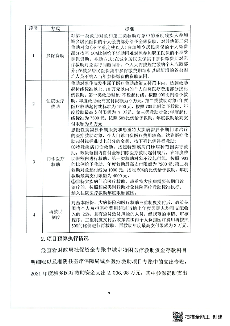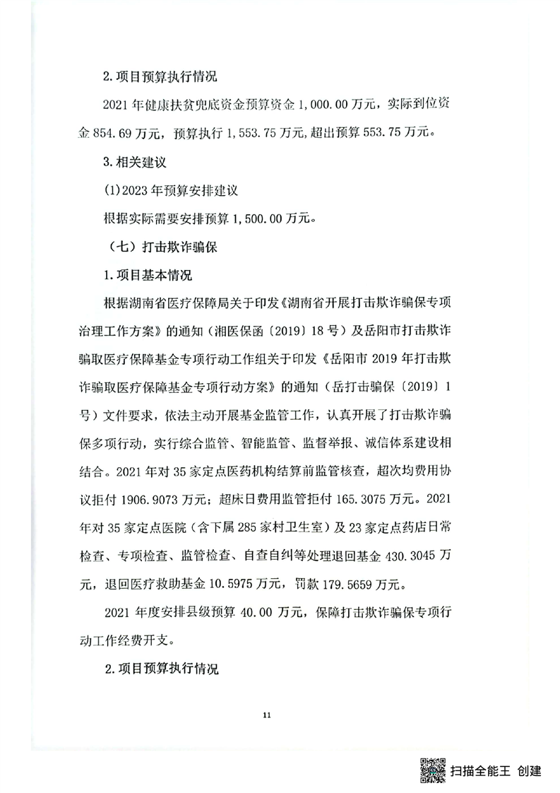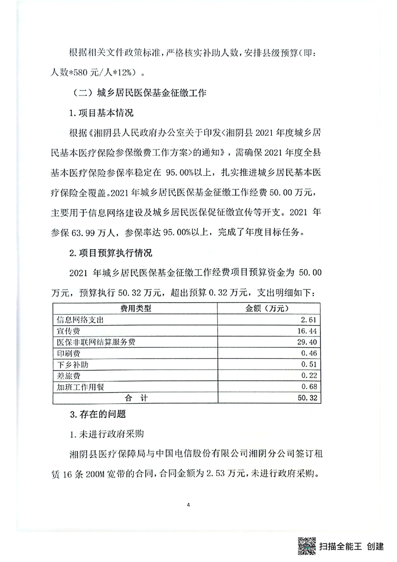2021年度湘阴县医疗保障局县级配套项目专项资金绩效评价报告