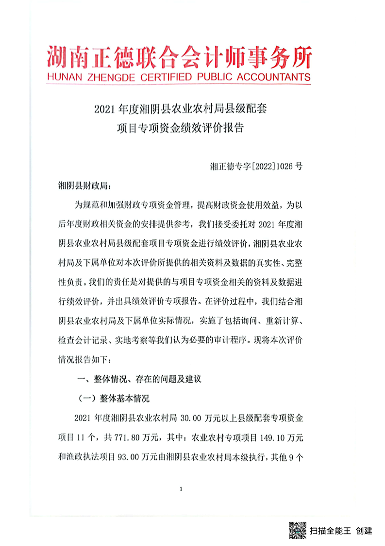 2021年度湘阴县农业农村局县级配套项目专项资金绩效评价报告