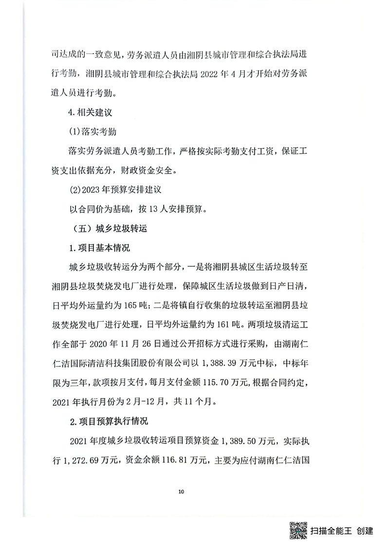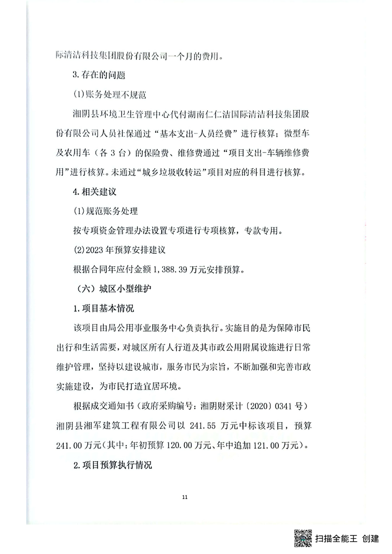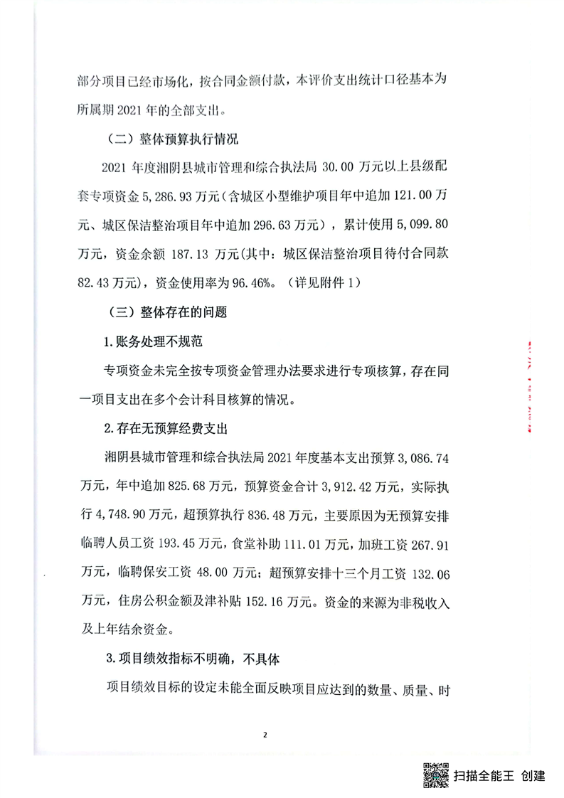 2021年度湘阴县城市管理和综合执法局县级配套项目专项资金绩效评价报告