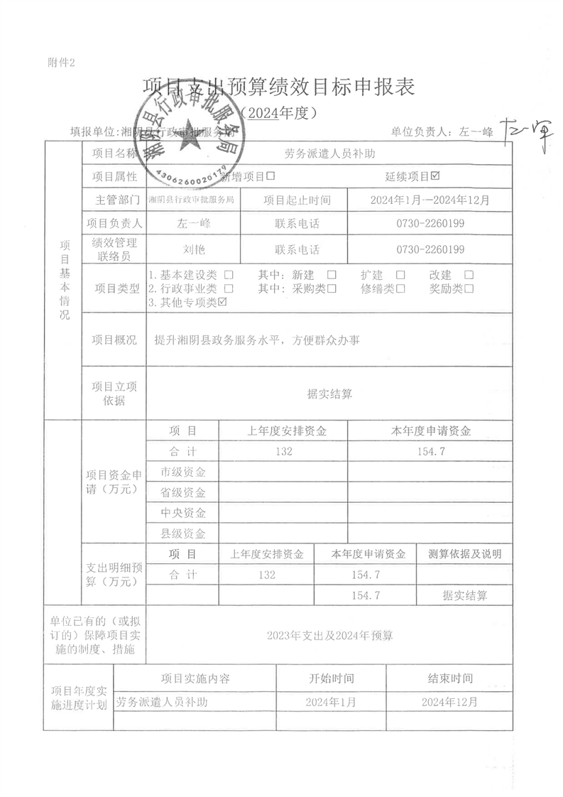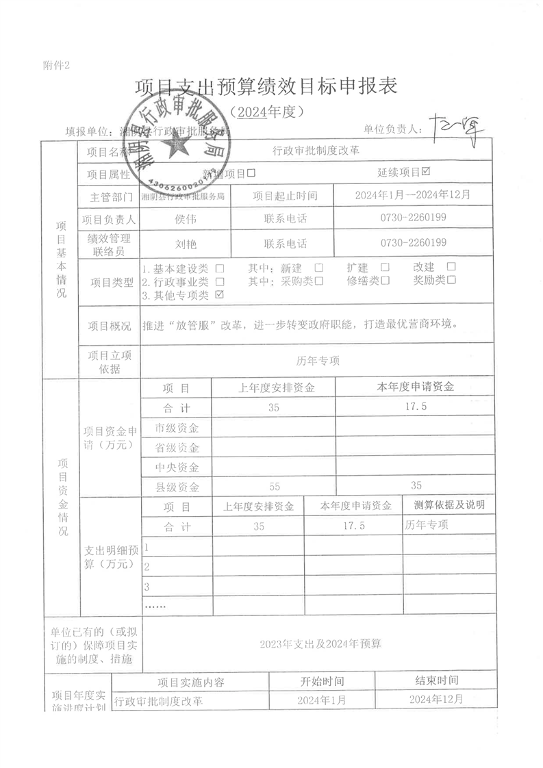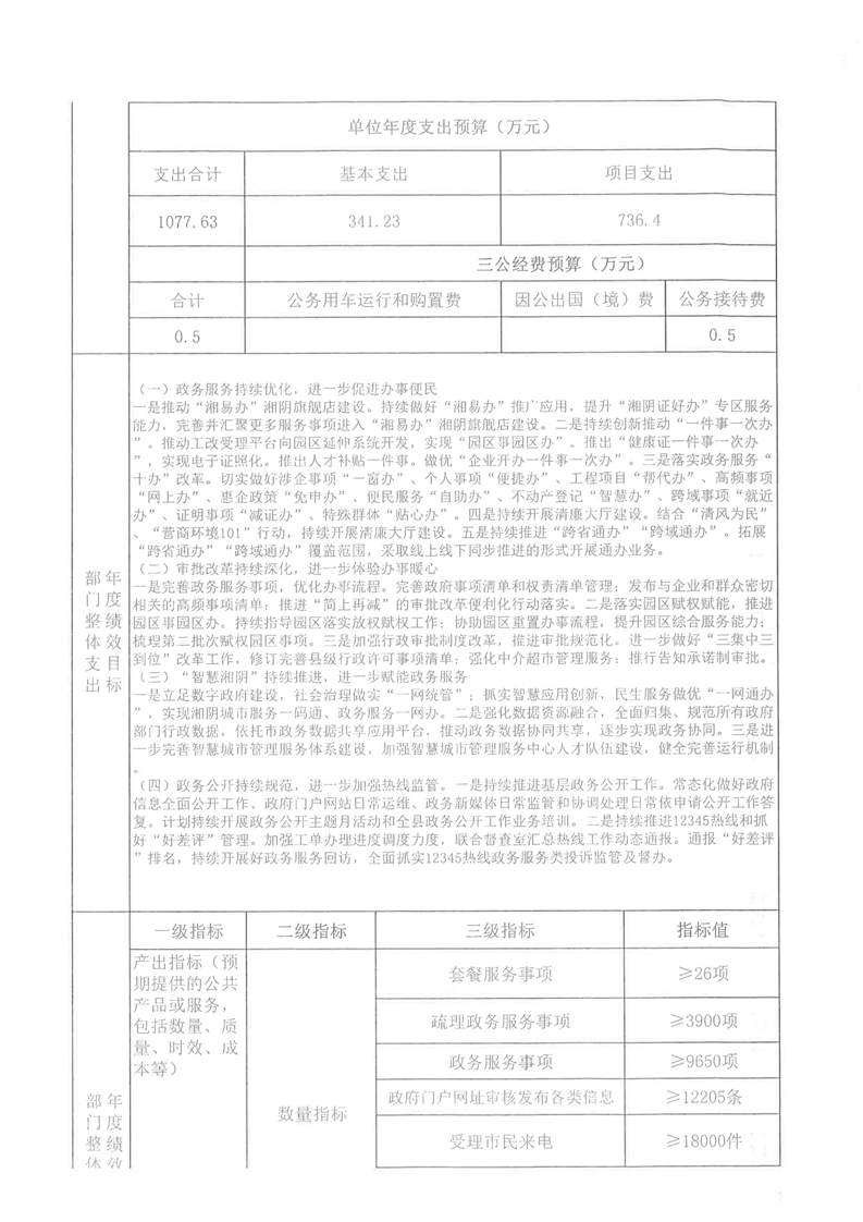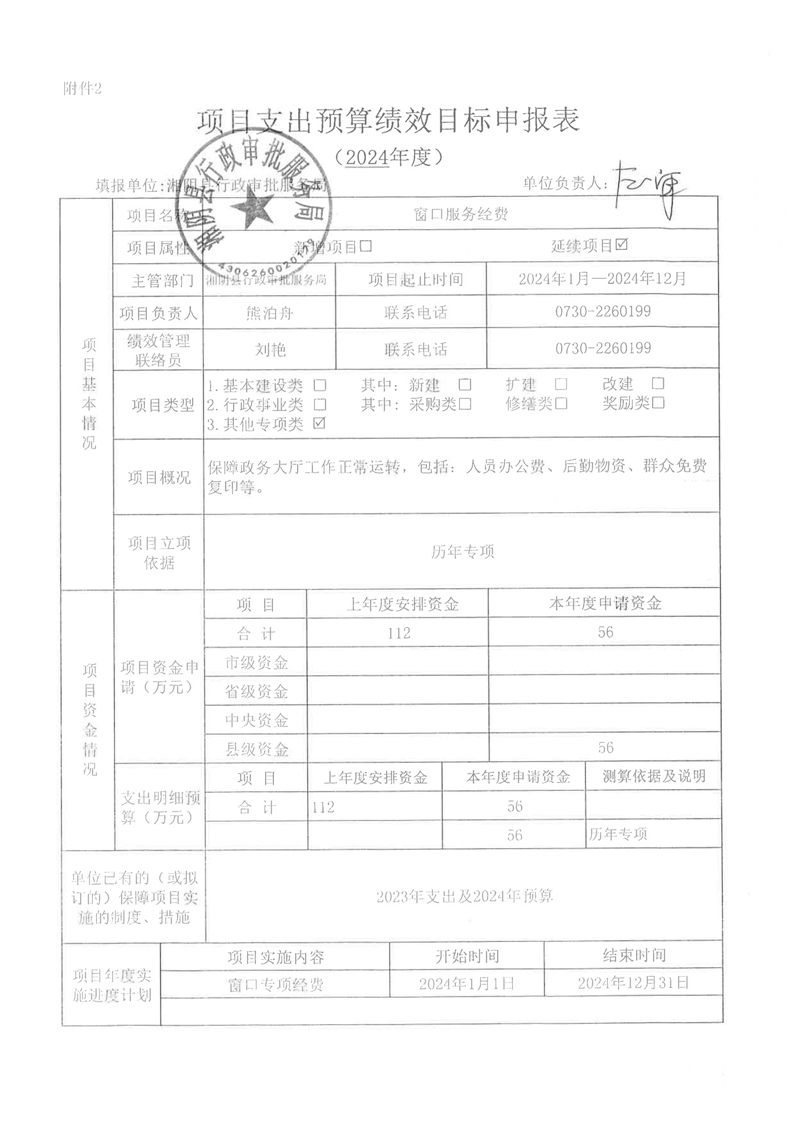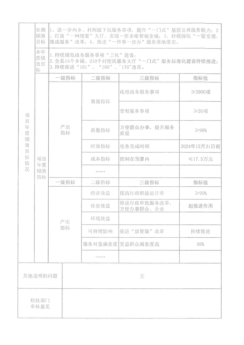 2024年-湘阴县行政审批服务局-项目支出预算绩效目标公开