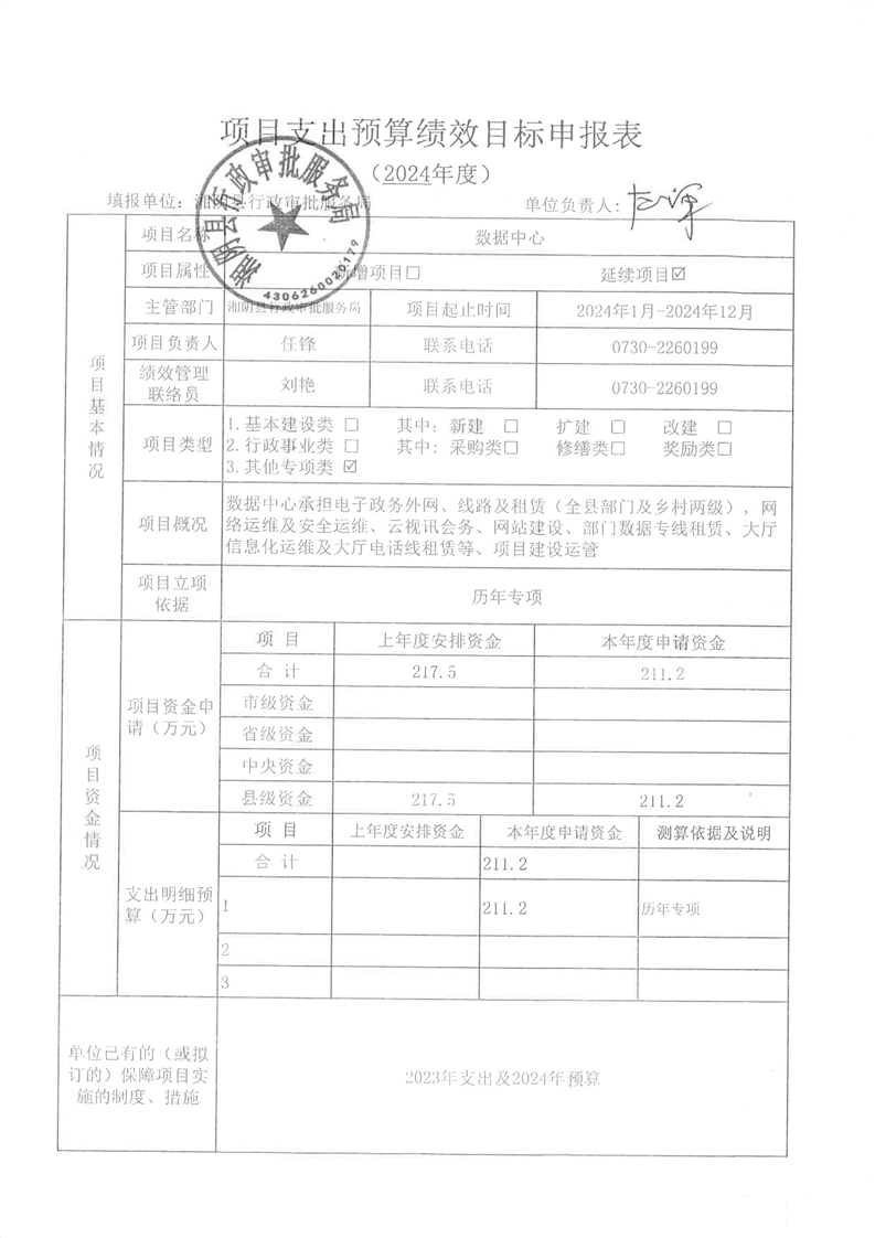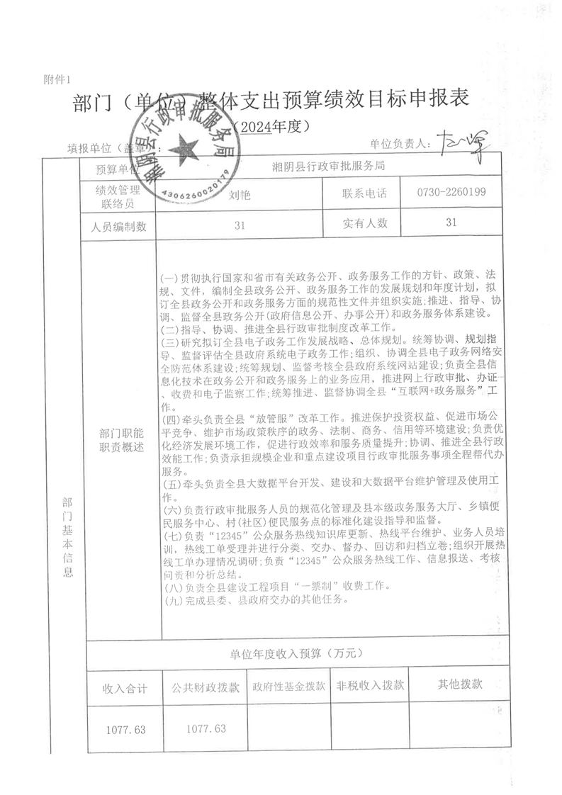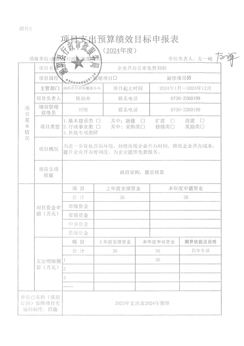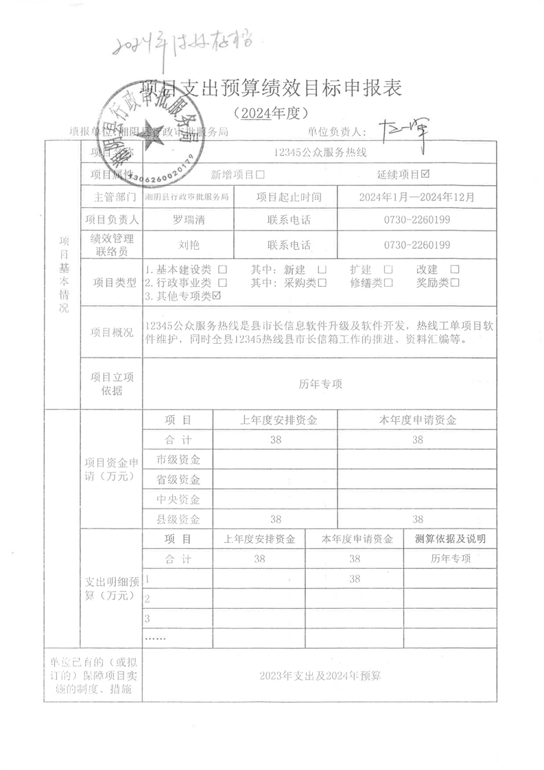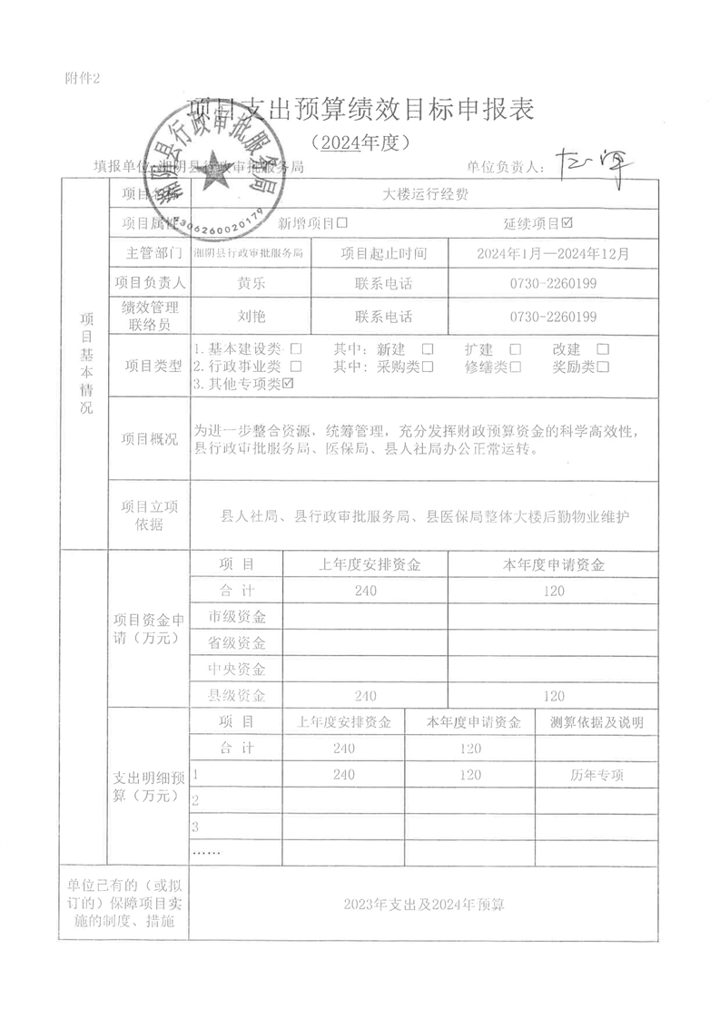 2024年-湘阴县行政审批服务局-项目支出预算绩效目标公开