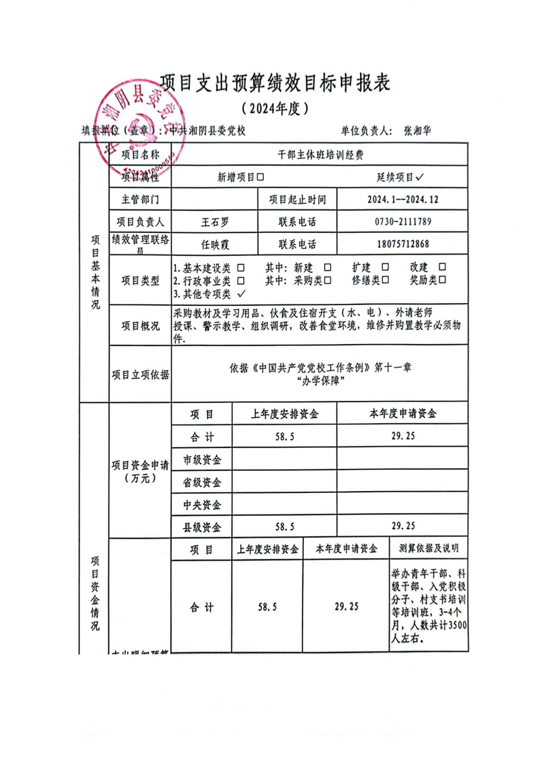 2024年-中共湘阴县委党校-预算绩效公开