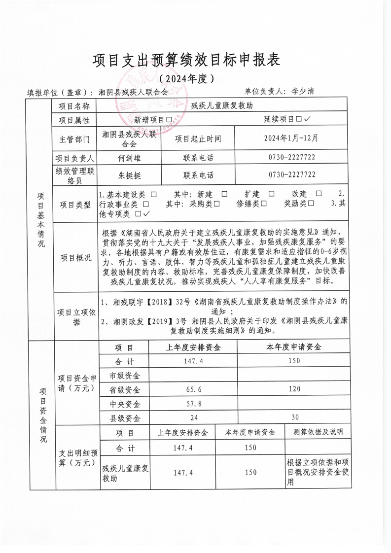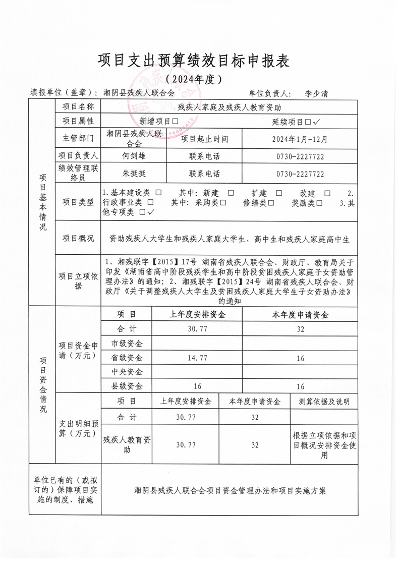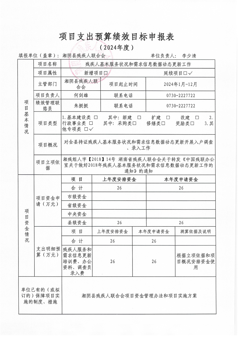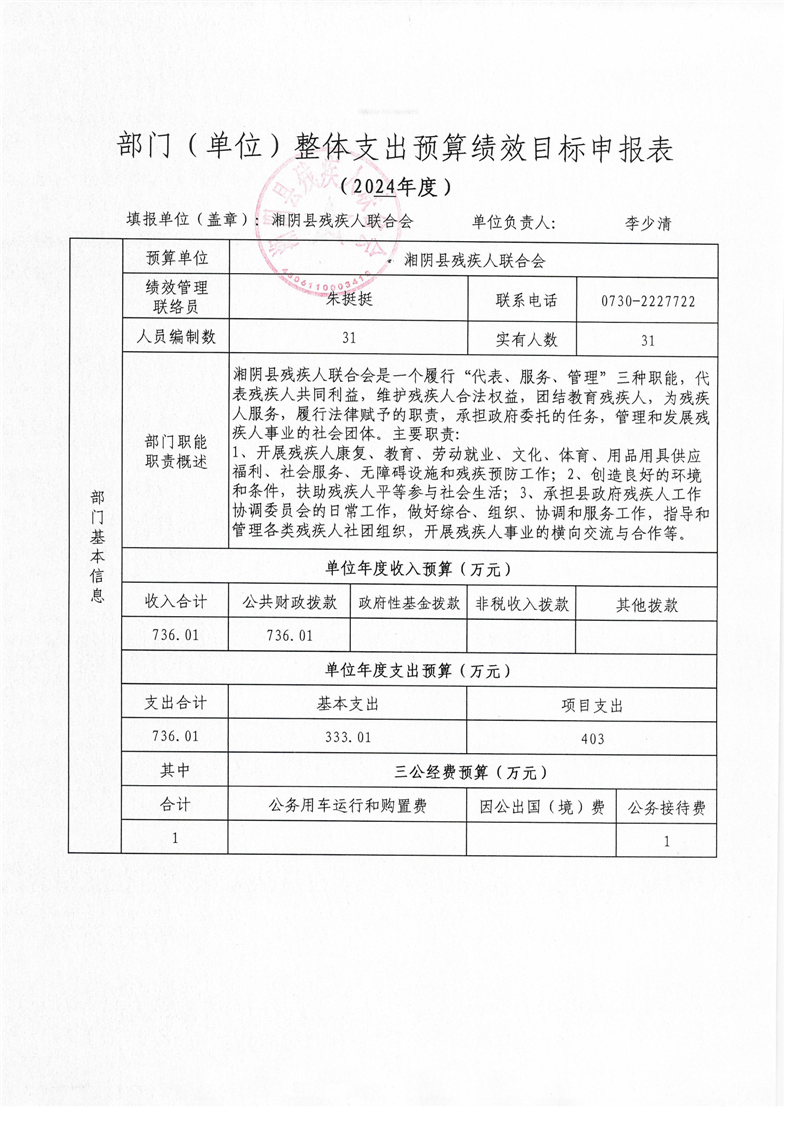 2024年-湘阴县残疾人联合会-预算绩效公开