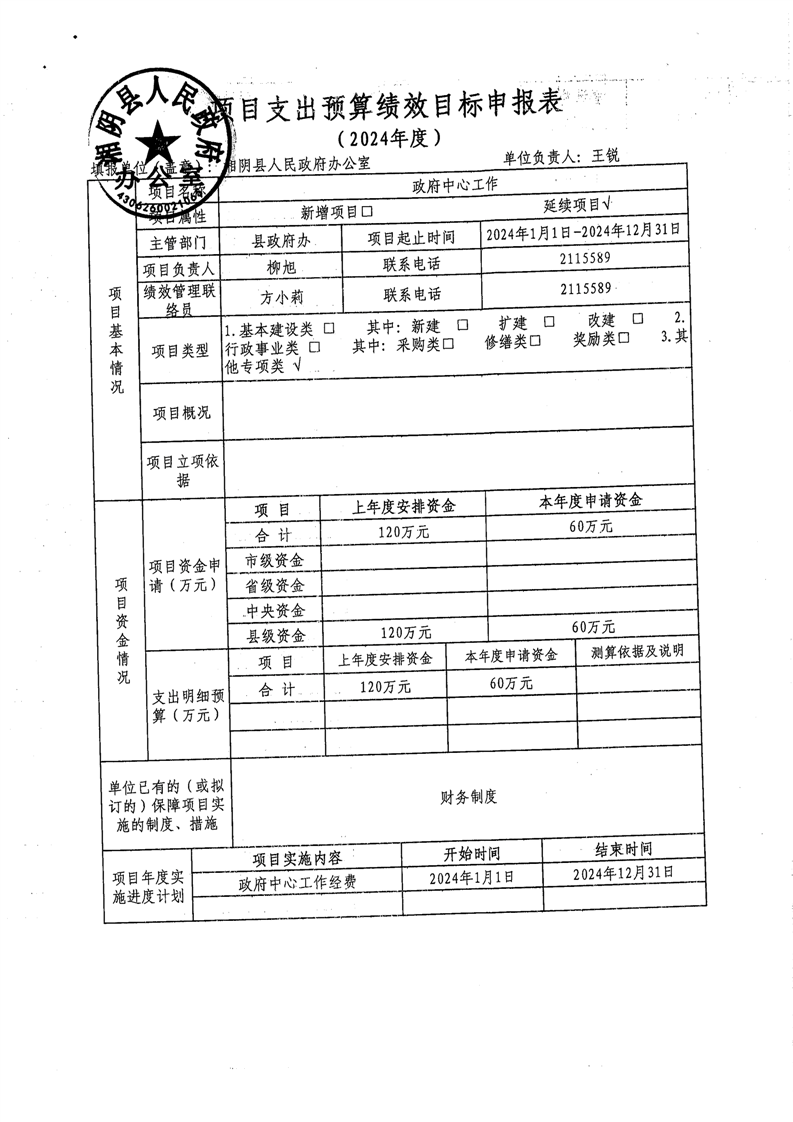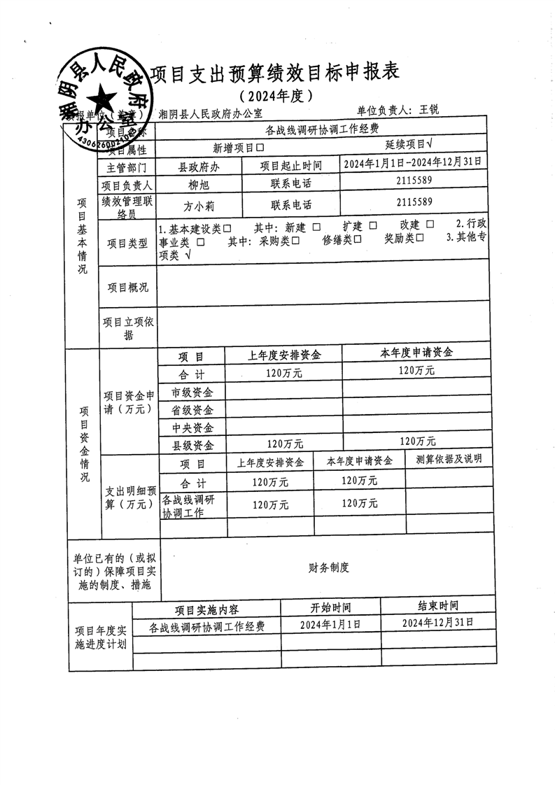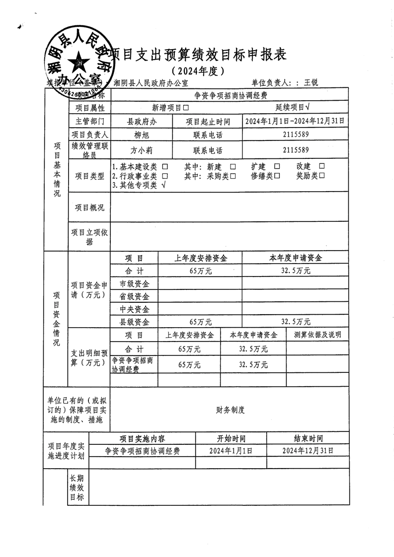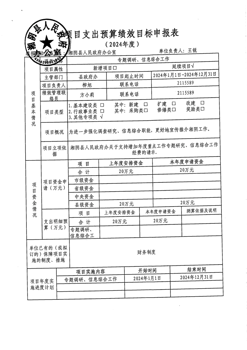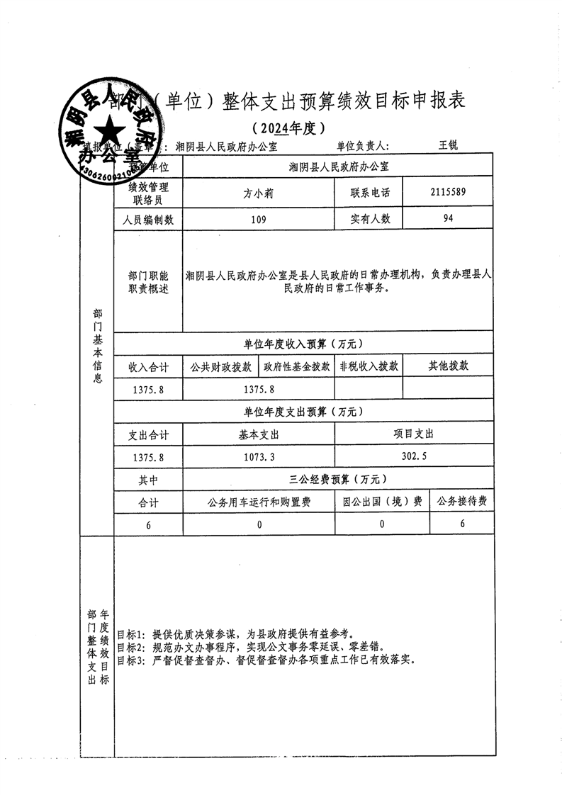 2024年-湘阴县人民政府办公室-绩效目标公开