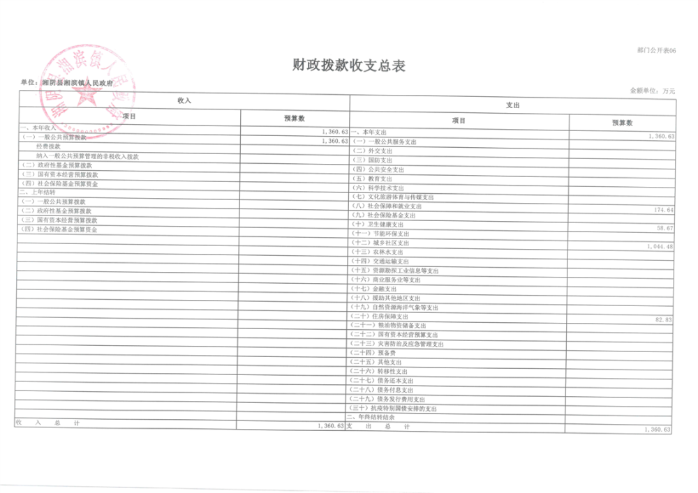 湘阴县湘滨镇人民政府-2024年度-部门预算