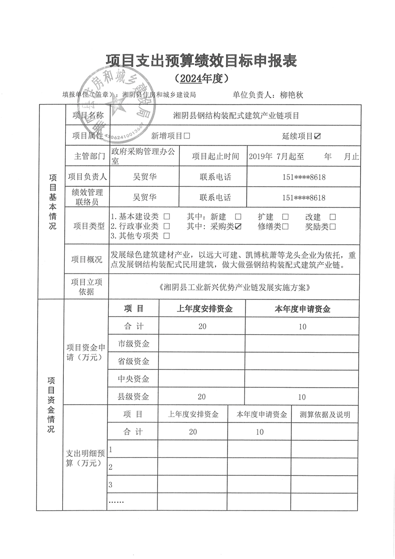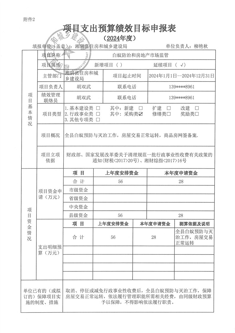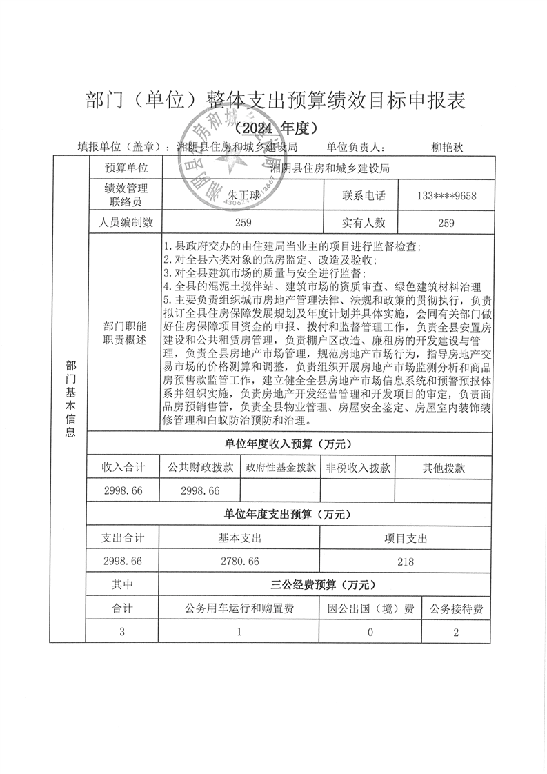 2024年-湘阴县住房和城乡建设局-项目支出预算绩效目标公开