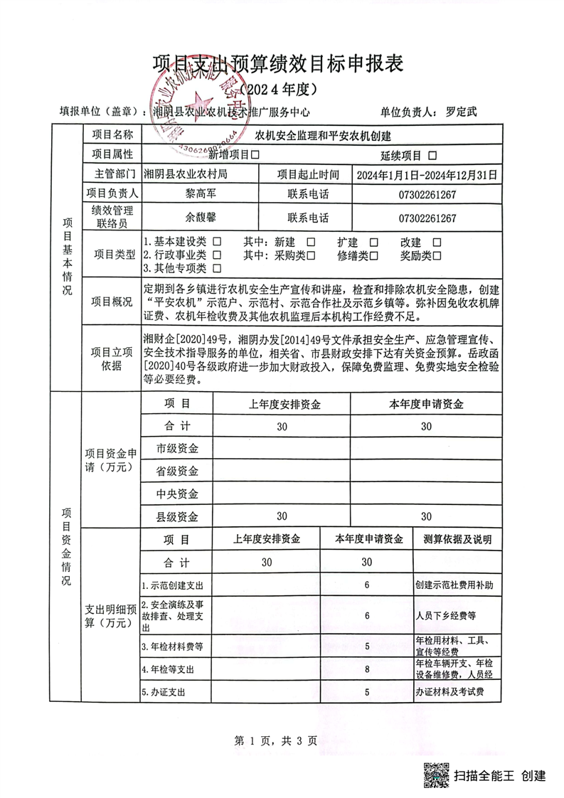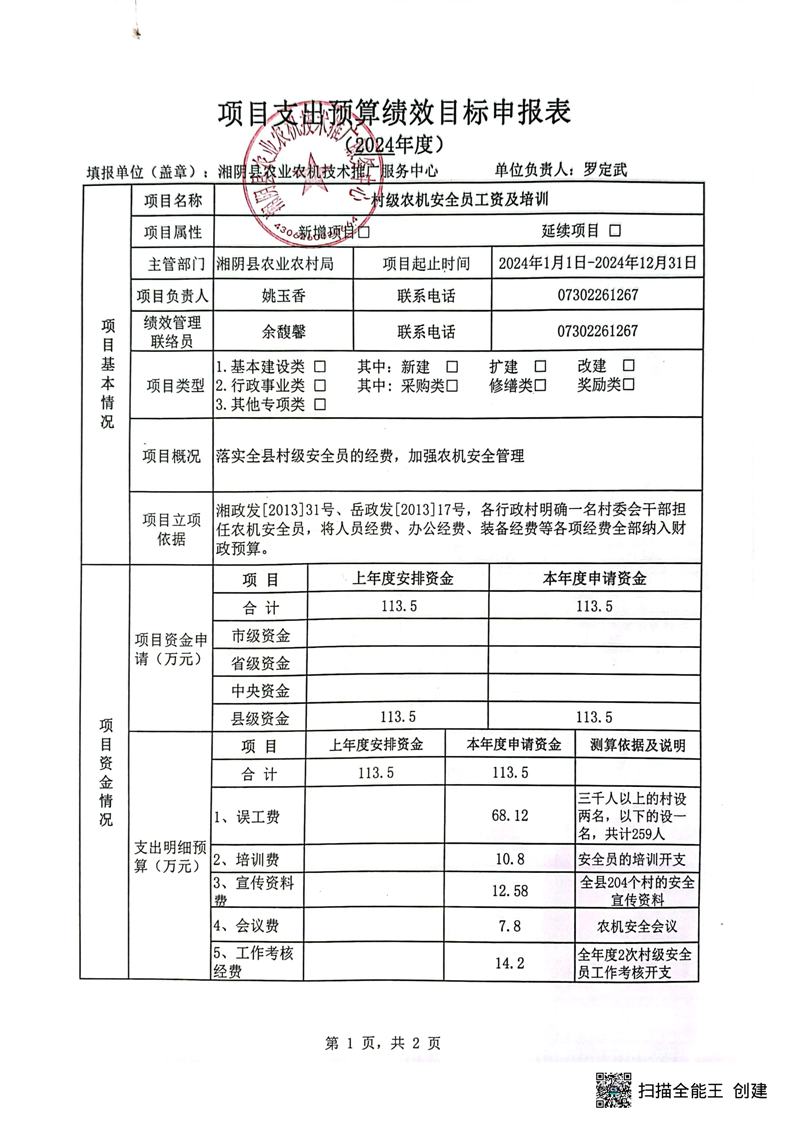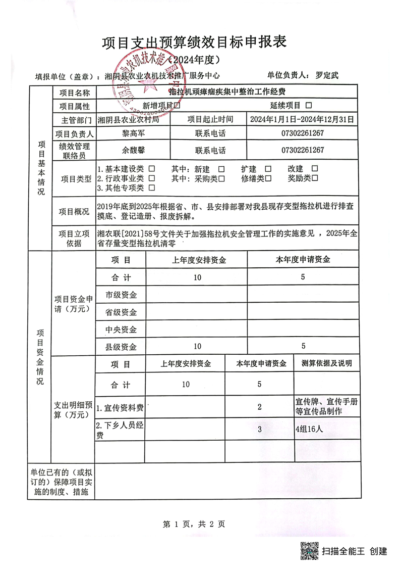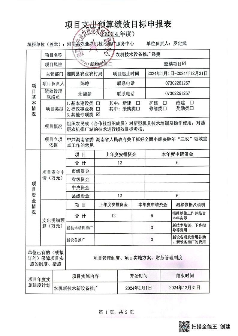2024年-湘阴县农业农机技术推广服务中心-预算绩效公开