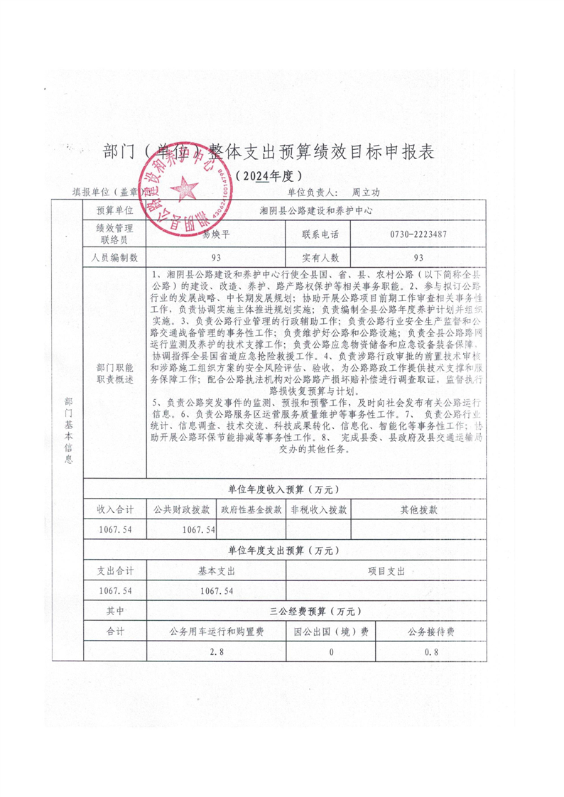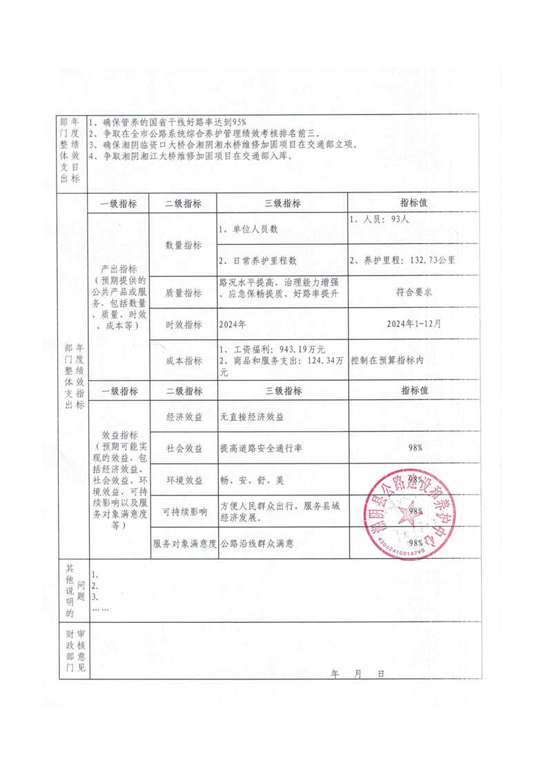2024年-湘阴县公路建设和养护中心-绩效预算公开
