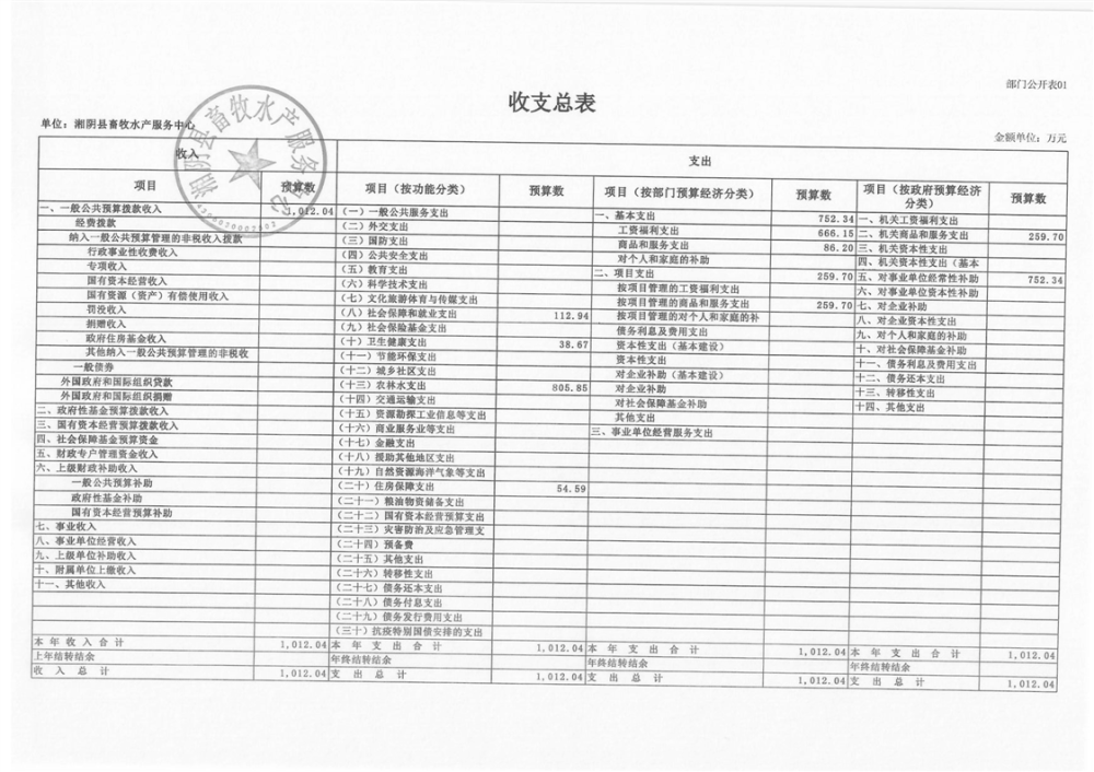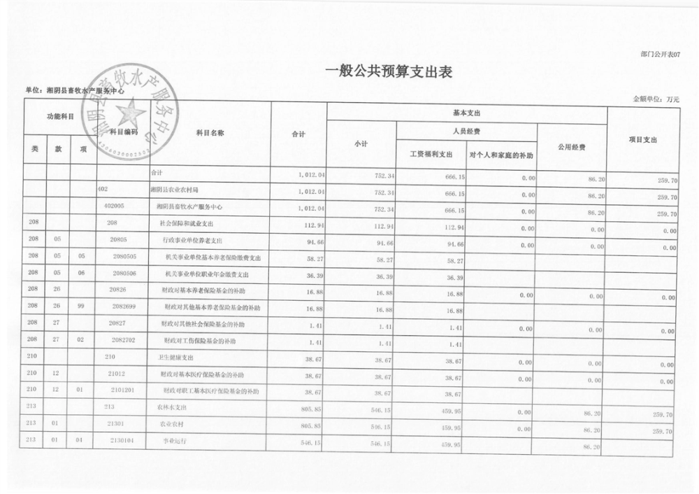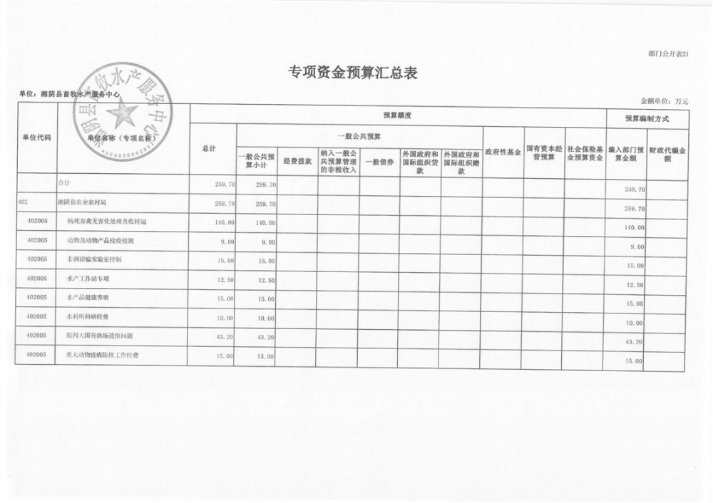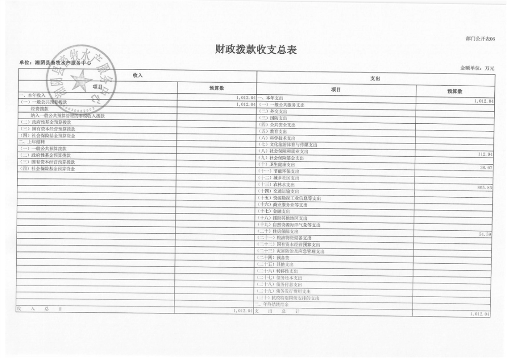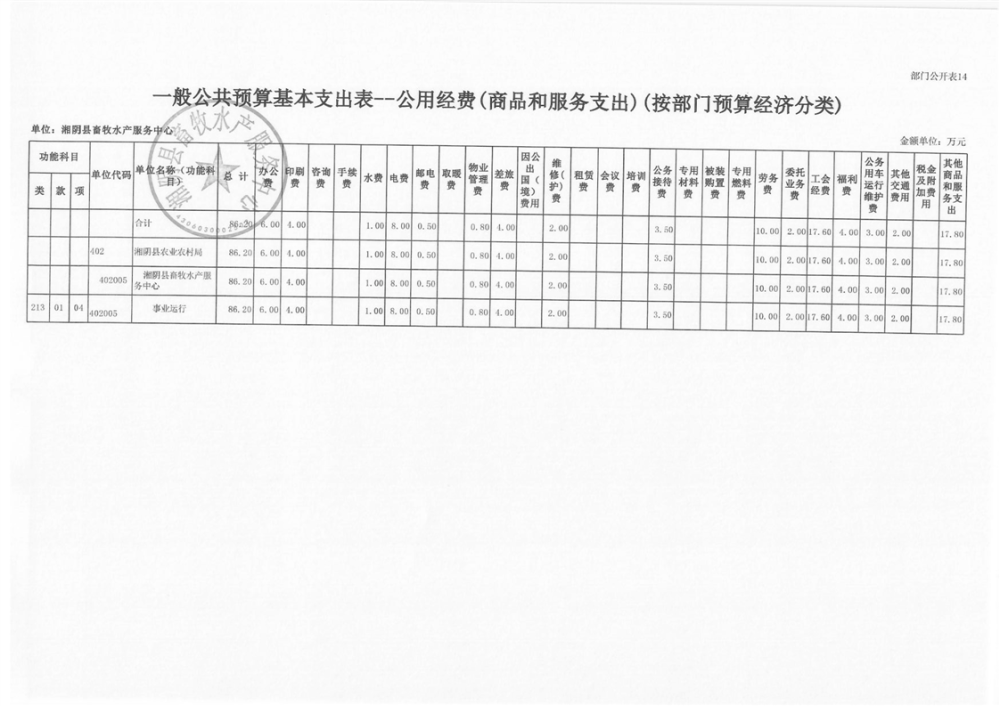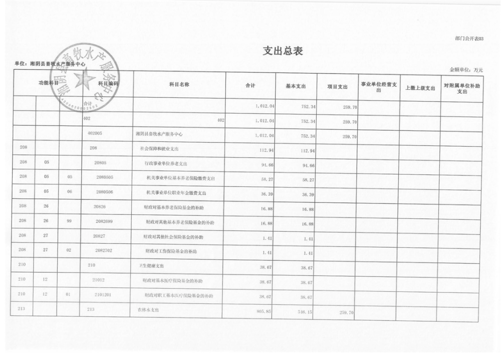 2024年-湘阴县畜牧水产服务中心-部门预算