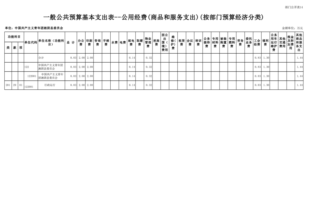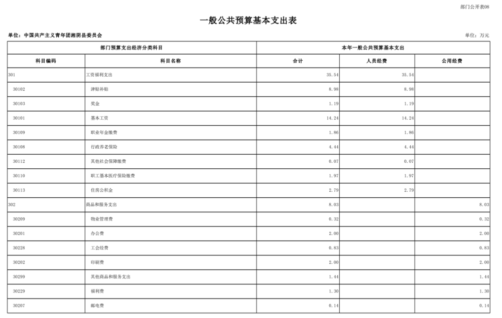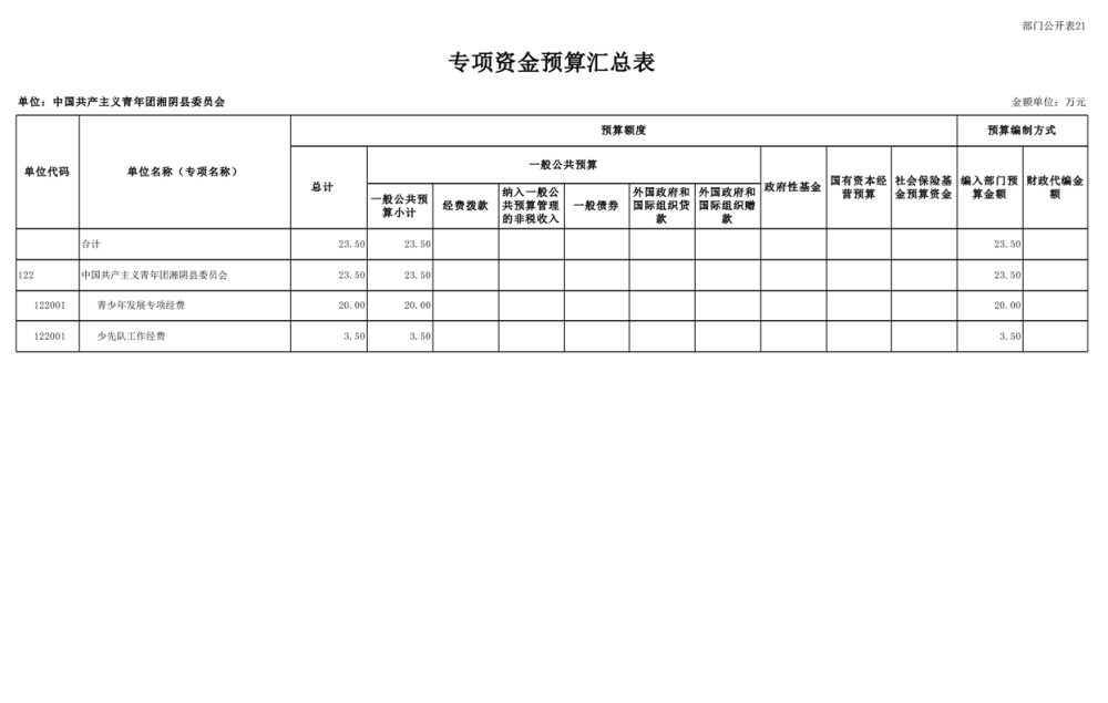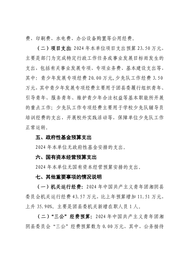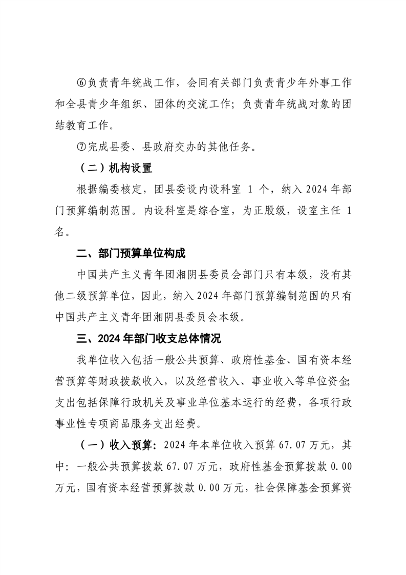 中国共产主义青年团湘阴县委员会-2024年度-部门预算