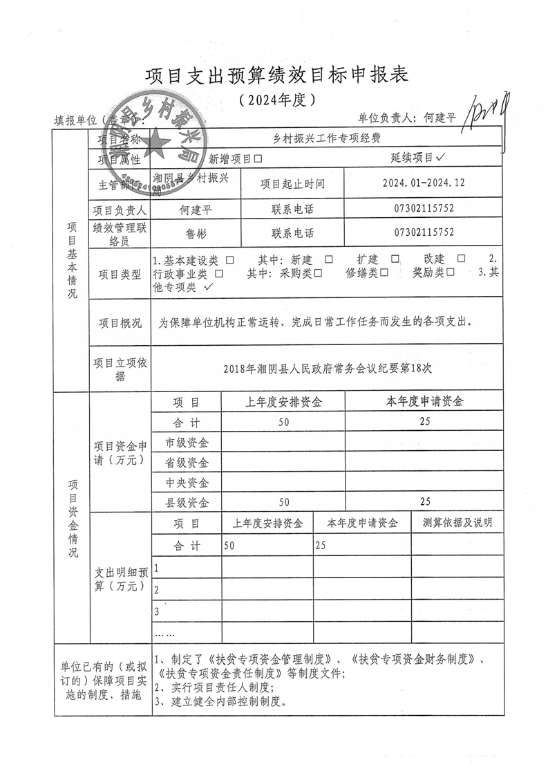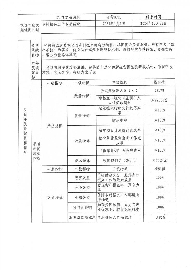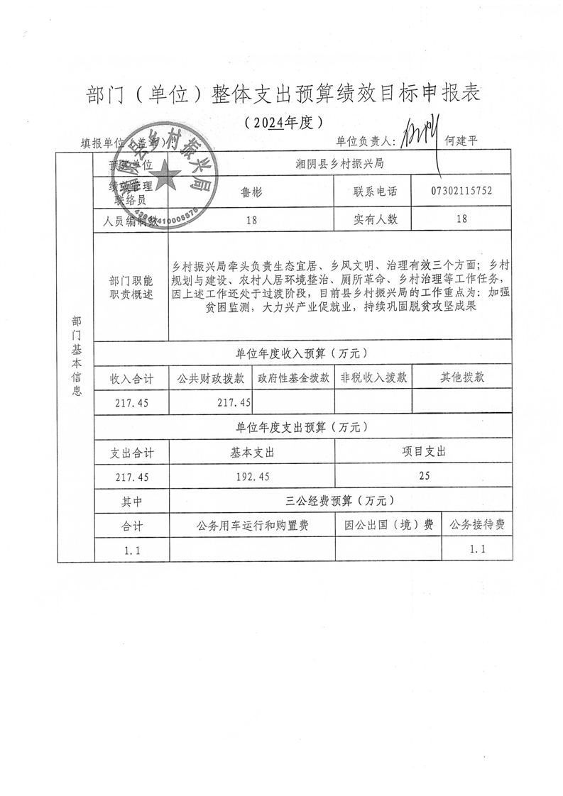 2024年-湘阴县乡村振兴局-整体支出预算绩效目标申报表