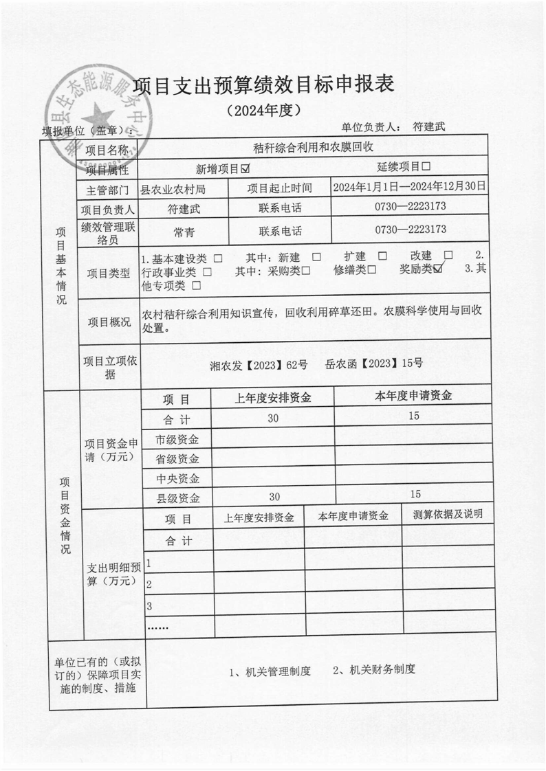 2024年度-湘阴县生态能源服务中心-预算绩效公开