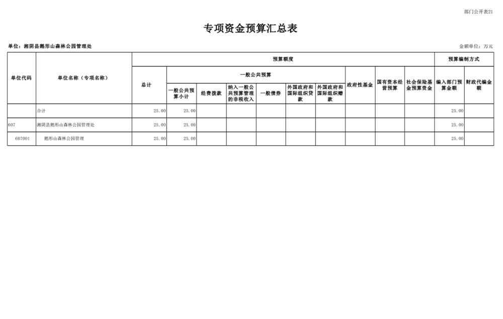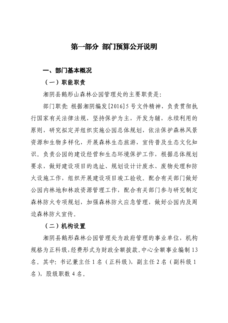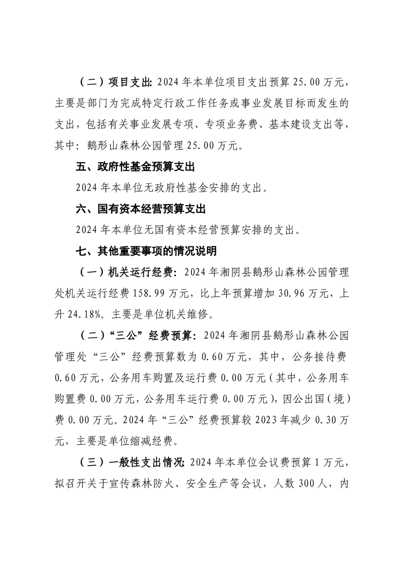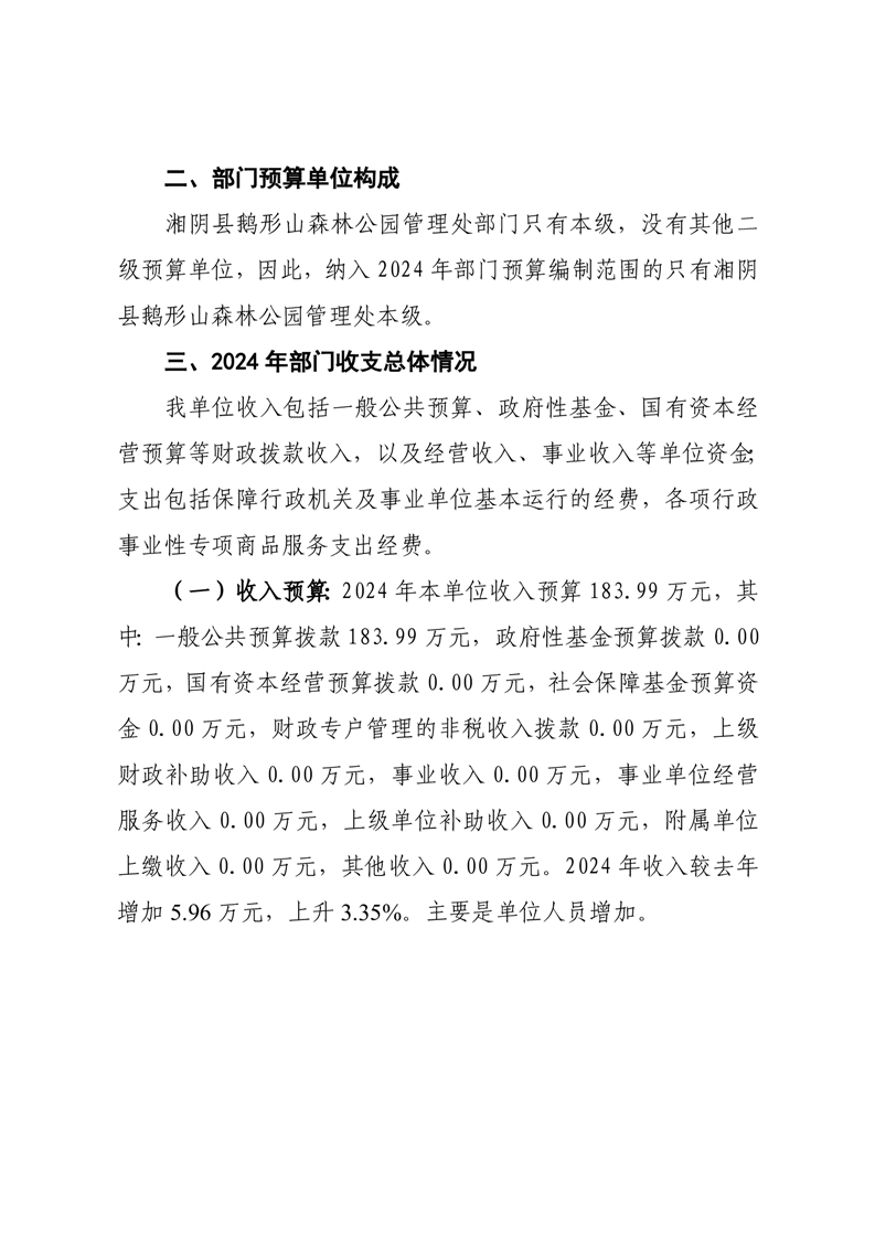 湘阴县鹅形山森林公园管理处-2024年度-部门预算