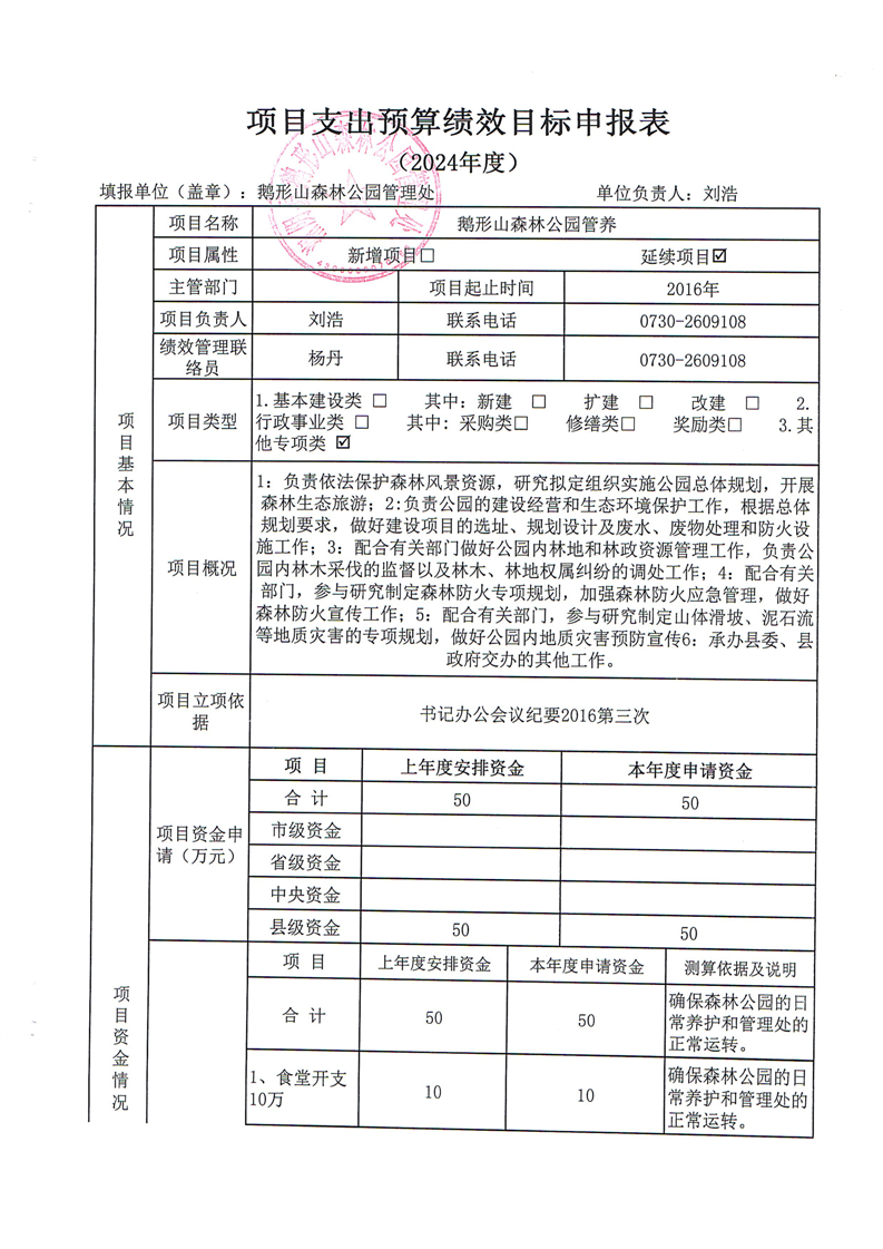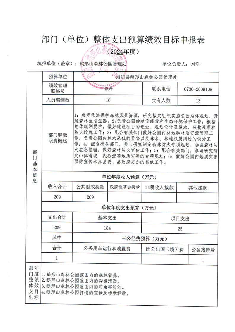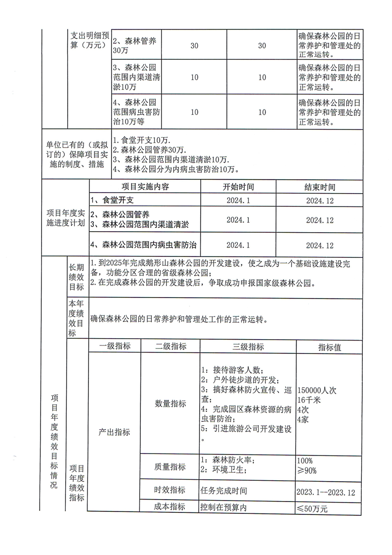 2024年-湘阴县鹅形山森林公园管理处-预算目标绩效公开