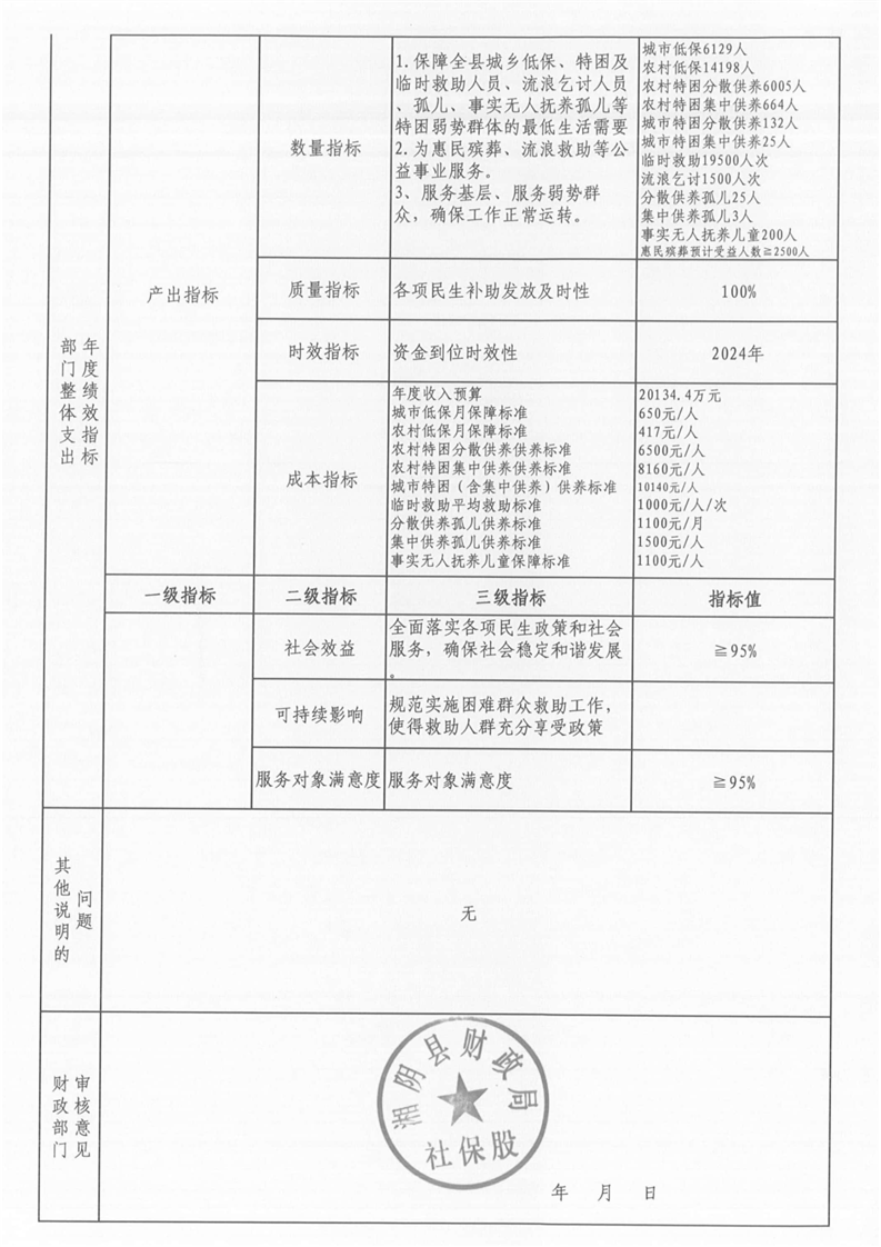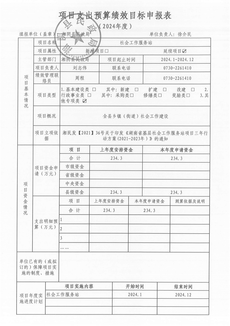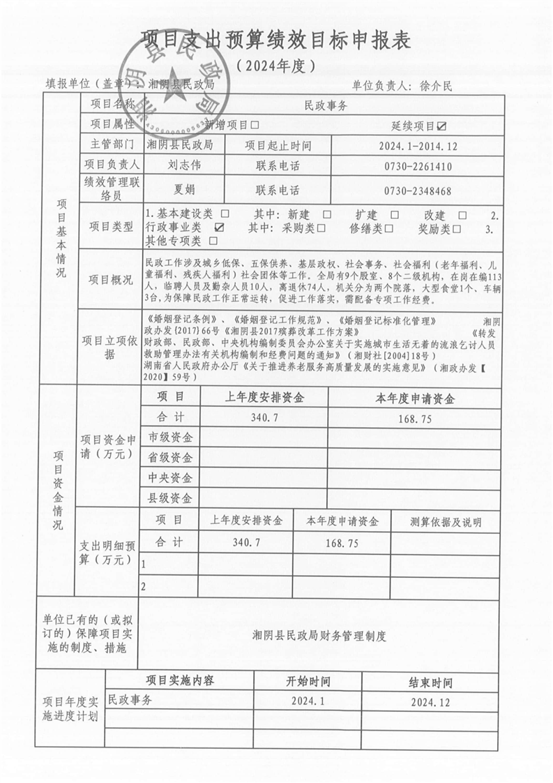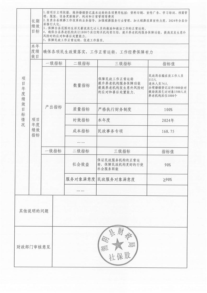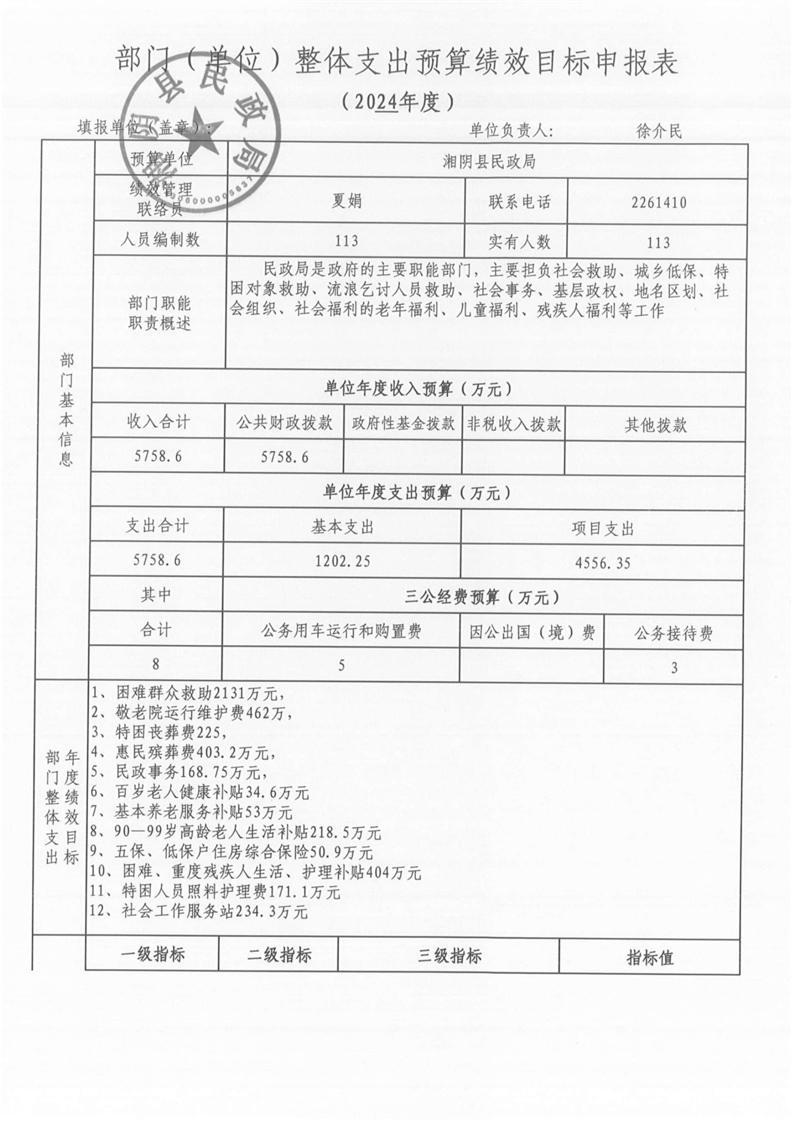 湘阴县民政局-2024年度-预算绩效公开