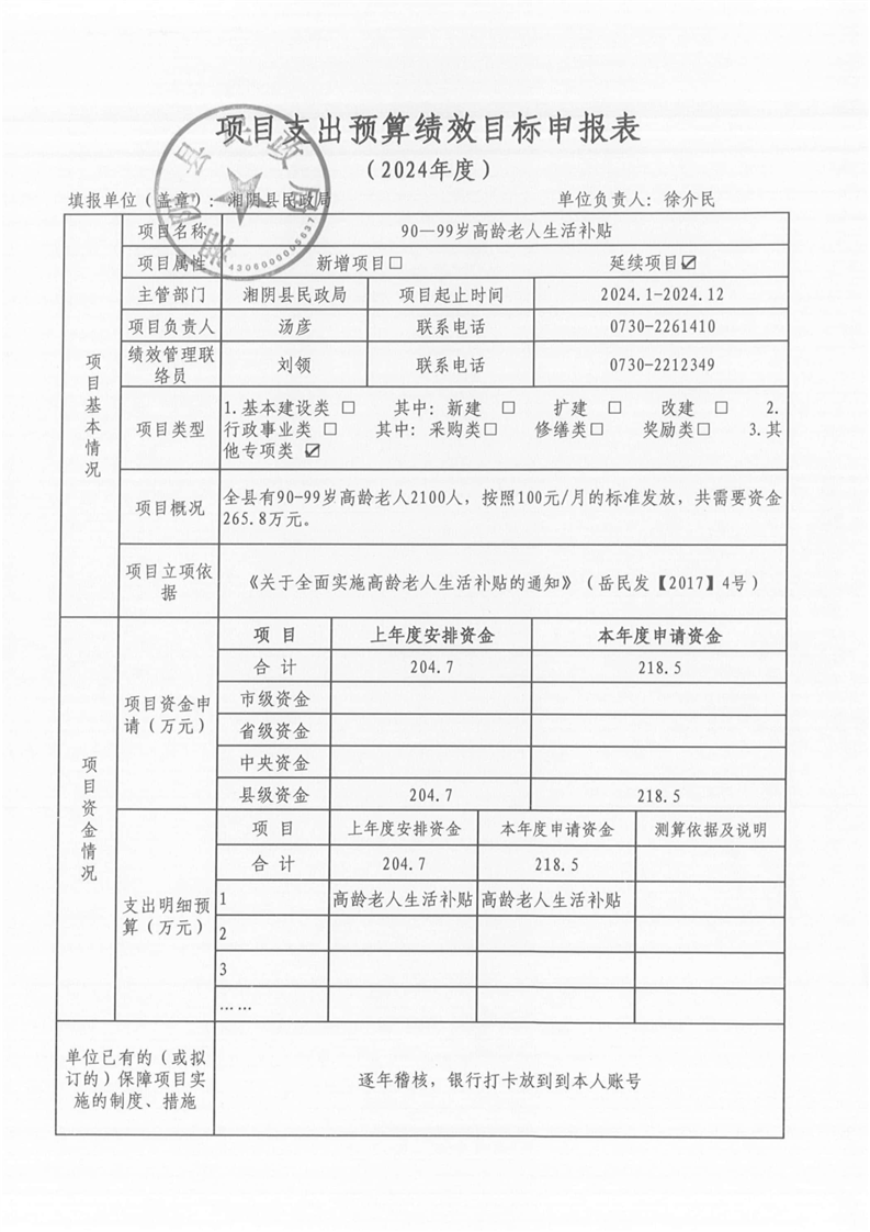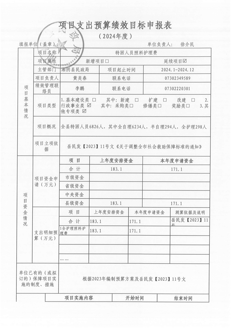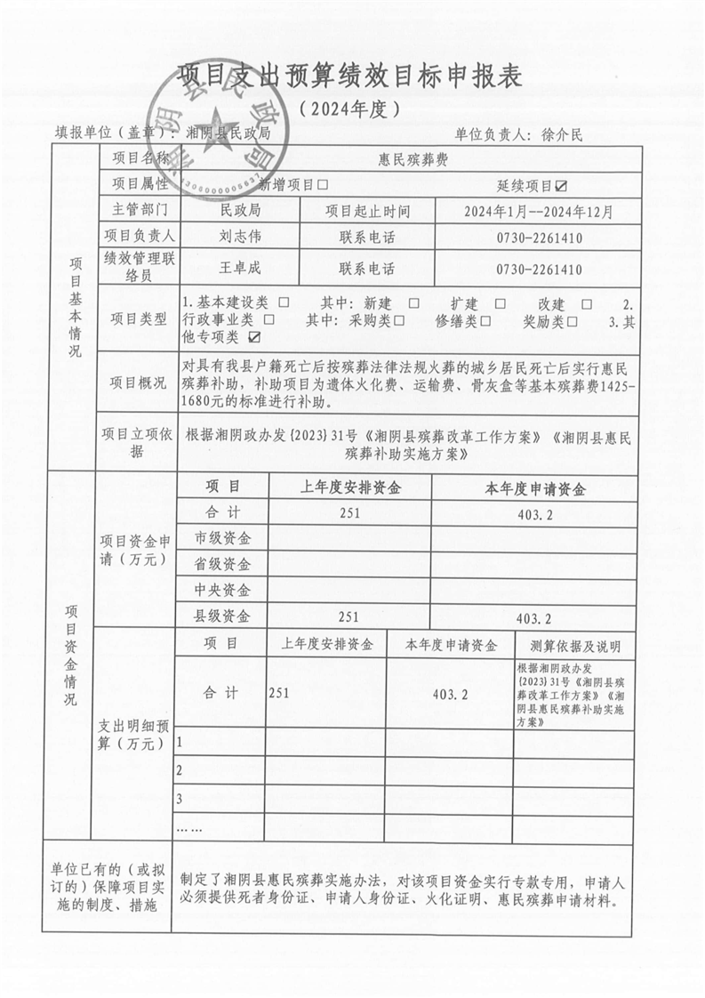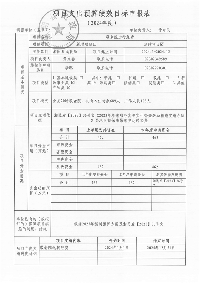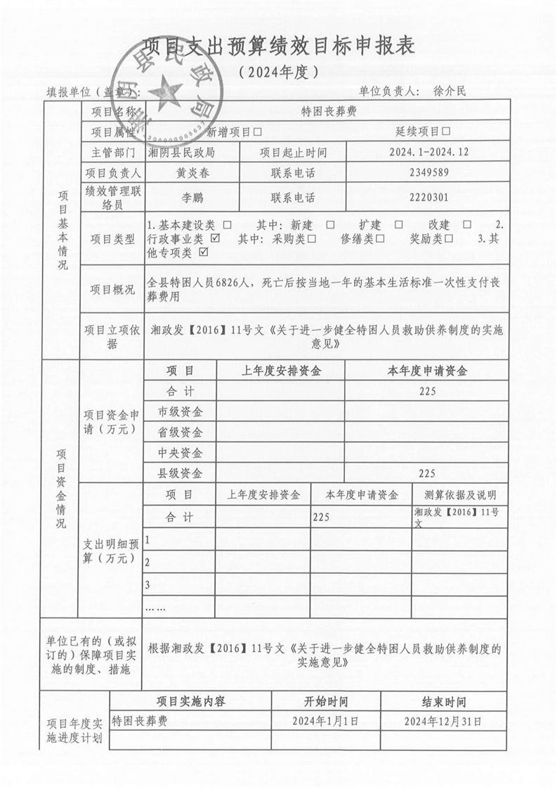 湘阴县民政局-2024年度-预算绩效公开