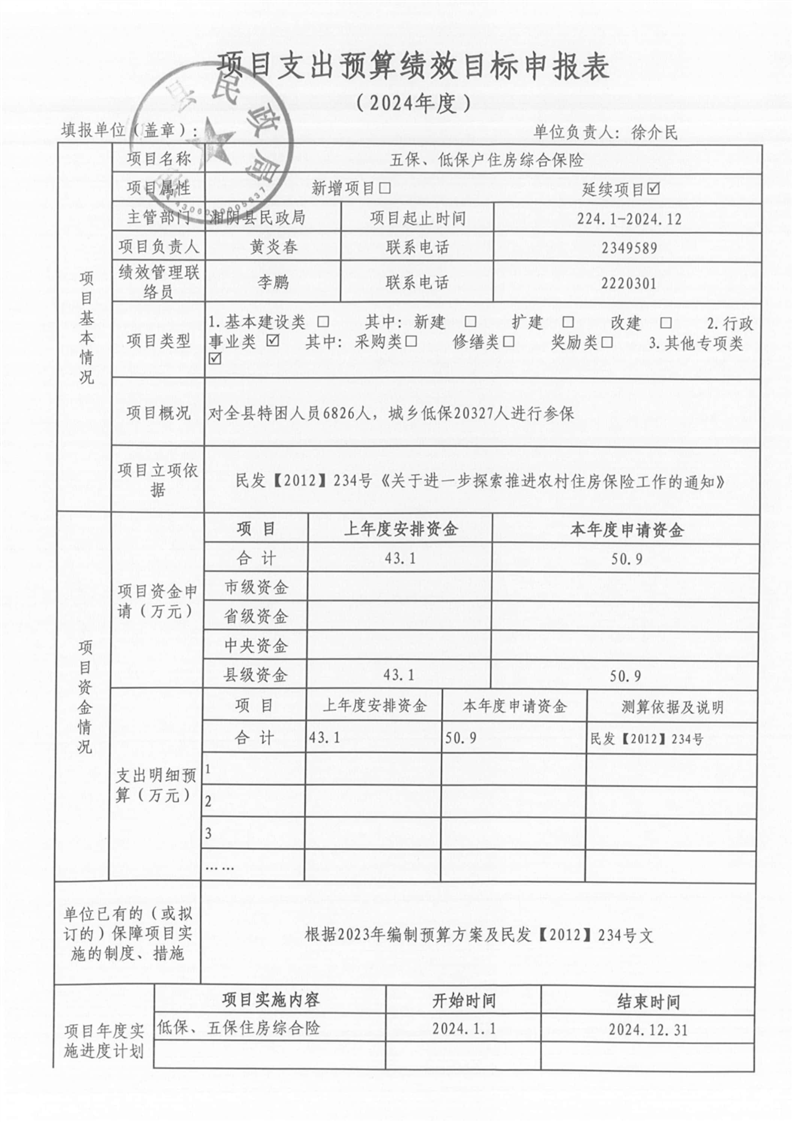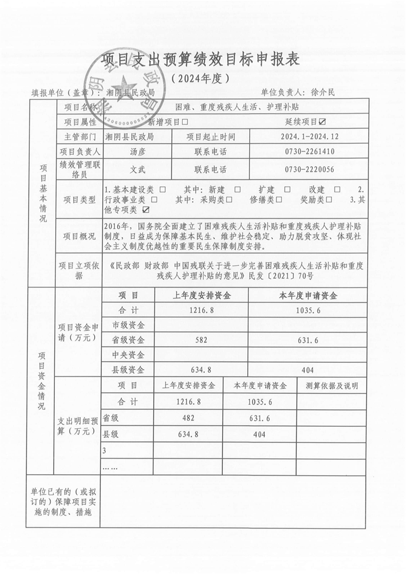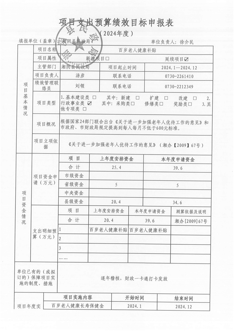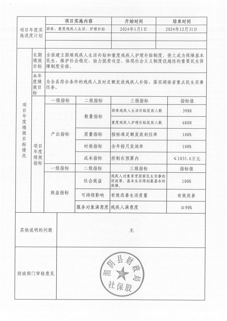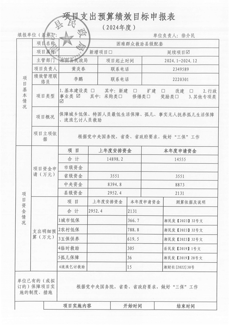 湘阴县民政局-2024年度-预算绩效公开