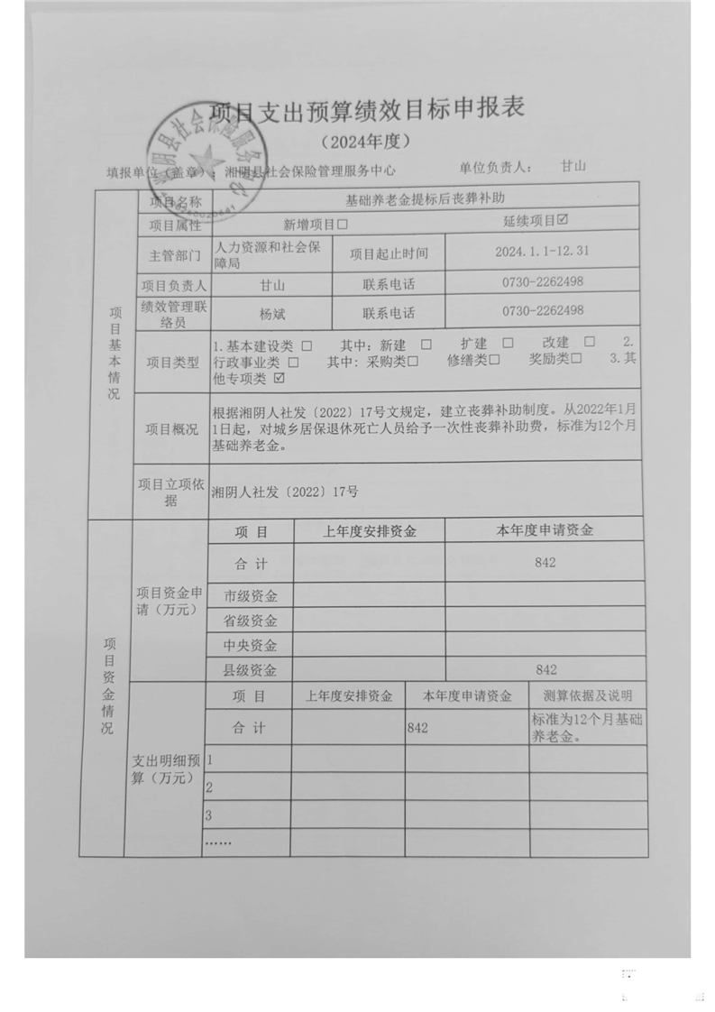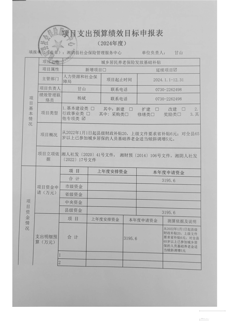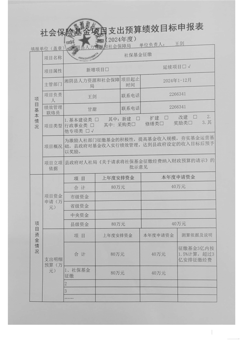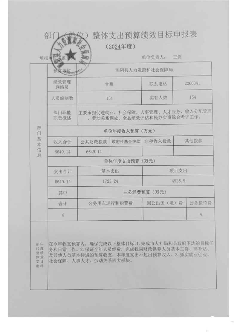 2024年-湘阴县人力资源和社会保障局-预算目标绩效公开