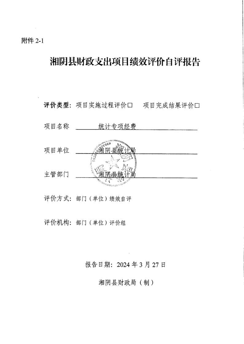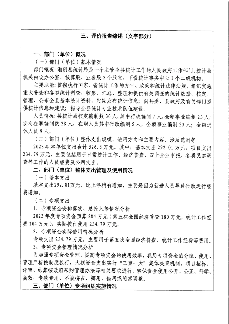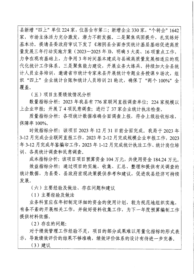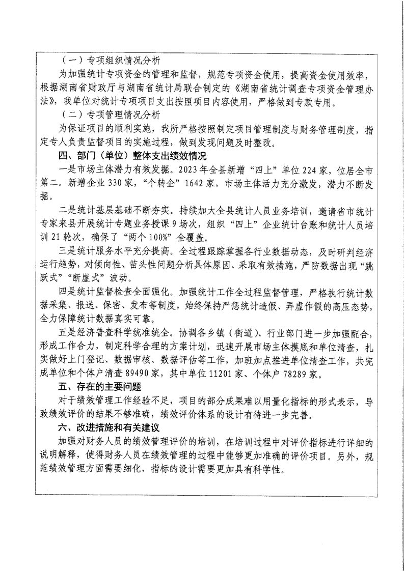 2023年-湘阴县统计局-财政预算资金绩效自评公开