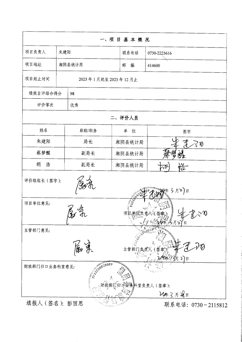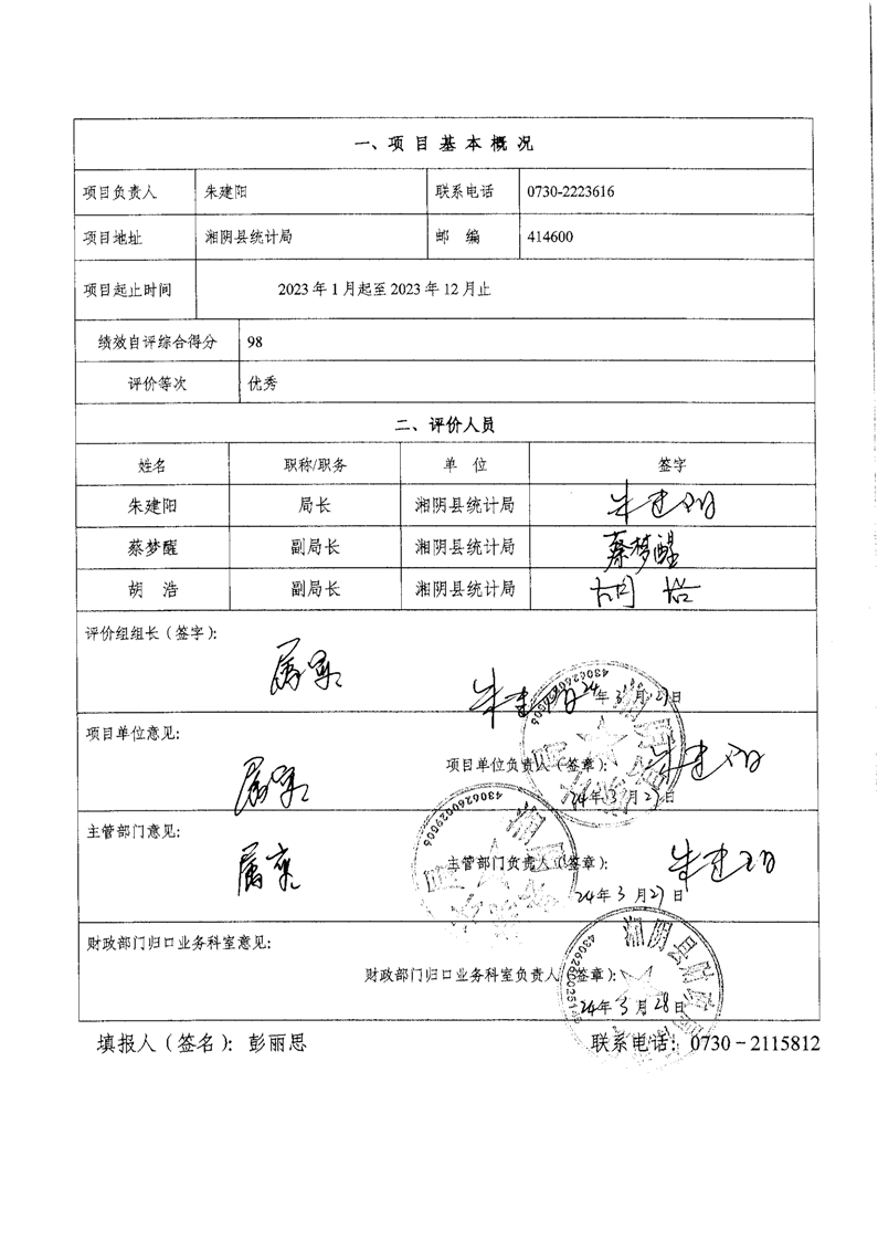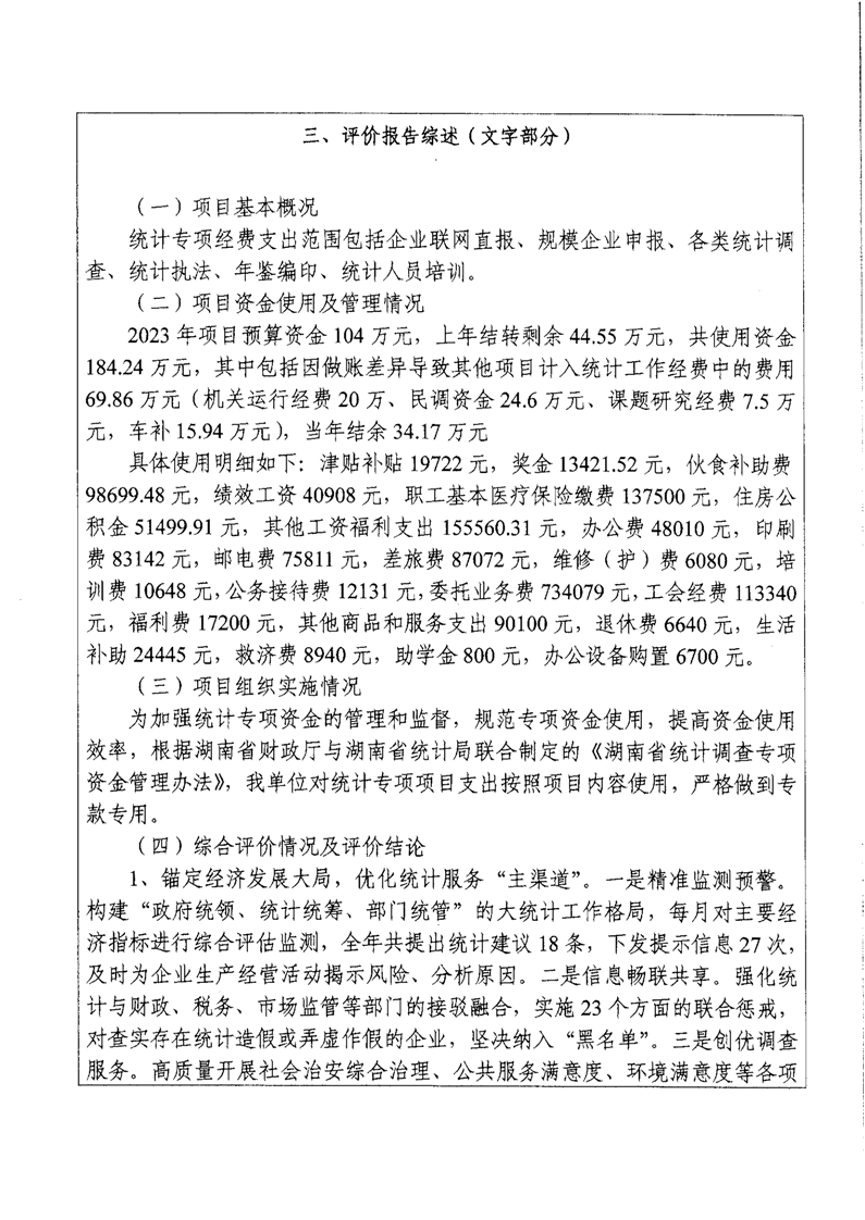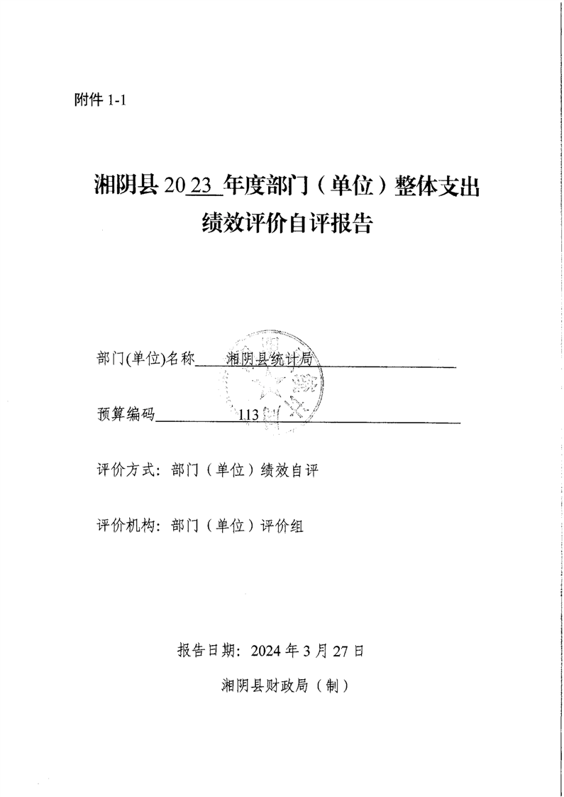 2023年-湘阴县统计局-财政预算资金绩效自评公开