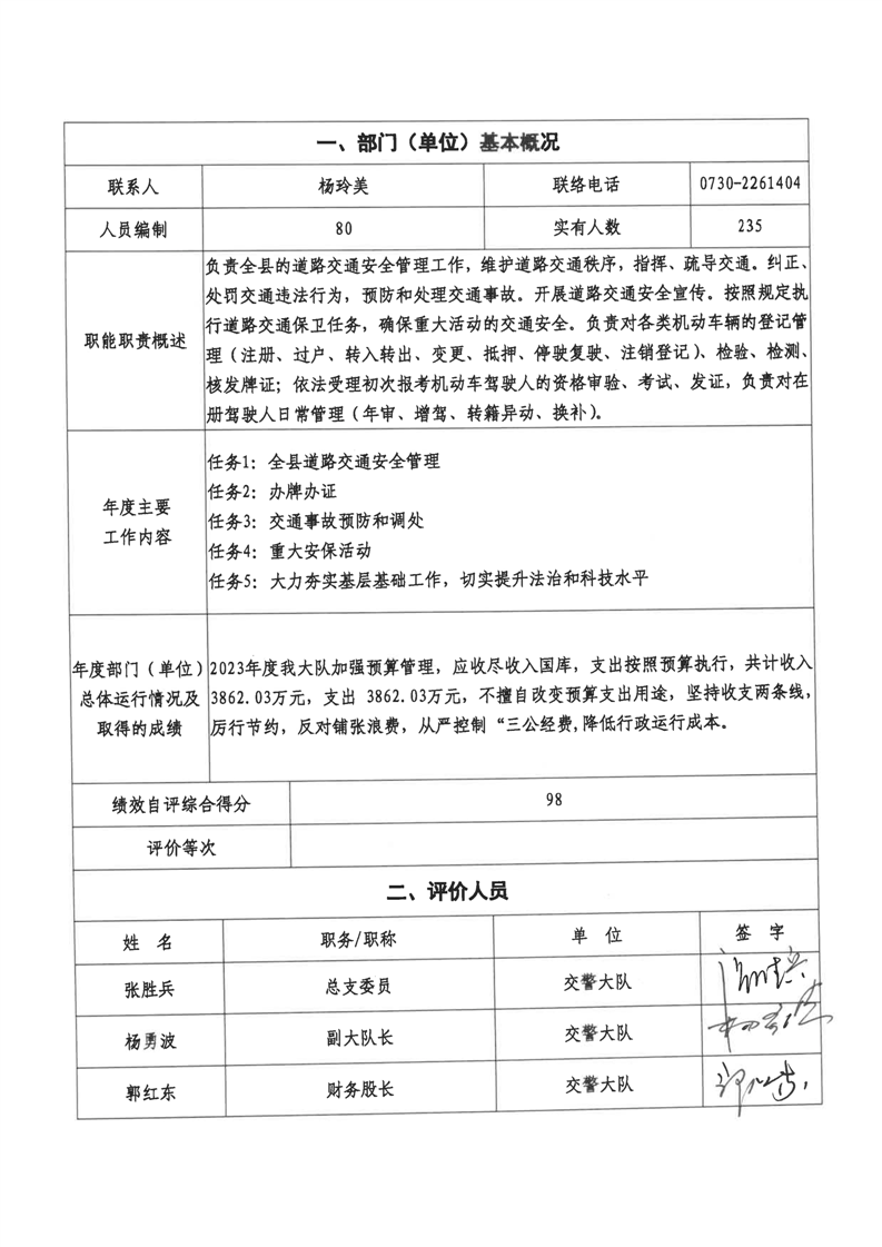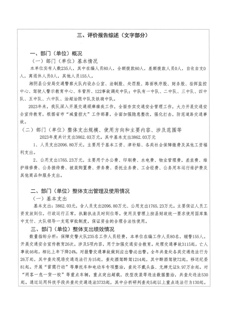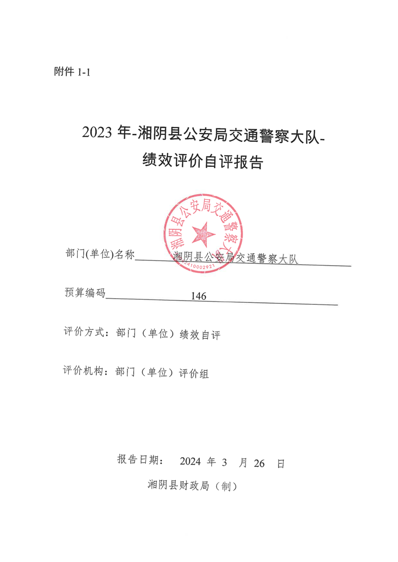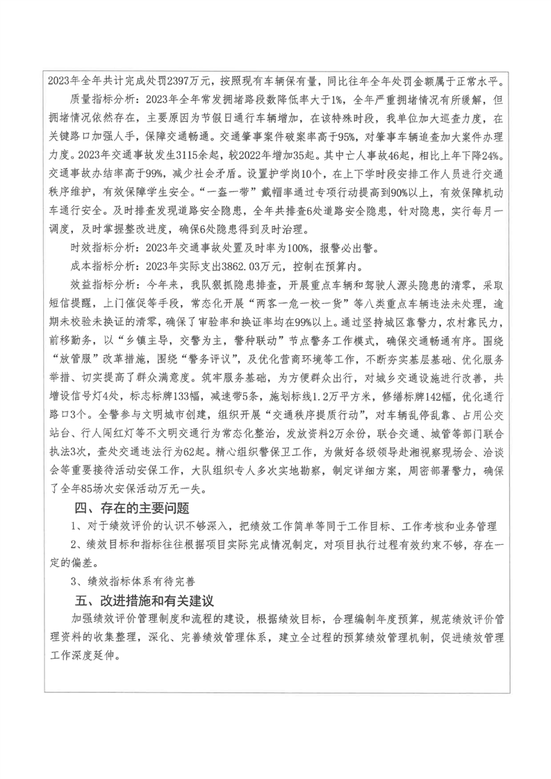 2023年-湘阴县公安局交通警察大队-财政预算资金绩效自评公开