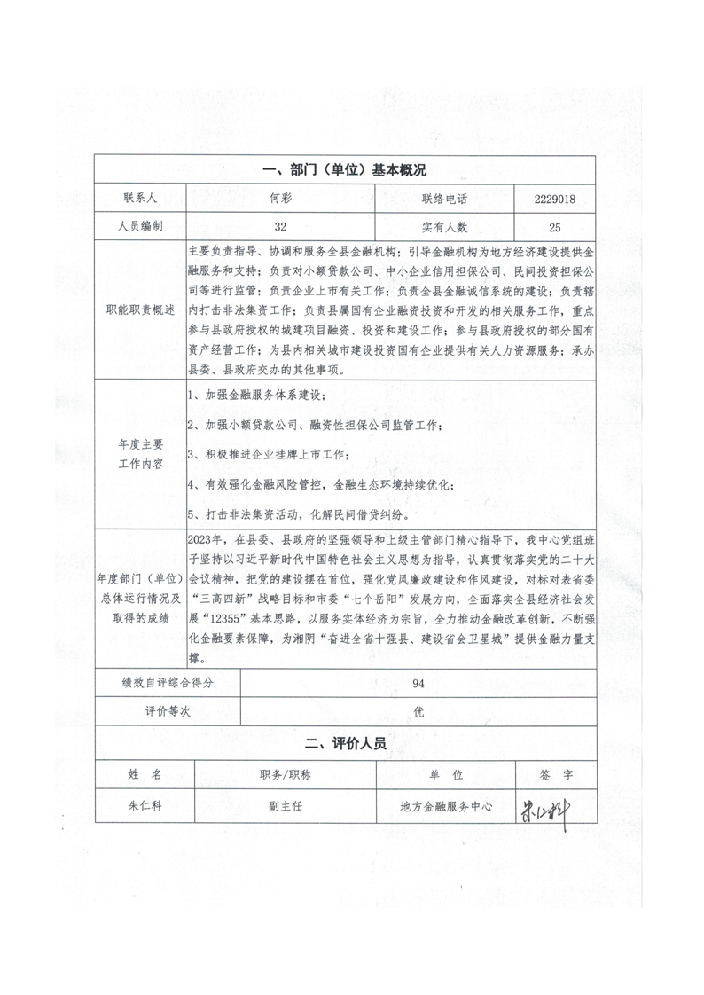 2023年-湘阴县地方金融服务中心-财政预算资金绩效自评公开