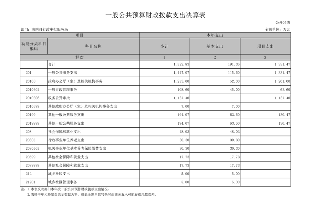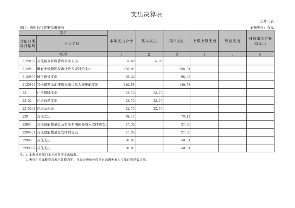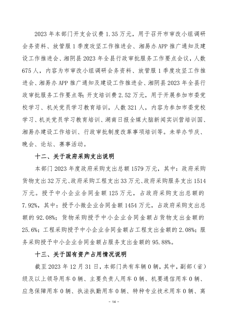 2023年-湘阴县行政审批服务局-决算公开