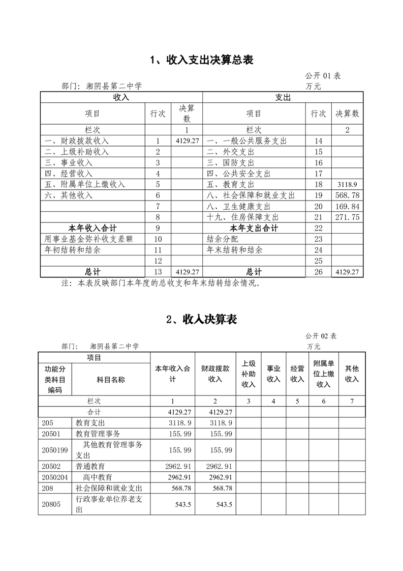 2022年-湘阴县第二中学-部门决算公开
