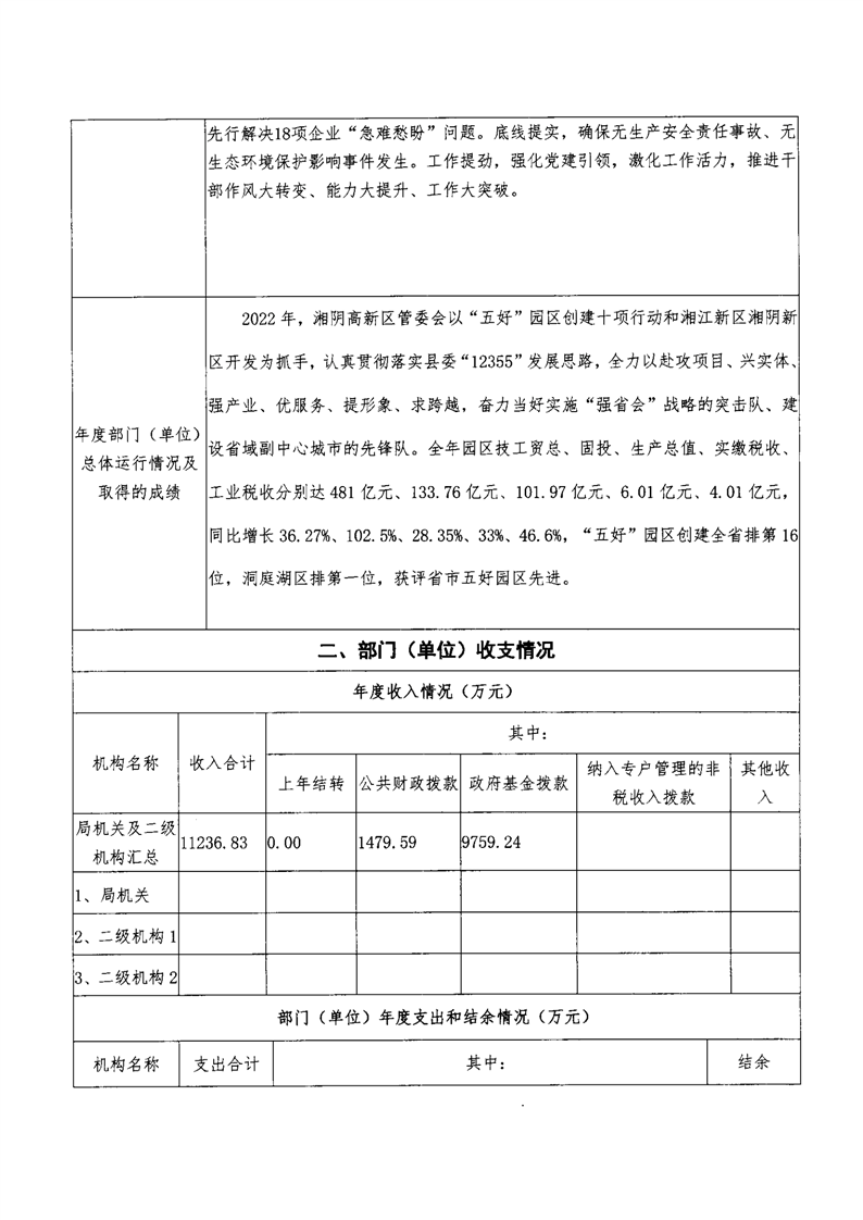 2022年度-湖南湘阴工业园区管理委员会-部门决算公开