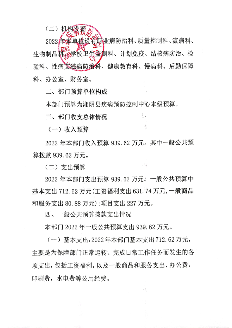 湘阴县疾病预防控制中心2022年部门预算情况说明