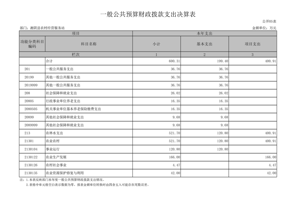 2023年-湘阴县农村经营服务站-部门决算