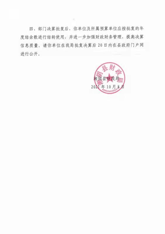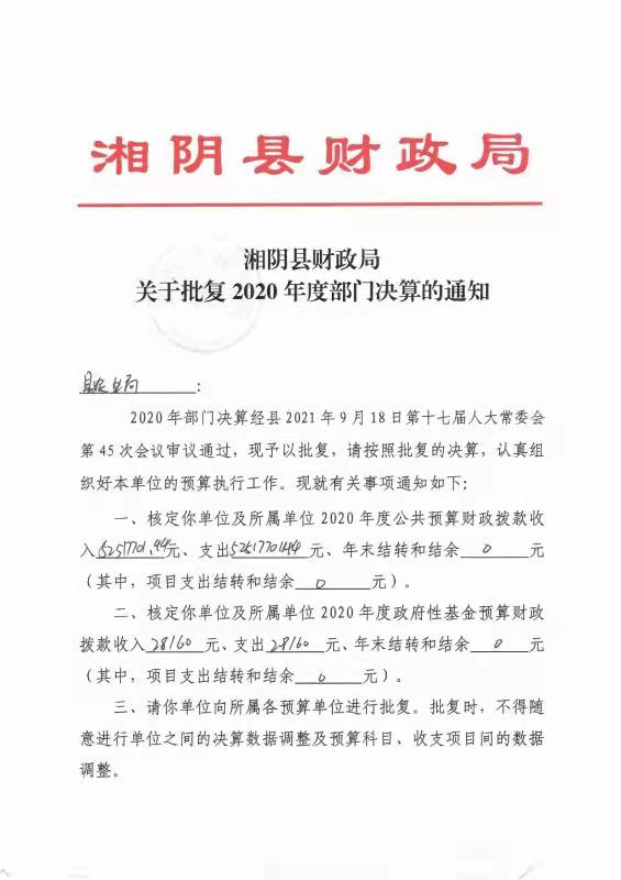 湘阴县农业农村局2020年度部门决算公开