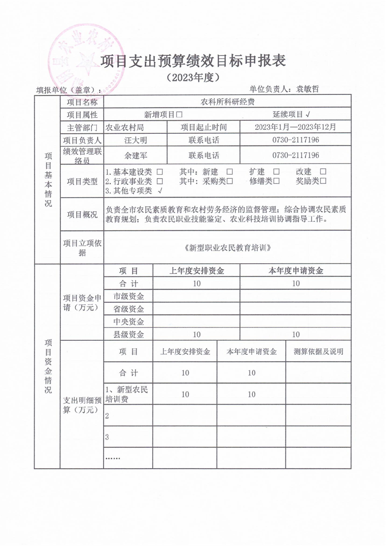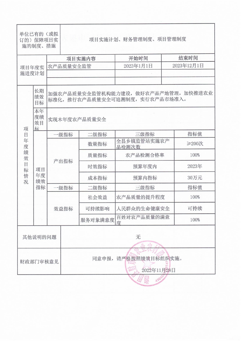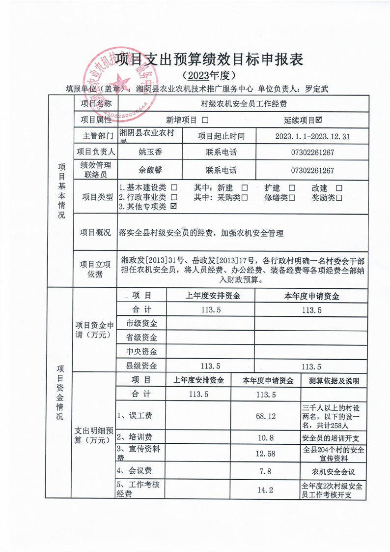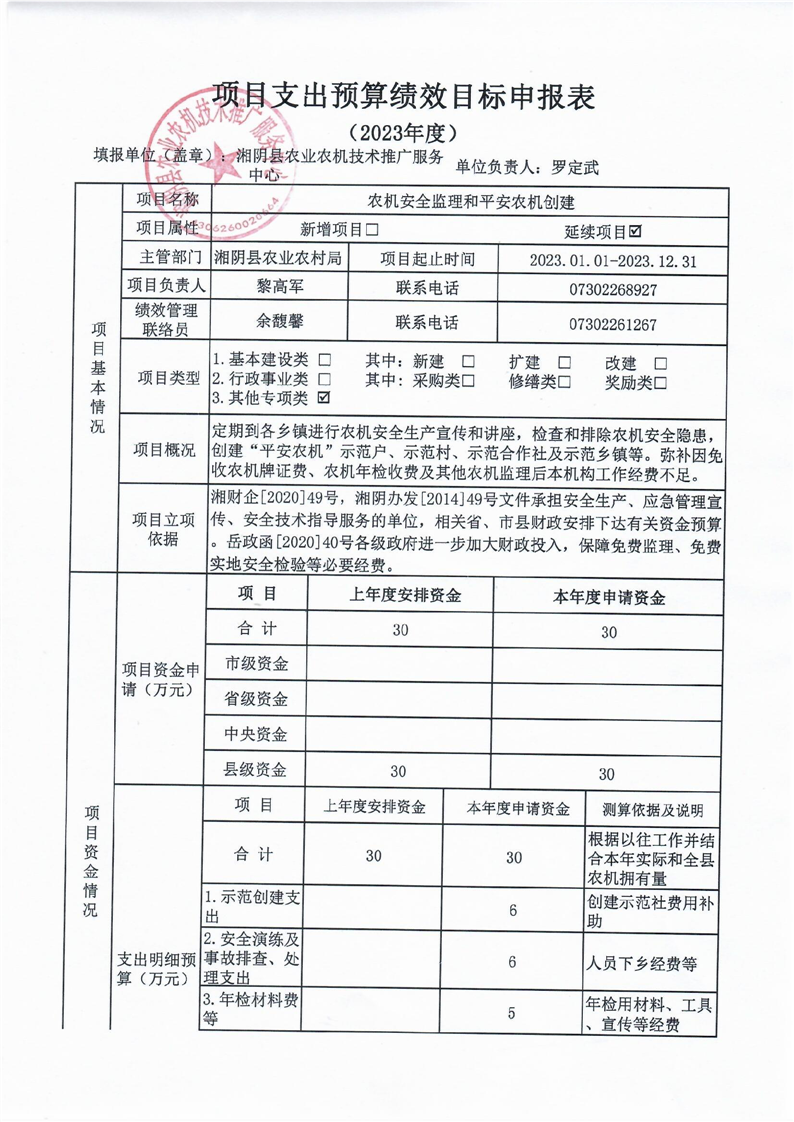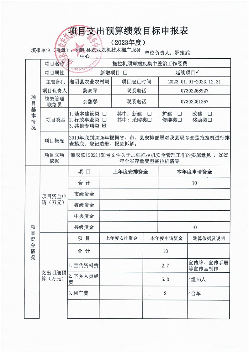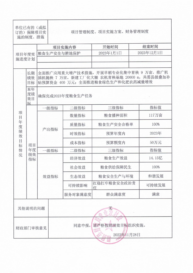 2023年度湘阴县农业农村局预算绩效目标信息公开